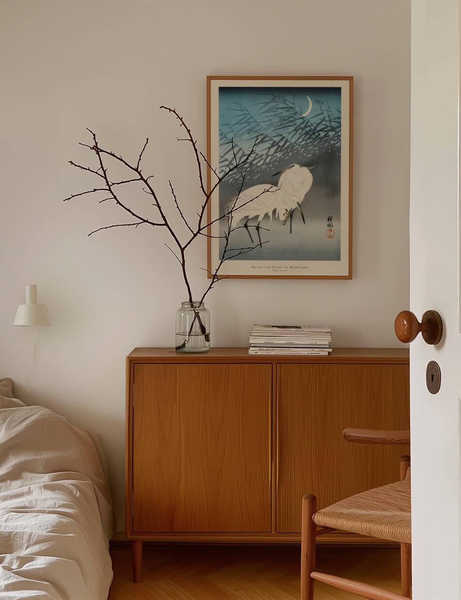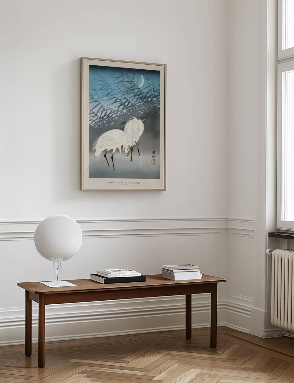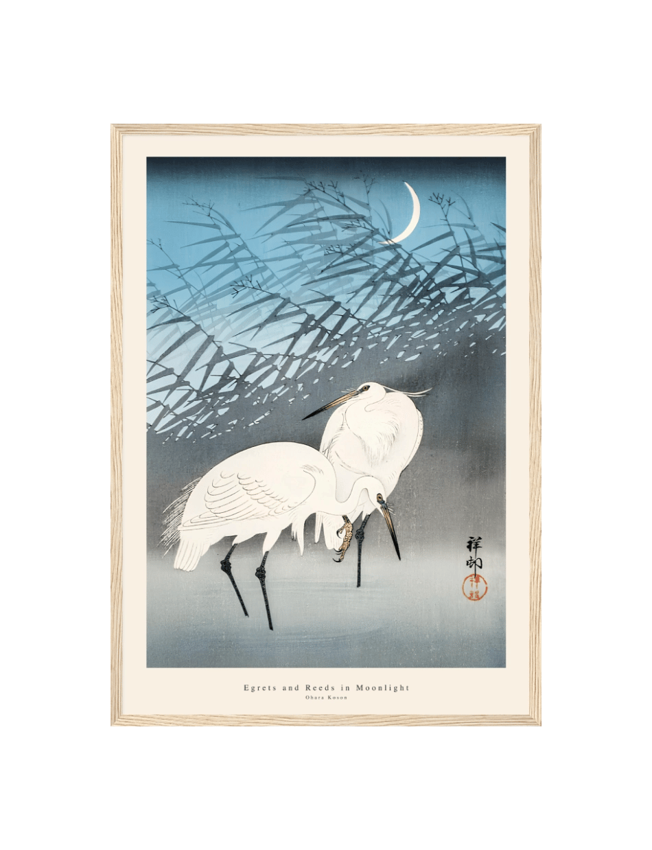 Egrets and Reeds in Moonlight – Ohara Koson