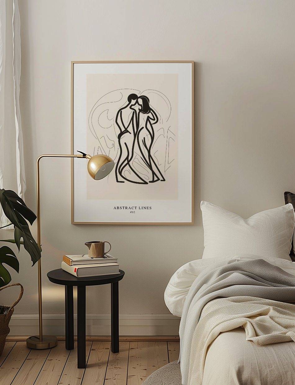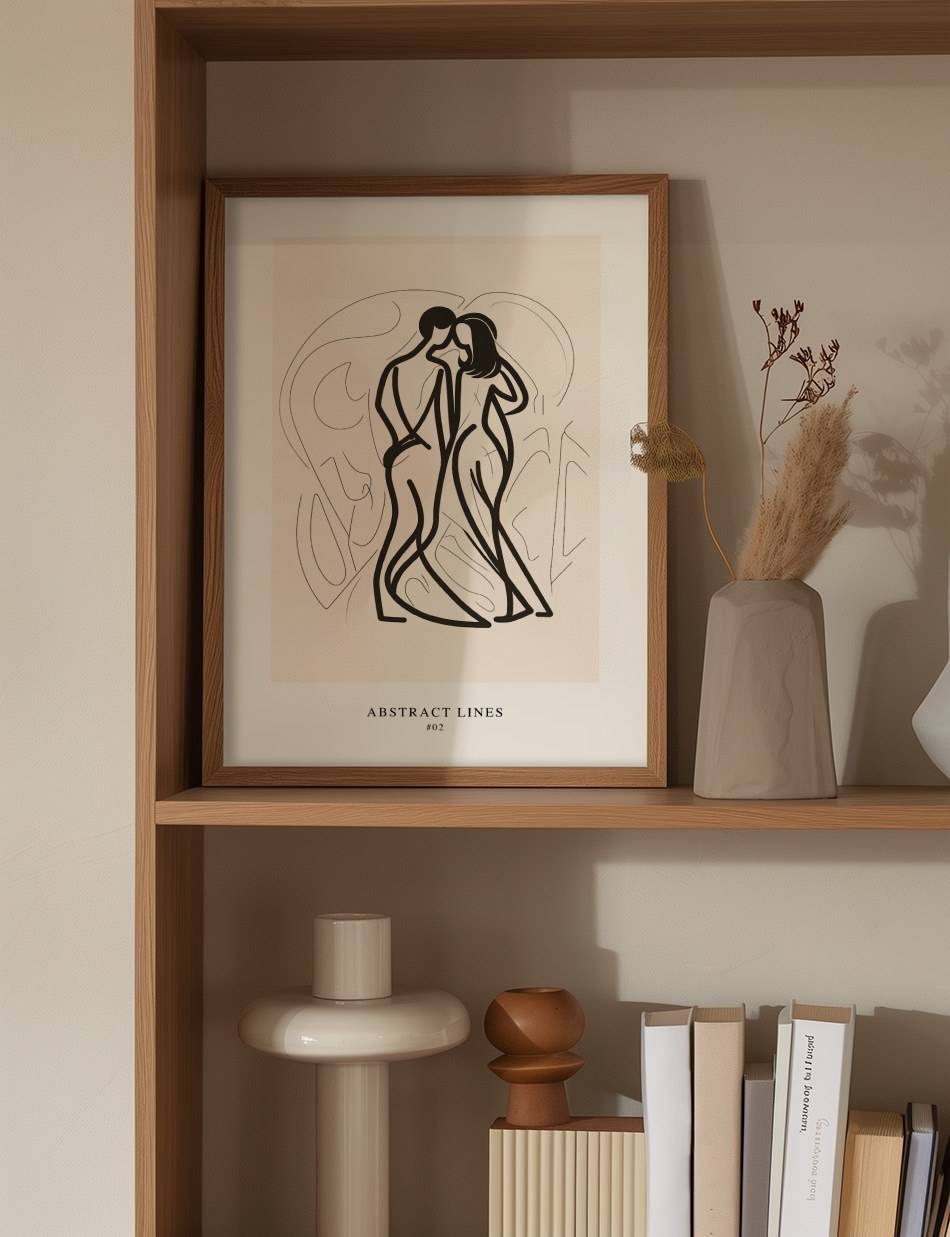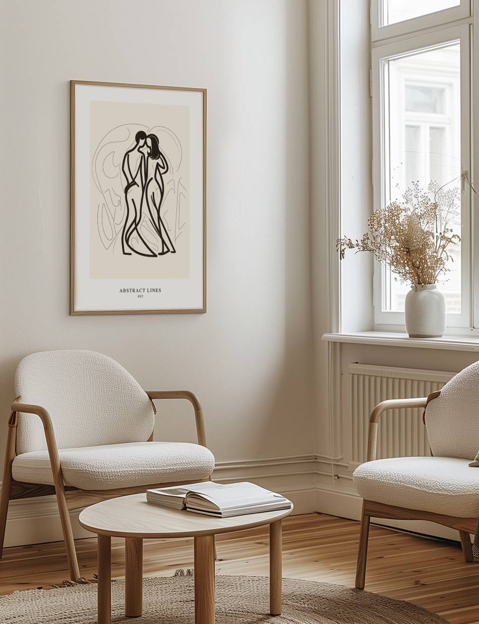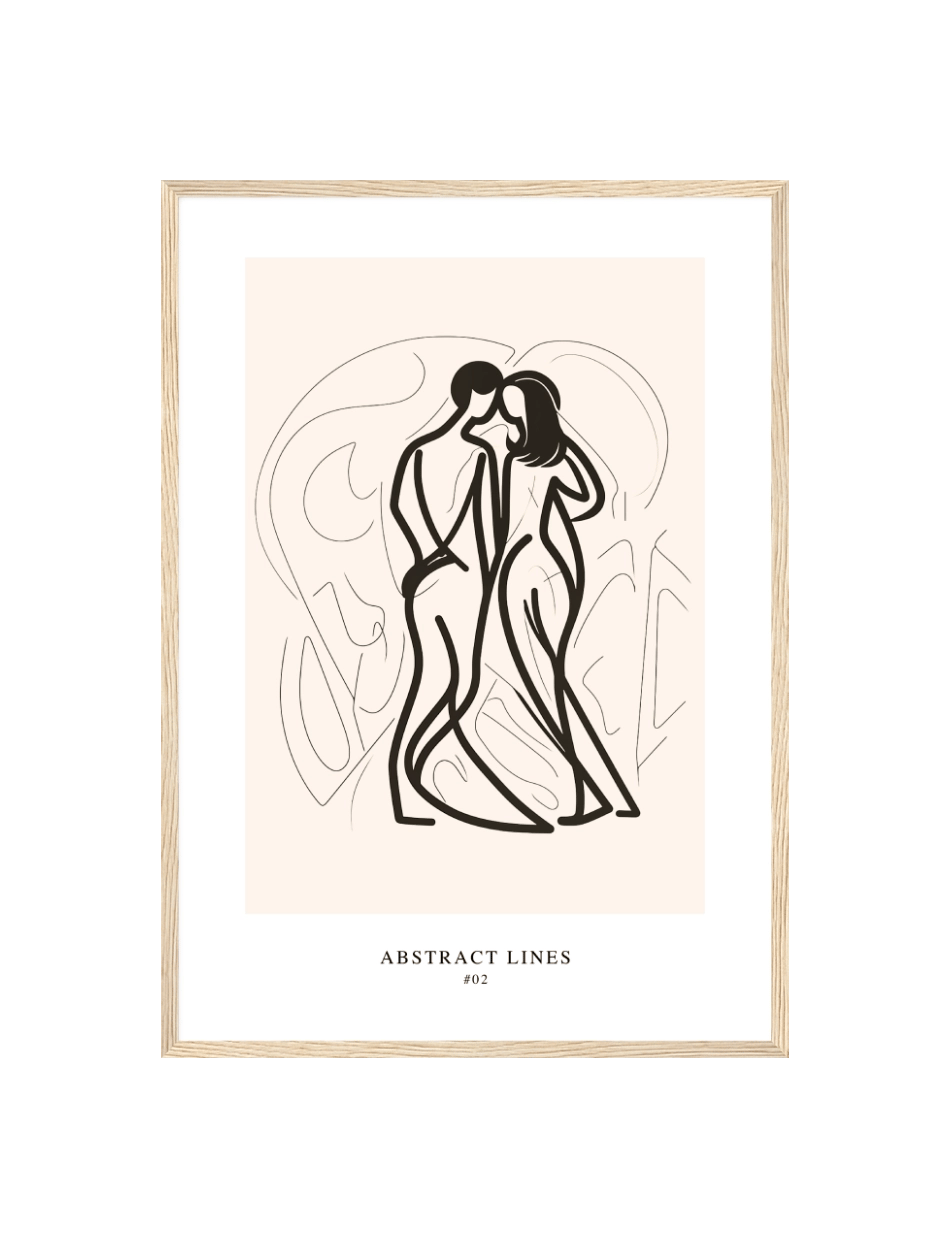 Abstract Lines 02 fortsætter udforskningen af stregernes skønhed med en blødere tilgang. Plakaten giver en følelse af flydende harmoni og balance, der er ideel for at skabe en afslappet og indbydende atmosfære. En perfekt blanding af minimalisme og elegance. Se også Abstract Lines 01.