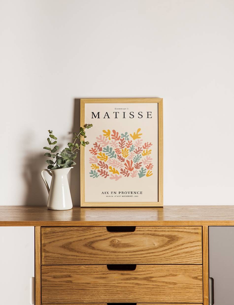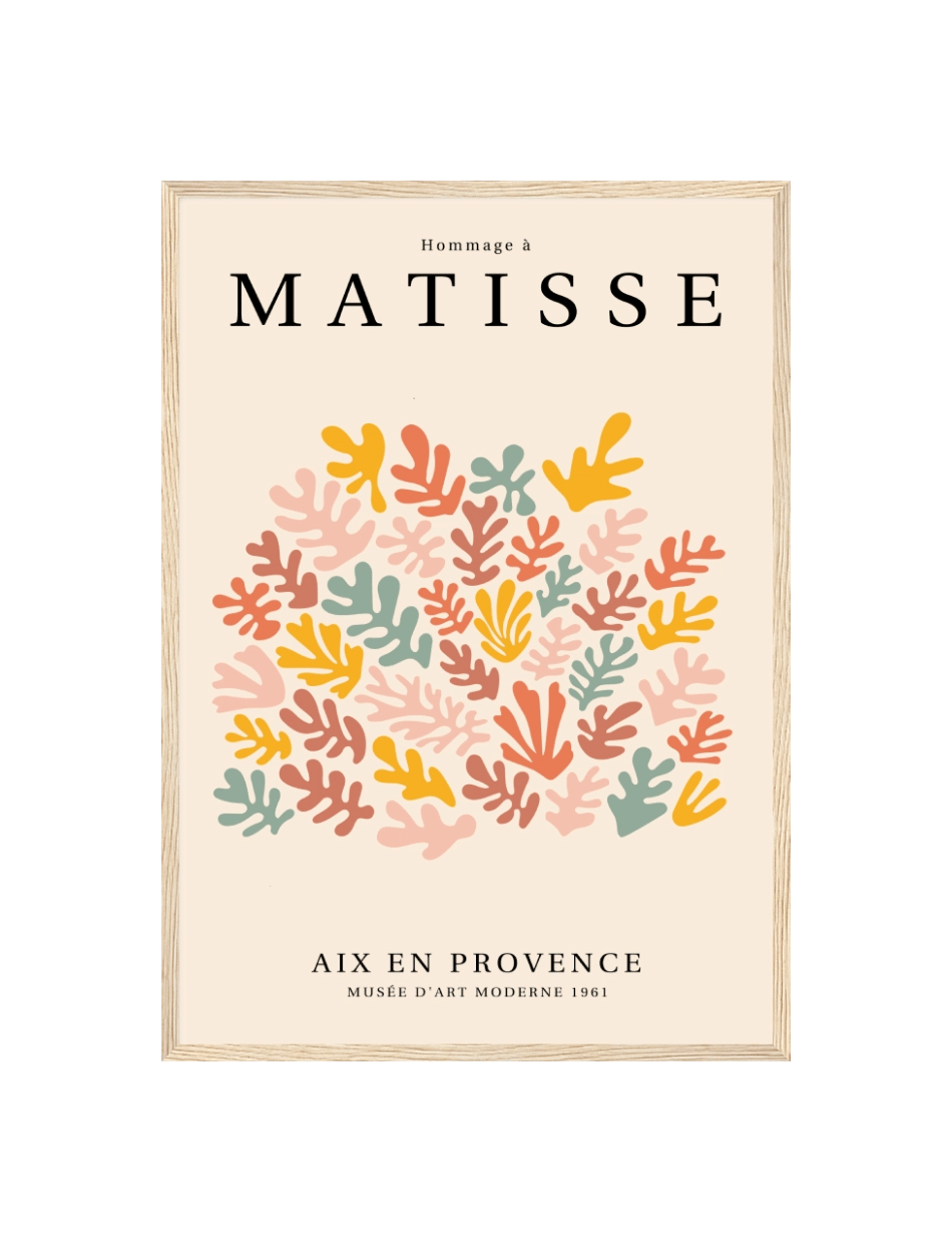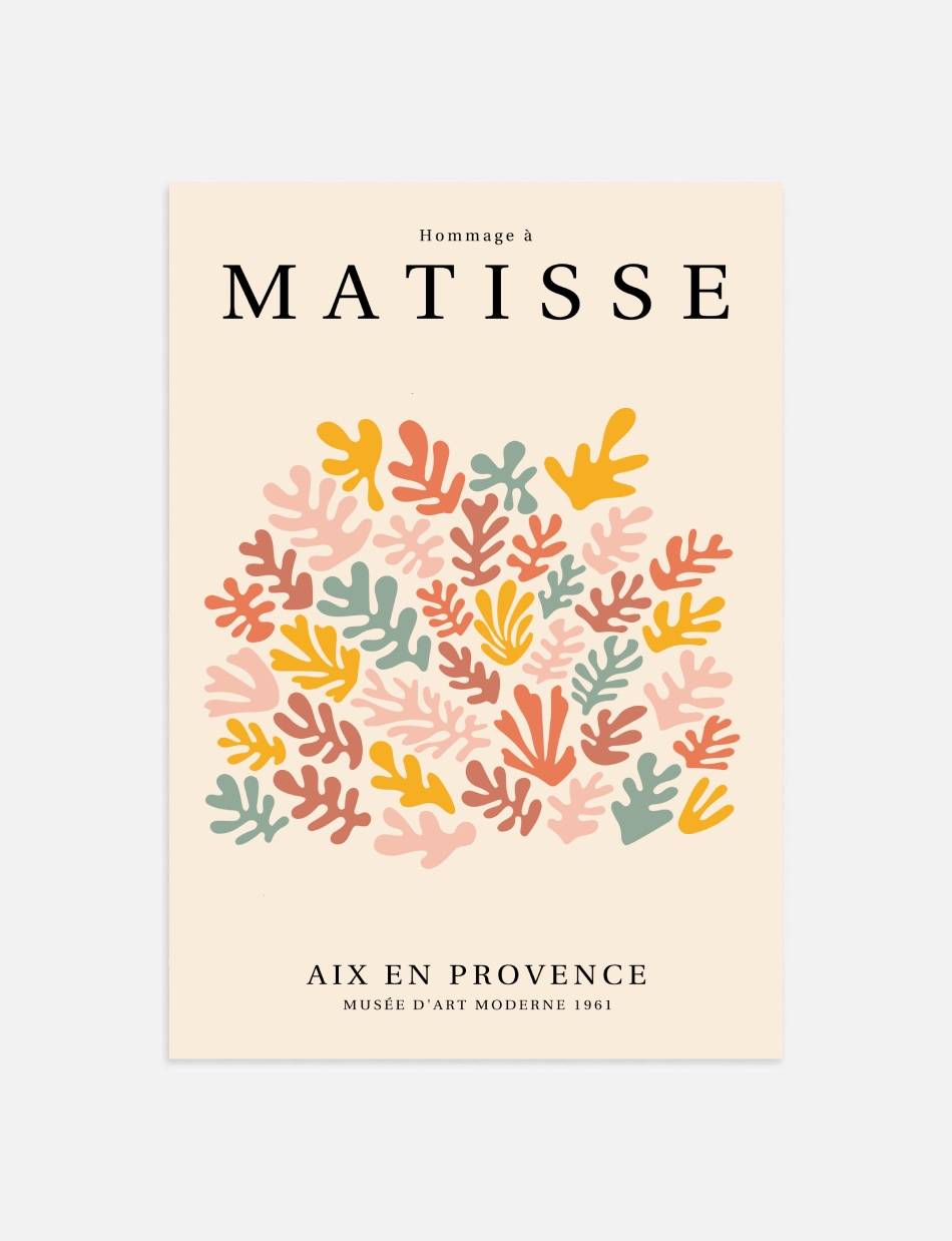 ‘Hommage à Matisse’ er en eksklusiv samling af plakater, skabt til at ære og fejre arven fra Henri Matisse, en af de mest banebrydende kunstnere i det 20. århundrede. Denne samling, som er udarbejdet af Prints Charmings eget design team, formidler Matisse’s enestående brug af farve og form, der revolutionerede den moderne kunst. Hver plakat i samlingen er inspireret af Matisse’s mest ikoniske værker.