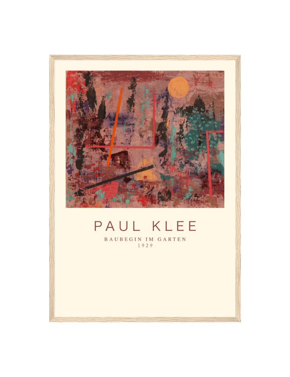 Skabt i 1929, er dette værk et eksempel på Klees evne til at kombinere abstraktion og naturalisme på en måde, der vækker både nysgerrighed og refleksion. Baubegin im Garten fanger øjeblikket, hvor menneskets kreativitet møder naturens uforudsigelighed, og fremstår som en hyldest til skabelsesprocessens skønhed og kompleksitet.