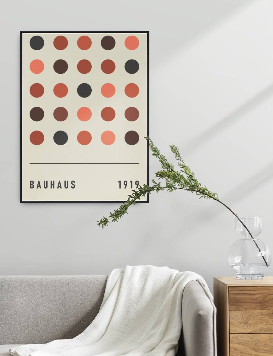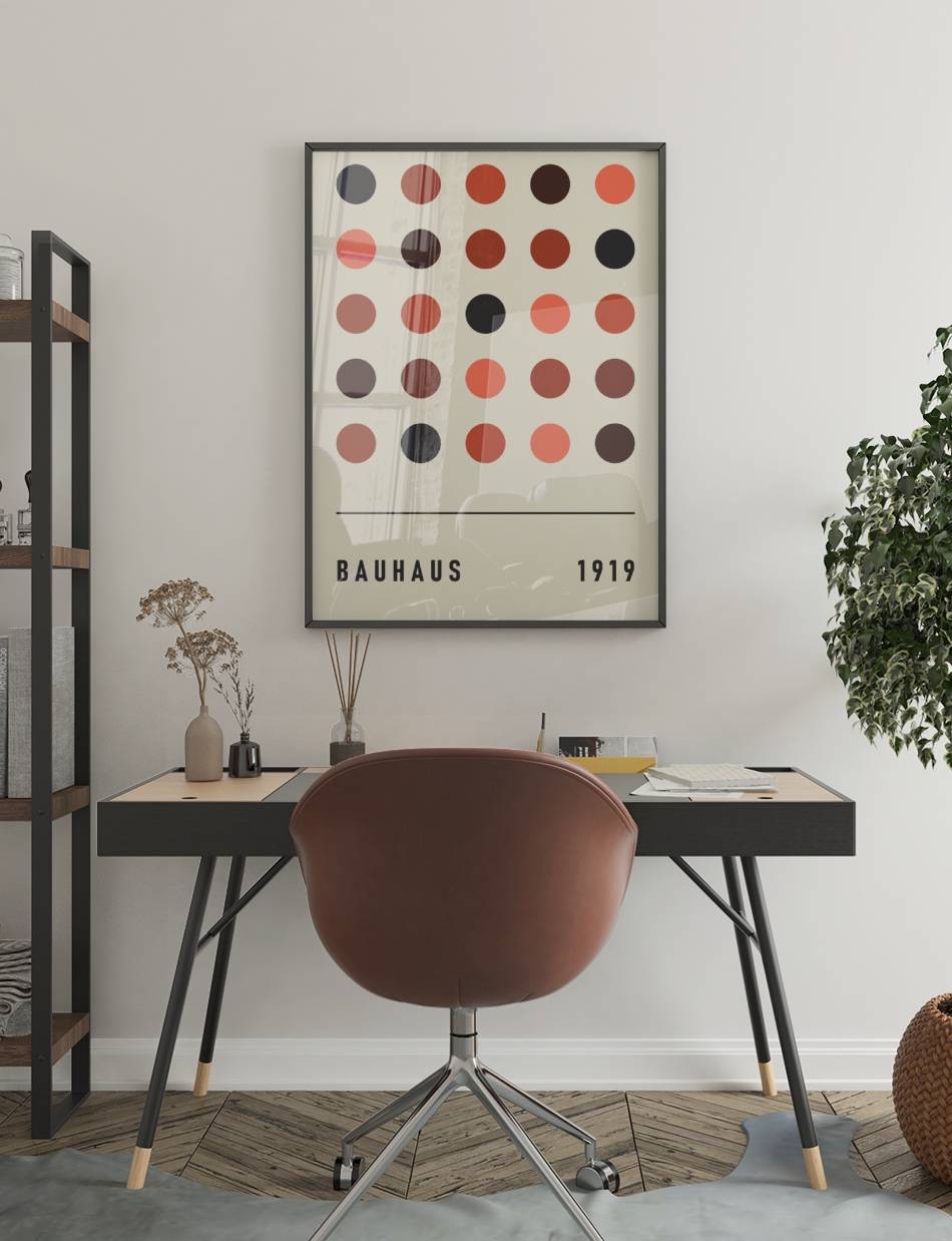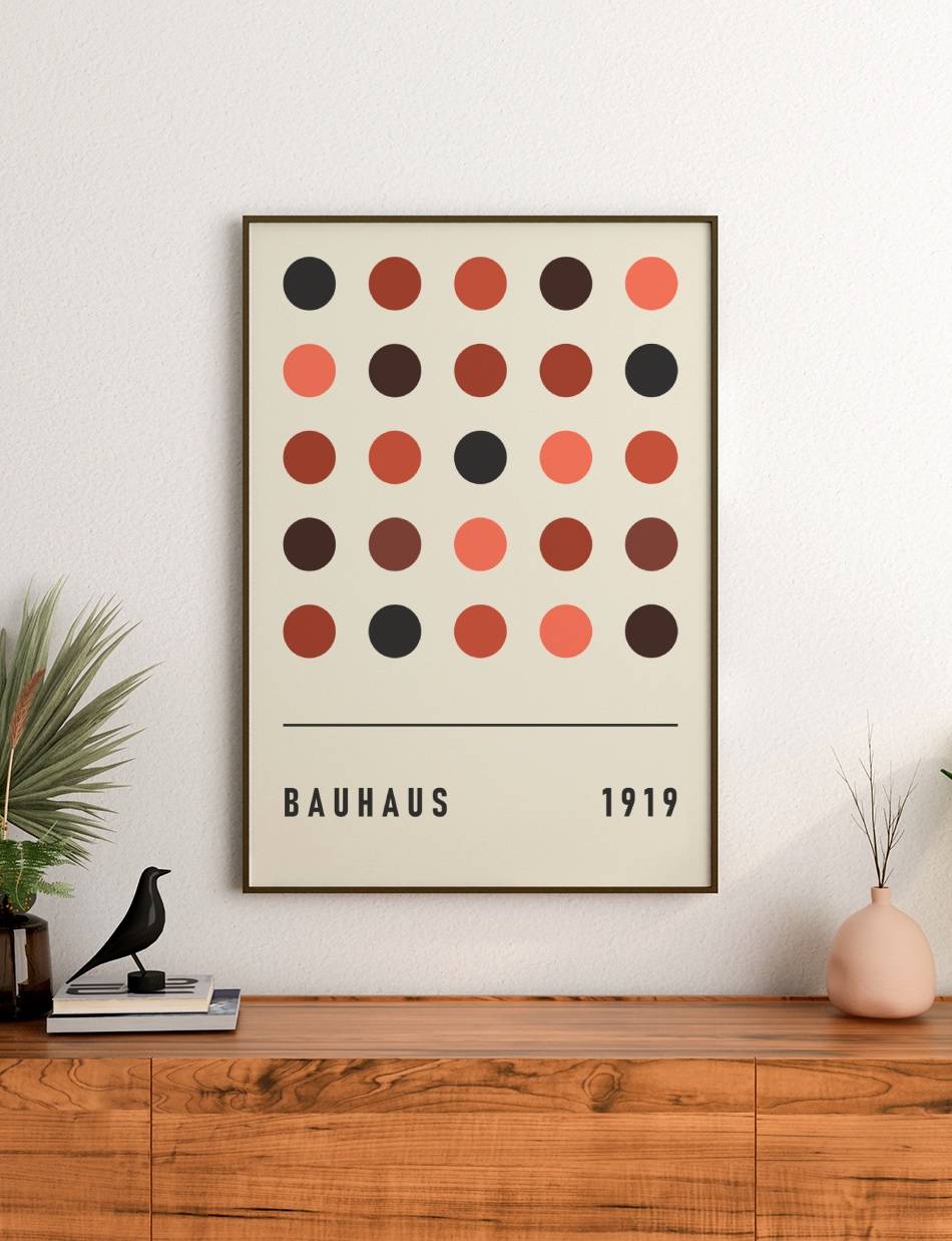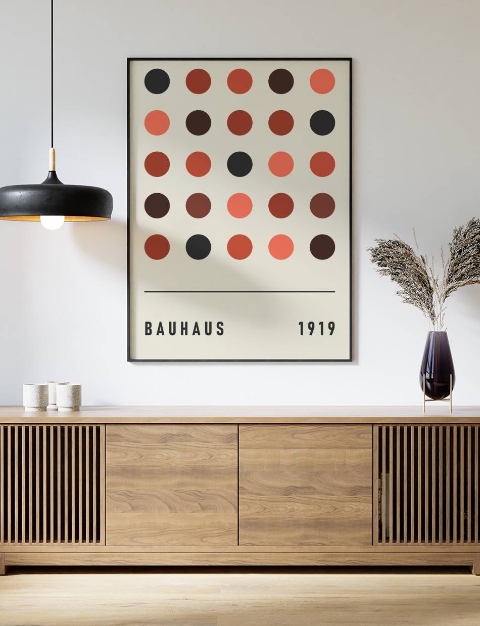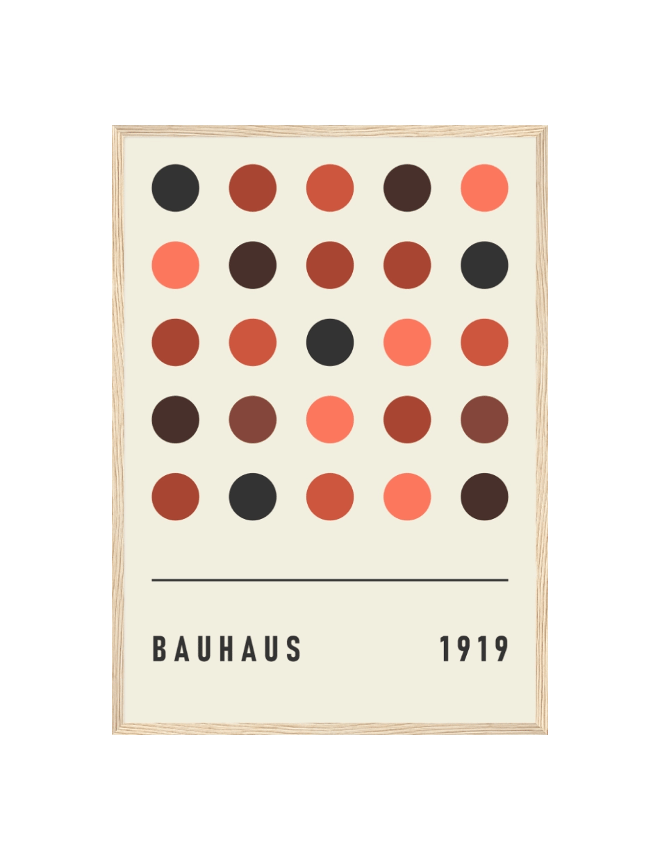 Denne plakat, inspireret af Bauhaus-bevægelsens ikoniske designs, kombineres enkelthed med dybde gennem brugen af prikker og geometri. Det er en hyldest til innovation og kreativitet, perfekt for dem, der værdsætter tidløst design og ønsker at bringe en følelse af historisk elegance ind i deres rum.