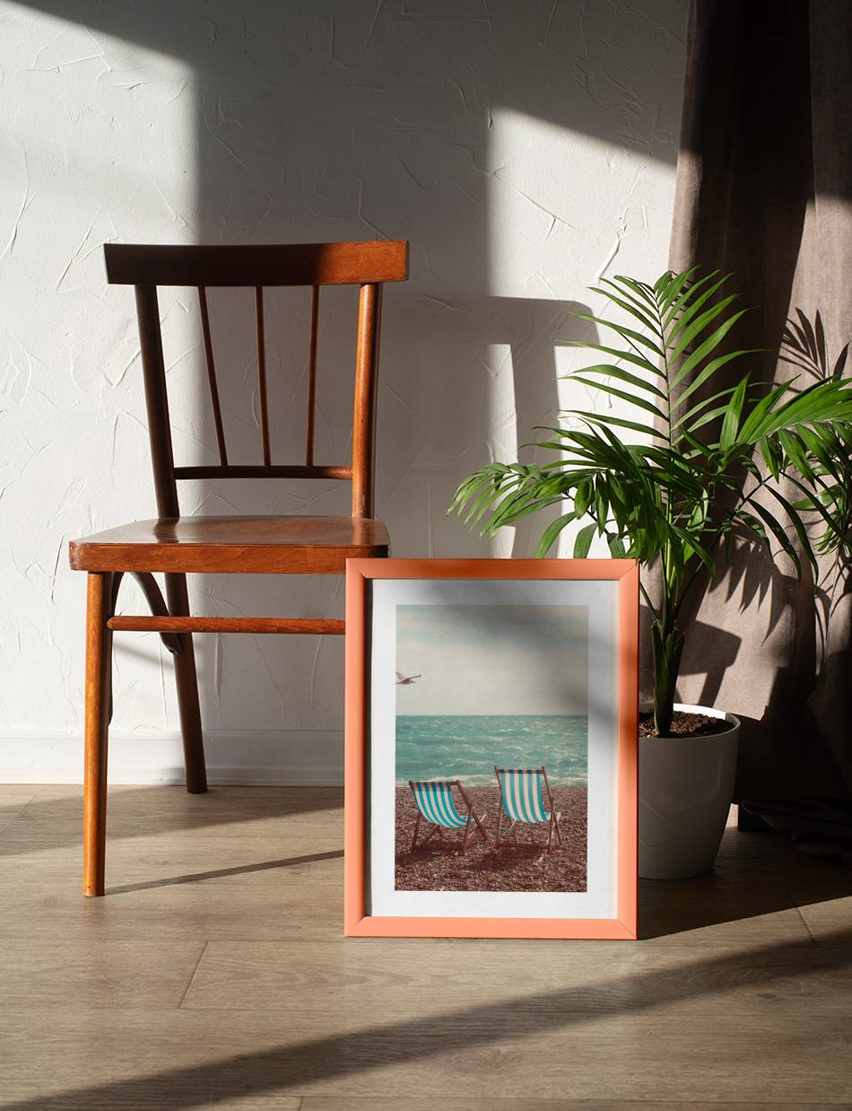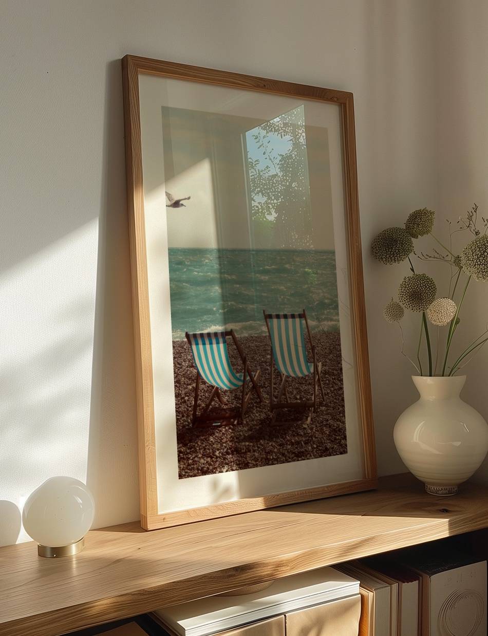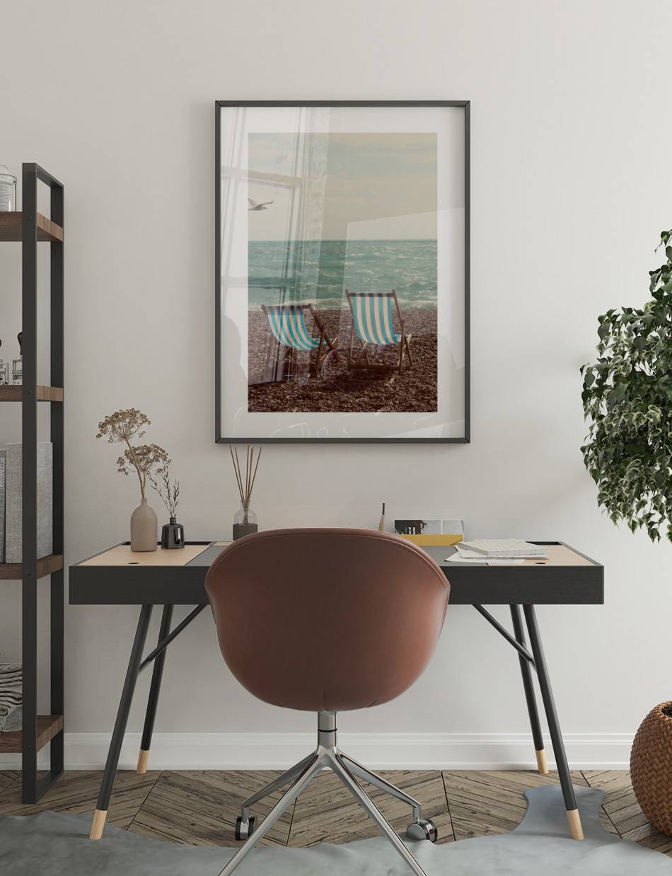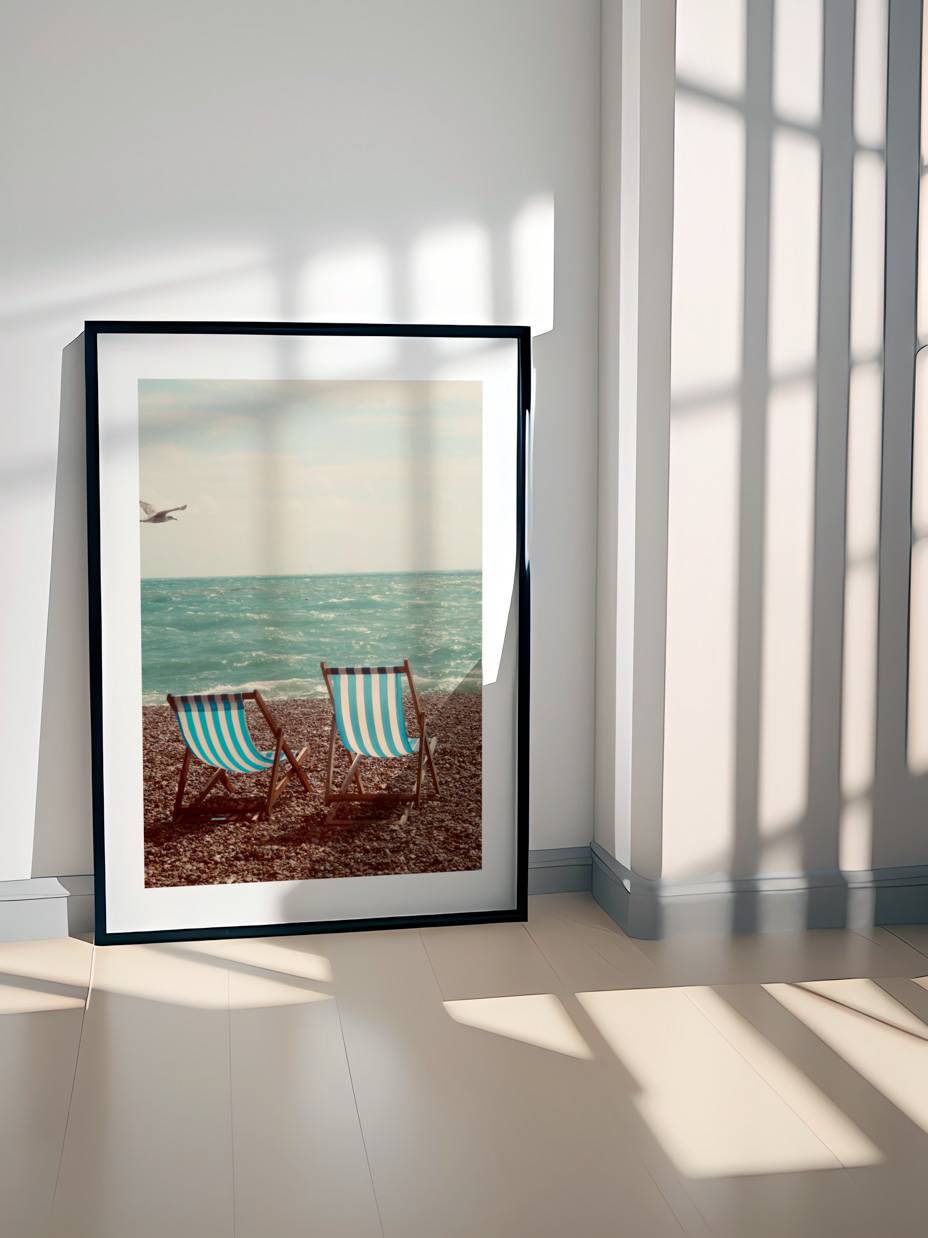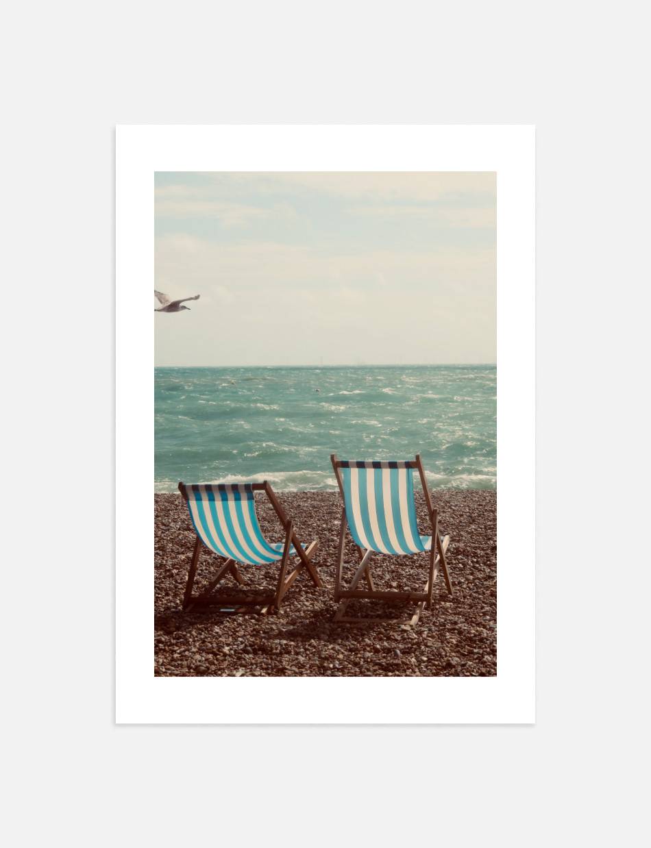Beach Chairs tilbyder et øjebliks ro og afslapning ved havet. Lad denne plakat føre dig til en verden af sol, sand og stilhed, perfekt til at skabe en fredelig atmosfære.