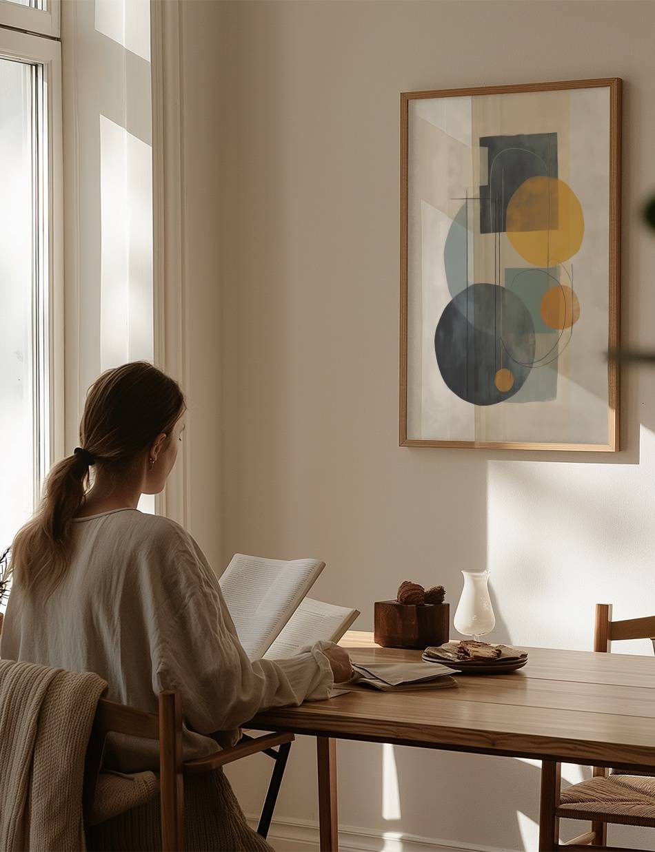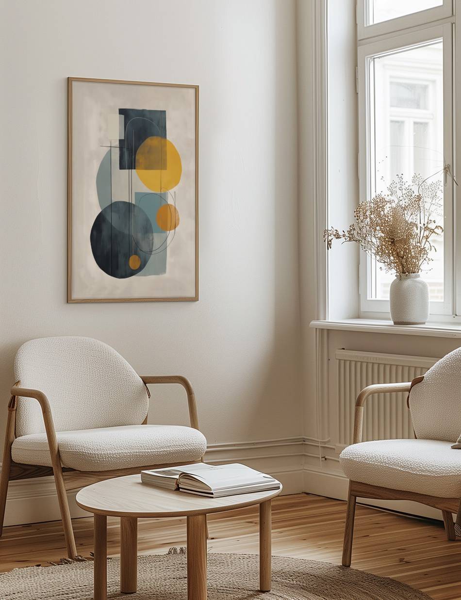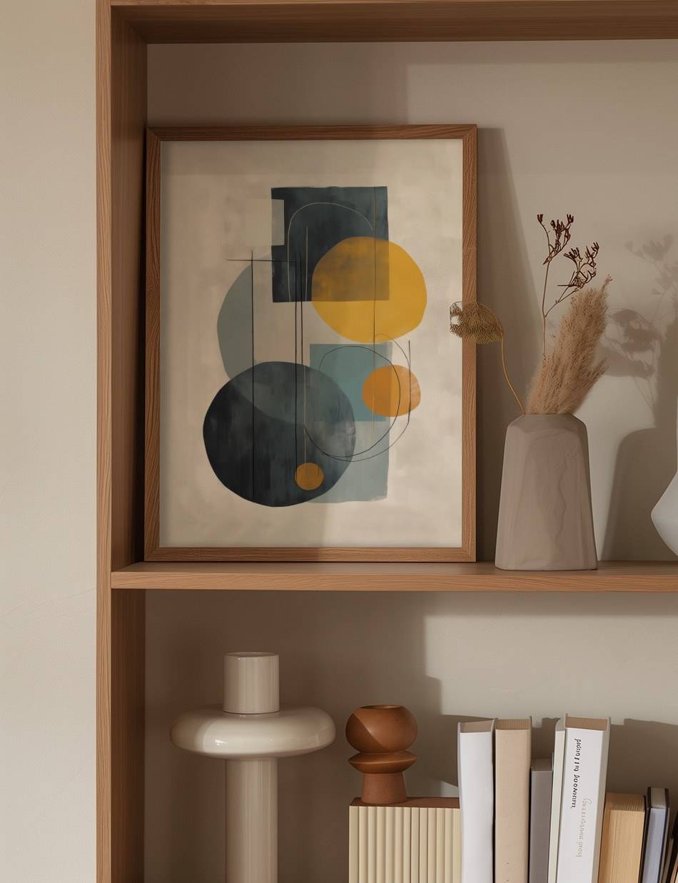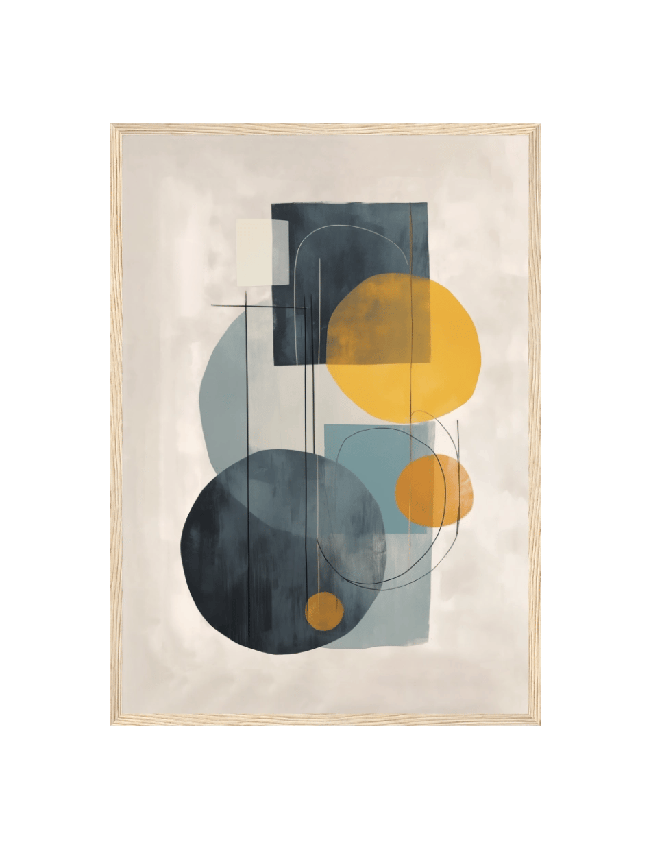 Calm Shapes er en hyldest til den skønhed og ro, der findes i velbalancerede kompositioner. Dette kunstværk indbyder, med sine bløde farver og enkle former, til afslapning og refleksion. Perfekt for enhver, der søger et pusterum fra hverdagens travlhed.
