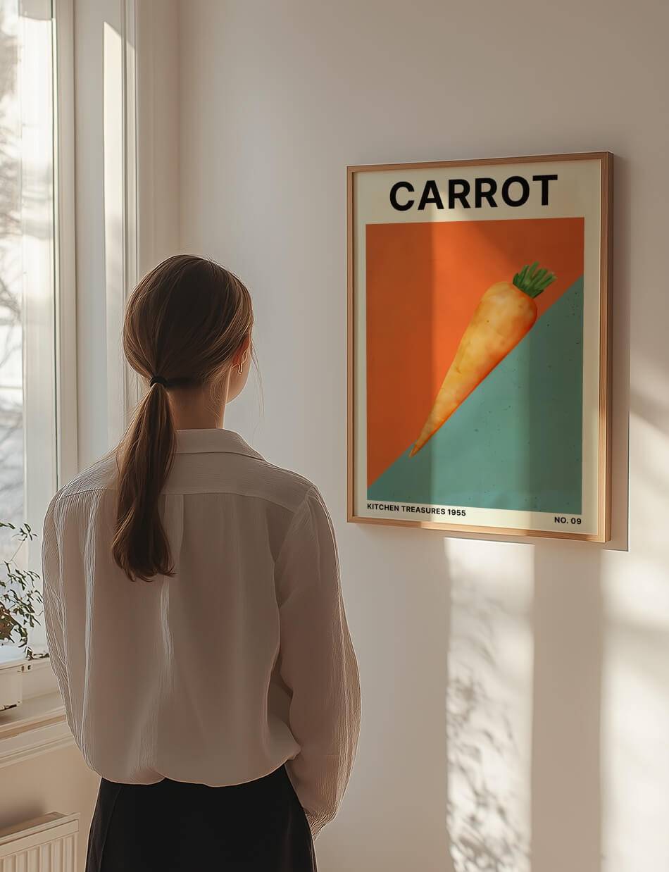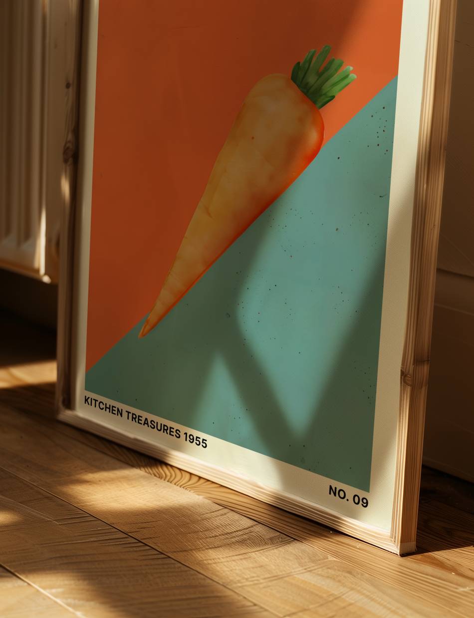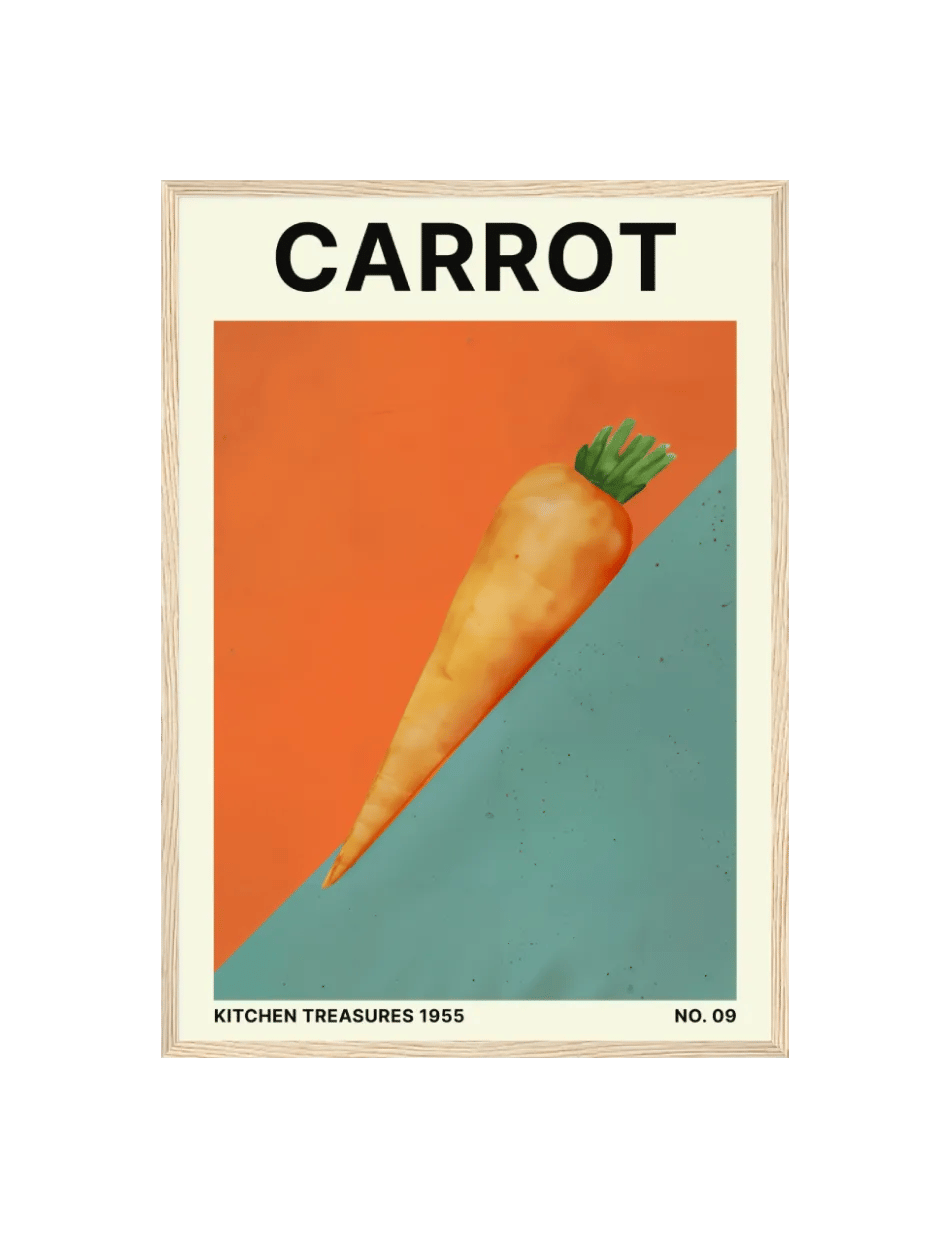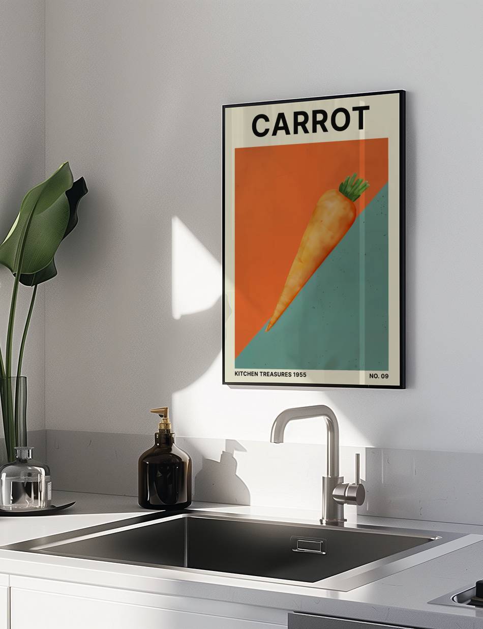 Vores Carrot plakat er ideel til dem, der søger en minimalistisk, men levende illustration til deres køkken.