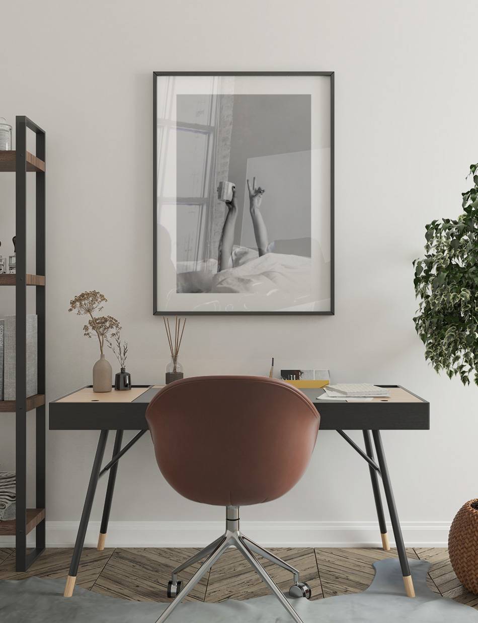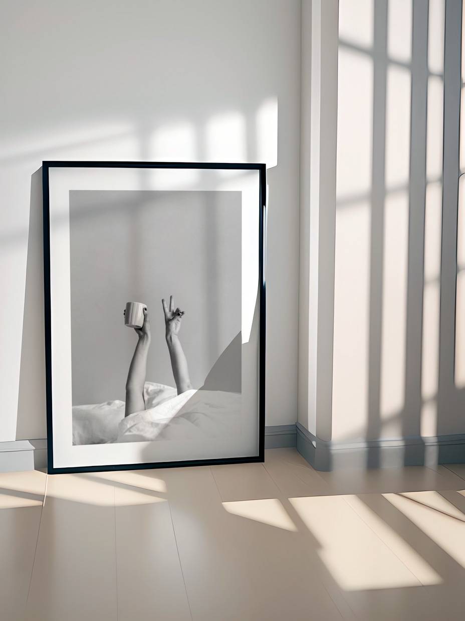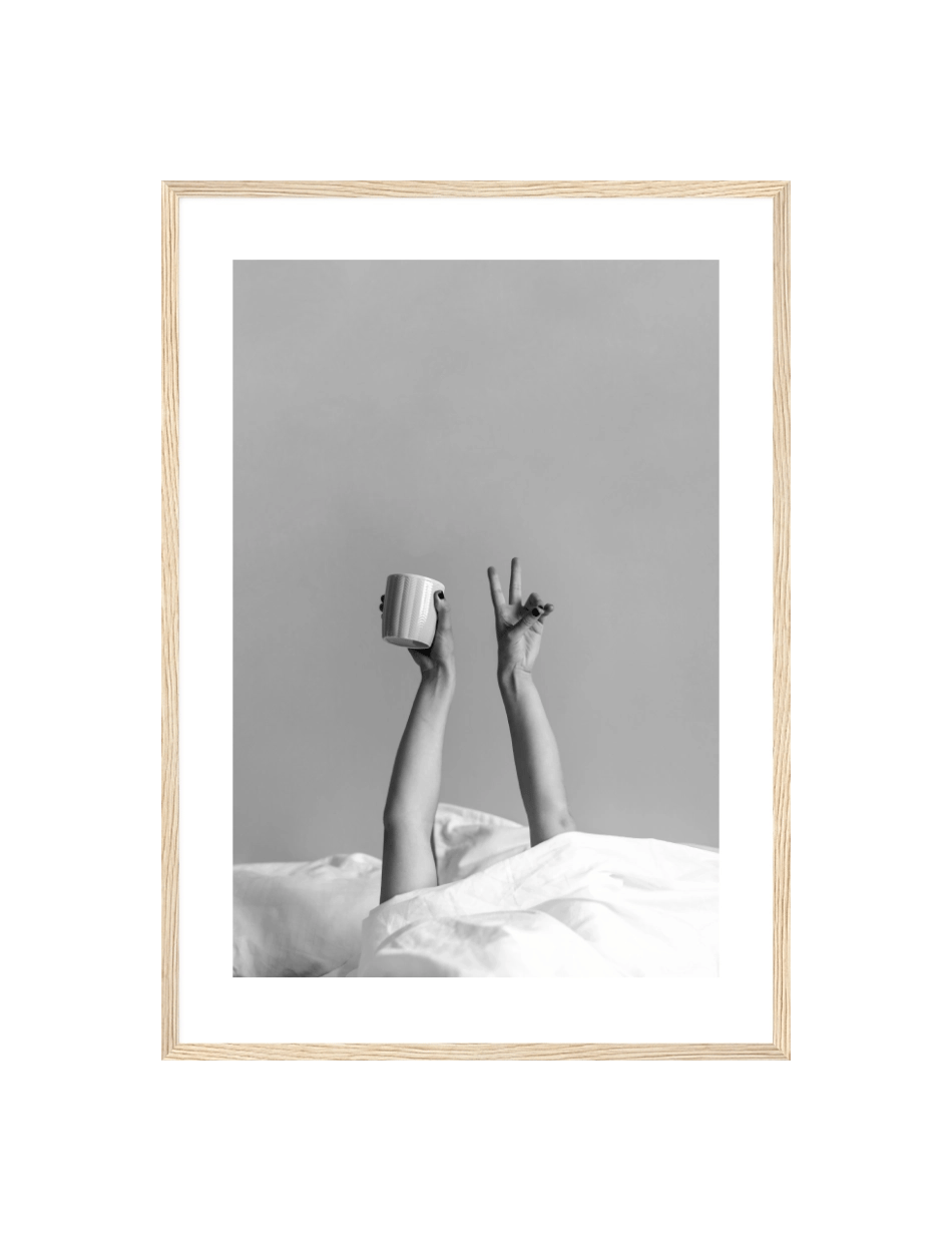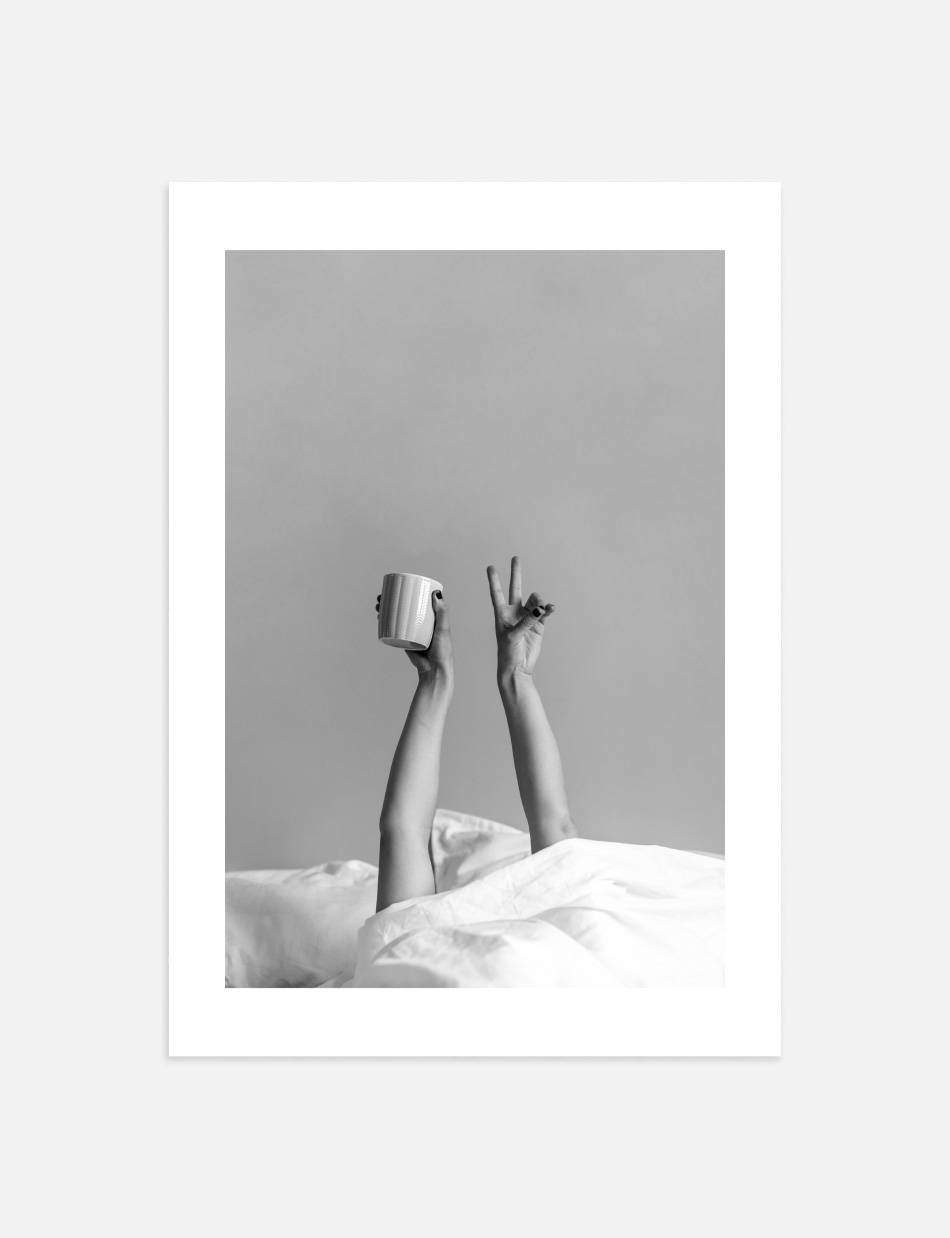 Vores Coffee in Bed plakat fanger en perfekt morgenstund med en kop kaffe i sengen. Denne plakat er en hyldest til de små glæder i livet, ideel til at skabe en hyggelig og indbydende atmosfære.
