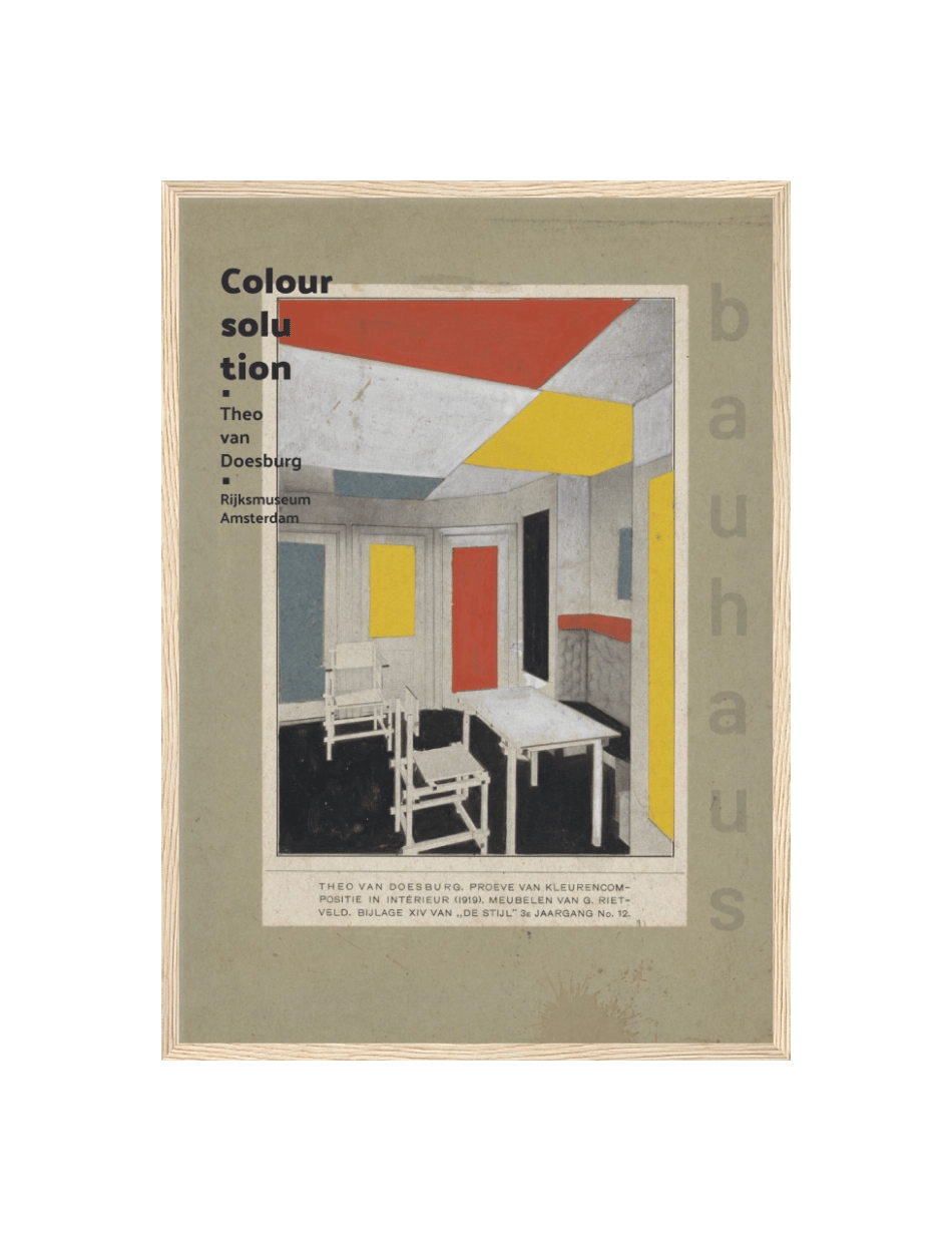 Color Solution er et perfekt eksempel Theo van Doesburgs på visionære farvesammensætning og indflydelse på moderne interiørdesign. Motivet er opbygget af rene linjer og modige farveblokke, som skaber en tidløs æstetik, der har inspireret designere gennem årtier. Perfekt for entusiaster af moderne kunst og design.
