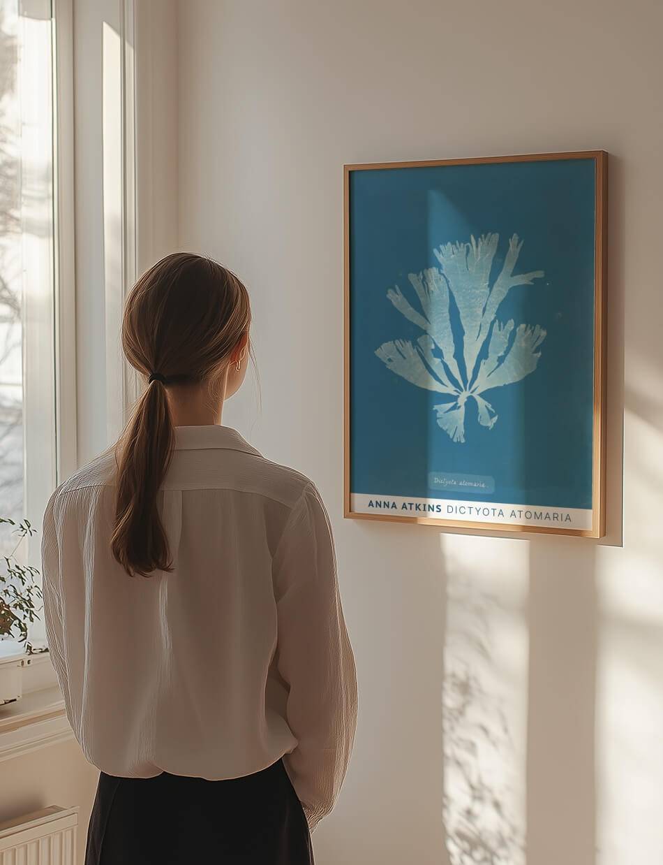Hos Prints Charming præsenterer vi en kollektion af Anna Atkins-inspirerede prints, der fremhæver hendes banebrydende arbejde og poetiske skønhed. Disse værker er ideelle for dem, der ønsker at tilføje en unik kombination af natur, kunst og historie til deres hjem.