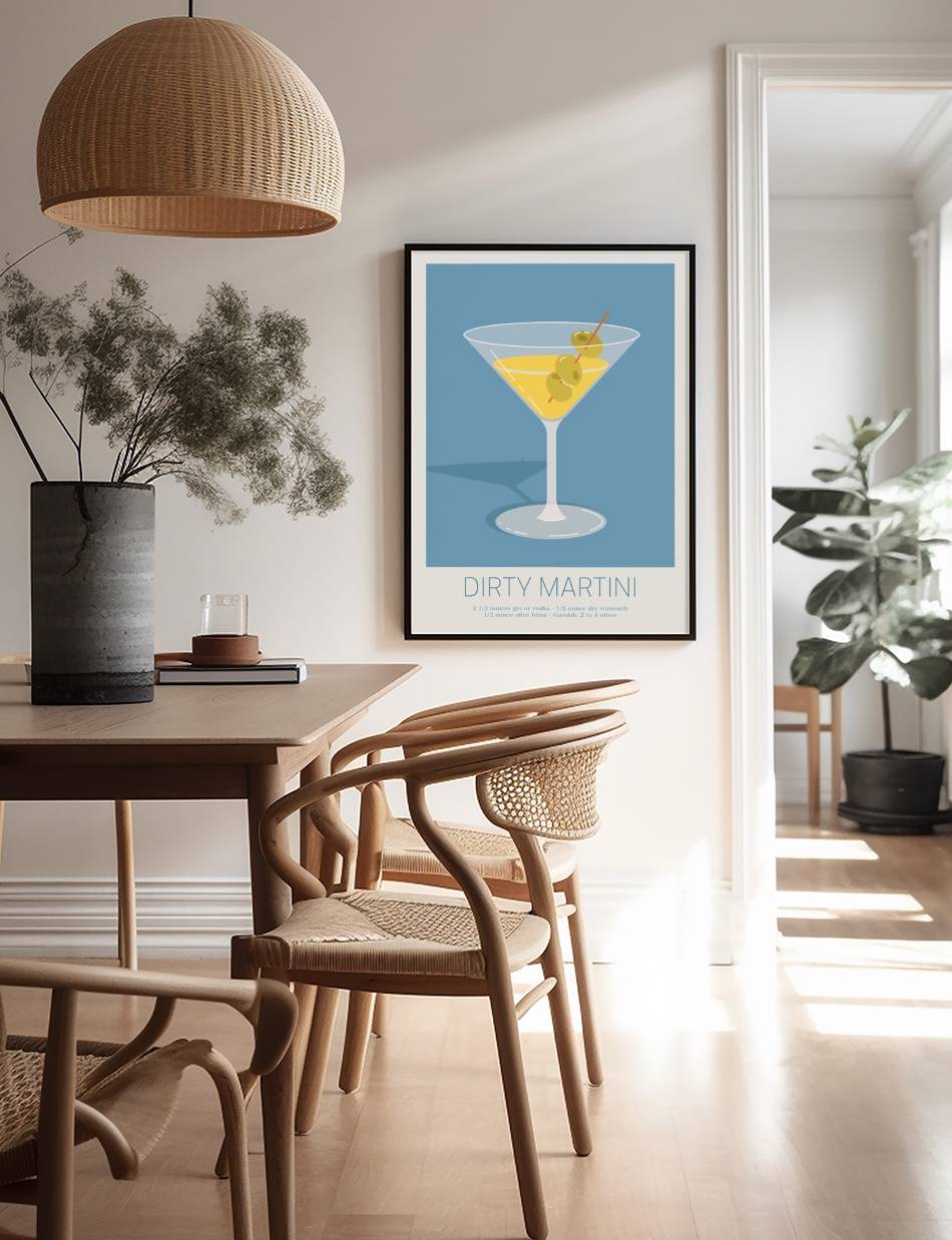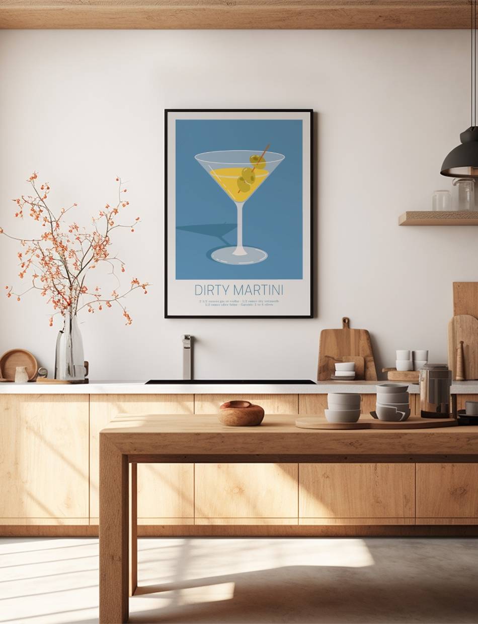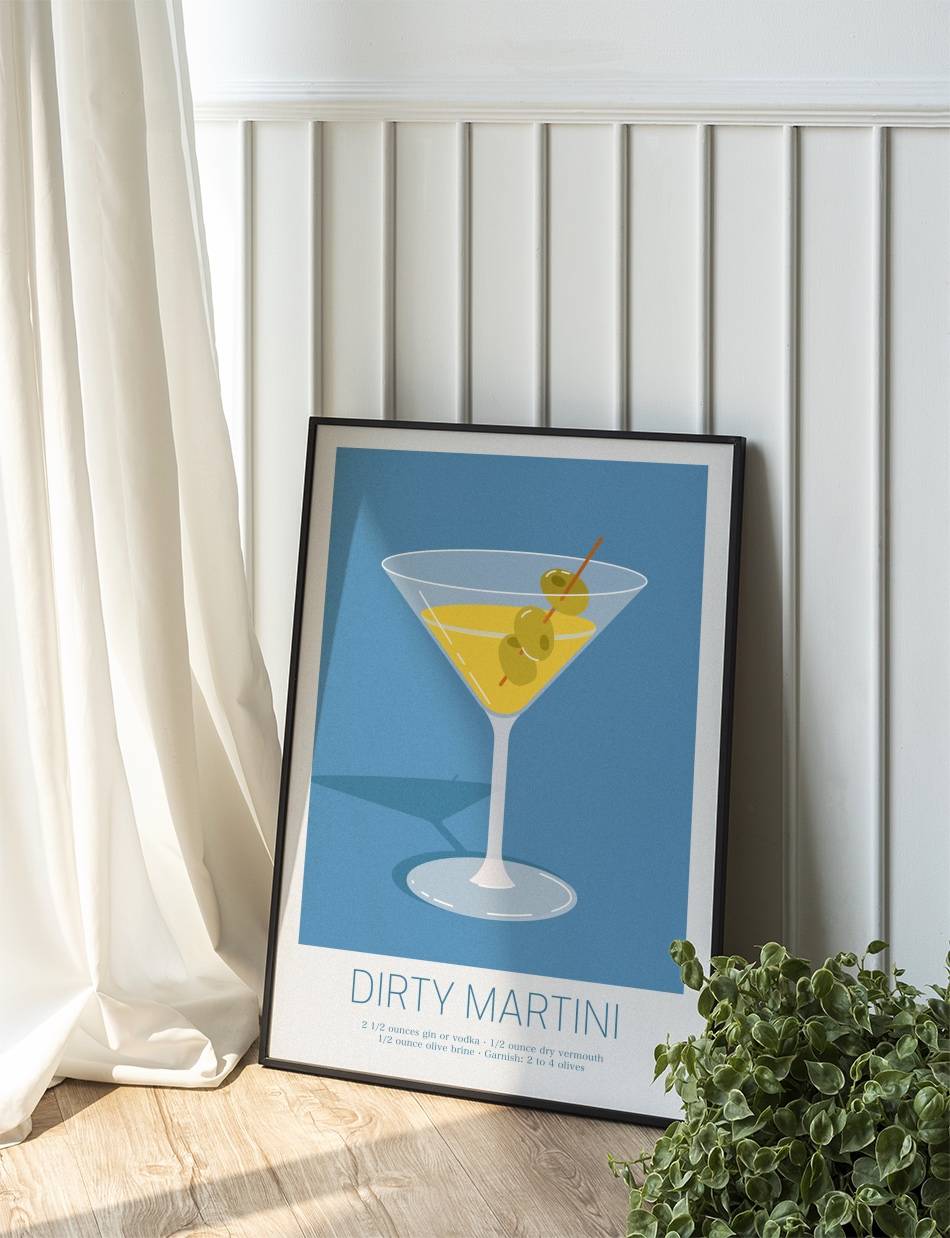 Denne grafiske plakat fanger den sofistikerede charme ved denne klassiske cocktail. Ideel til den moderne hjemmebar.