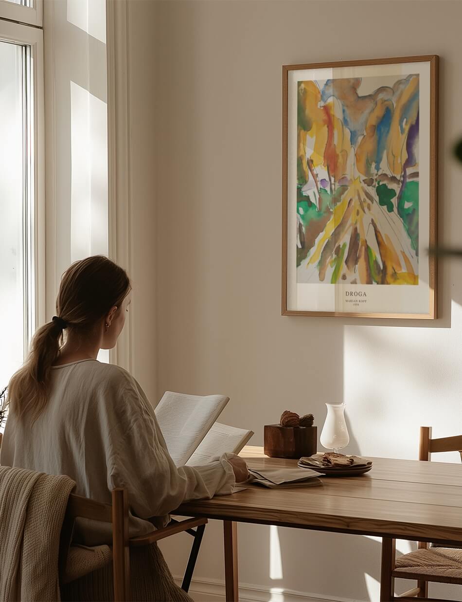 Værkets abstrakte stil giver plads til individuelle fortolkninger, og det er netop denne åbenhed, der gør det til et fascinerende kunstværk. ‘Droga’ er et must-have for enhver kunstelsker, der ønsker at tilføje et strejf af poesi og farve til deres hjem.