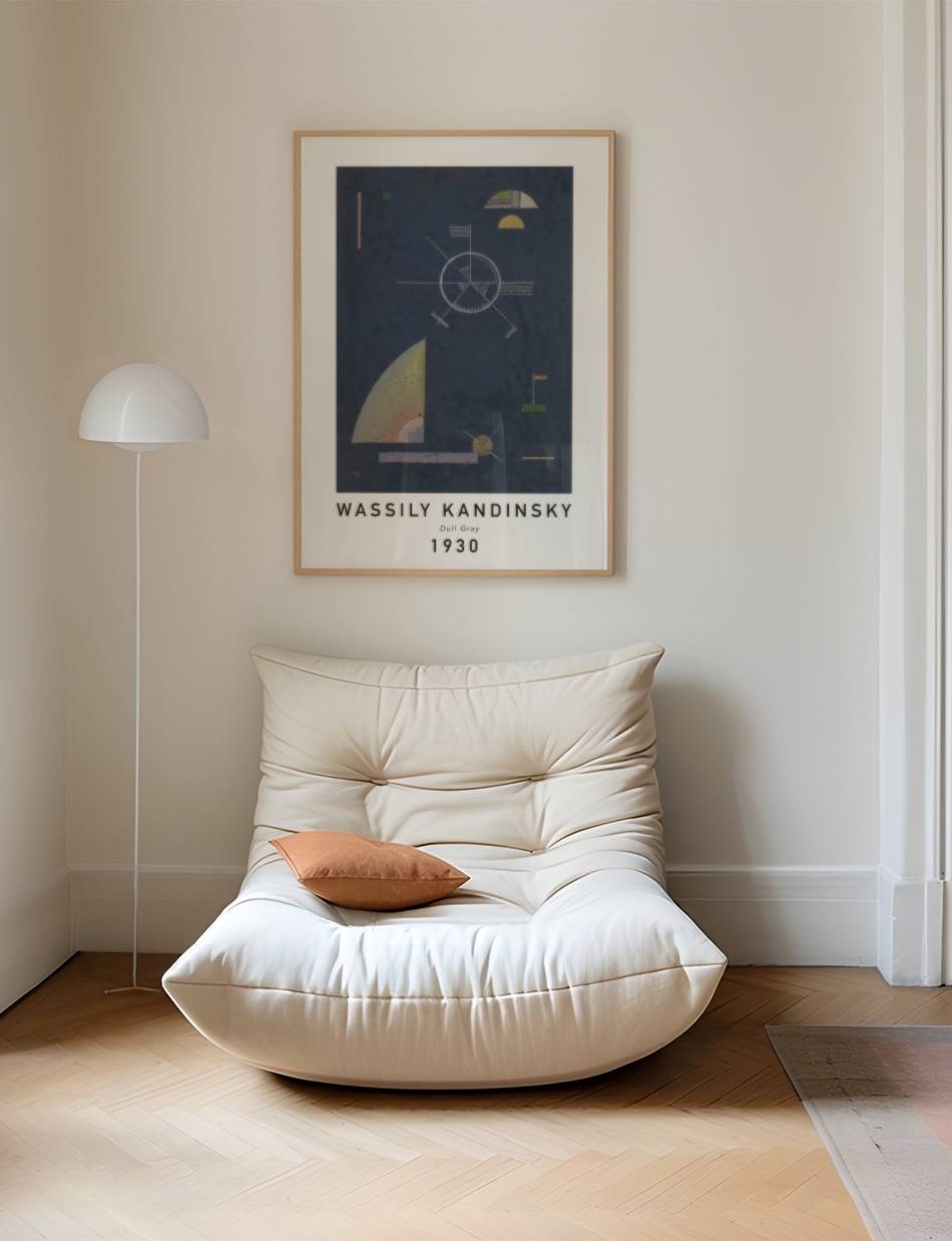 Dull Gray af Wassily Kandinsky er en plakat, der med sin diskrete brug af farve og form, inviterer til refleksion og indre ro. Denne kunstplakat er en unik blanding af minimalisme og emotionel dybde, perfekt for dem, der værdsætter kunstens evne til at tale til sjælen.