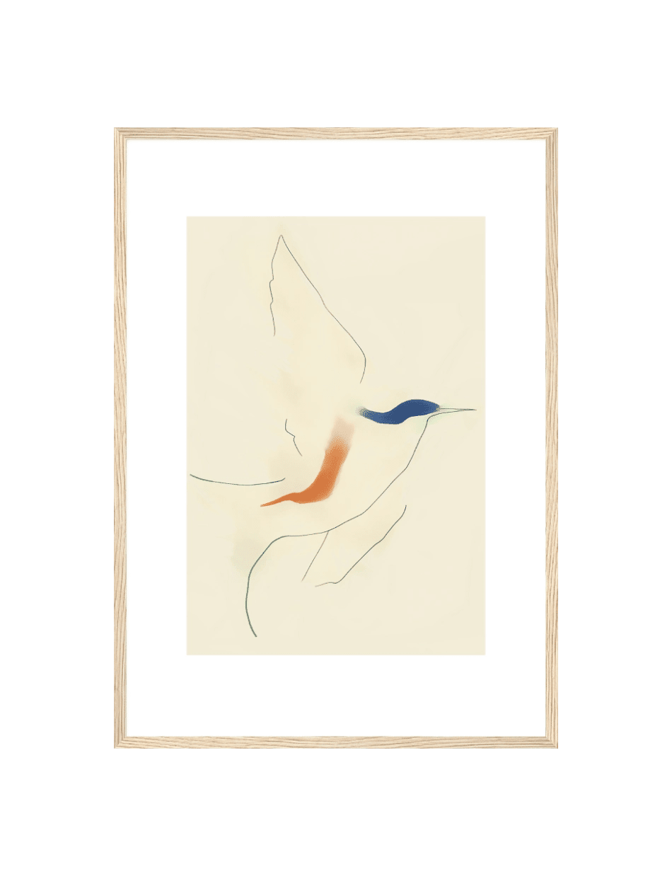 Find ro i ‘Elegance i Flugt’, en plakat der med minimalistisk skønhed indfanger fuglens lette bevægelser. De sparsomme linjer og sarte farver afspejler frihedens og naturens skønhed. Et tidløst kunstværk der passer ind i ethvert rum, som ønsker et pust af naturens uhindret ynde.