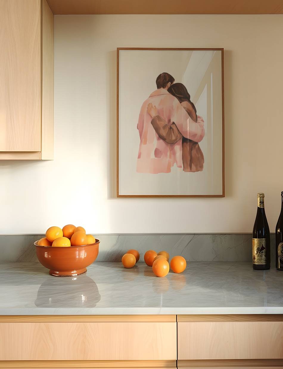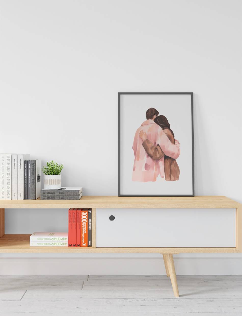 Embrace in Pastel er en blid hyldest til kærligheden, hvor bløde farver mødes i en omfavnelse, der udstråler varme og nærhed. Et værk, der tilføjer en følelse af ro og kærlighed til ethvert rum.