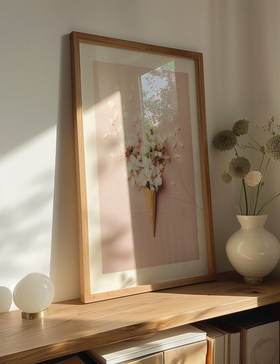 “Spring Whispers”-kollektionen fra Prints Charming byder foråret velkommen i en legende og kreativ tone. Disse plakater, som forener den søde charme af isvafler med den bløde skønhed af forårsblomster, indfanger forårets lette og luftige atmosfære. Med pastelfarver og et snert af varme, er hvert kunstværk en fejring af den genfødelse og nye begyndelse som foråret bringer.