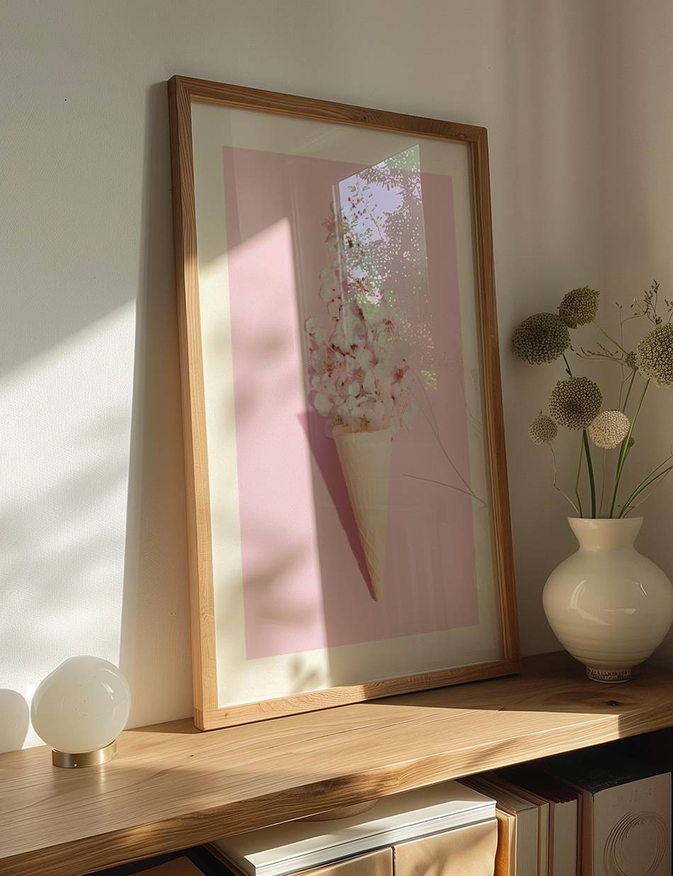 “Spring Whispers”-kollektionen fra Prints Charming byder foråret velkommen i en legende og kreativ tone. Disse plakater, som forener den søde charme af isvafler med den bløde skønhed af forårsblomster, indfanger forårets lette og luftige atmosfære. Med pastelfarver og et snert af varme, er hvert kunstværk en fejring af den genfødelse og nye begyndelse som foråret bringer.