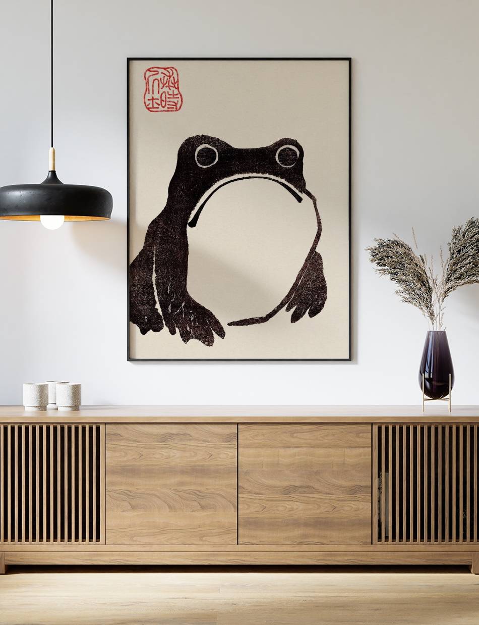 Lad denne charmerende frø fra Matsumoto Hoji bringe et smil på dit ansigt. Denne illustration fanger frøens legesyge ånd og skønheden i det enkle liv. En unikt plakat, der tilføjer en sjov og quirky vibe til ethvert rum.
