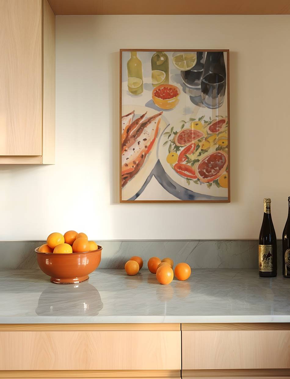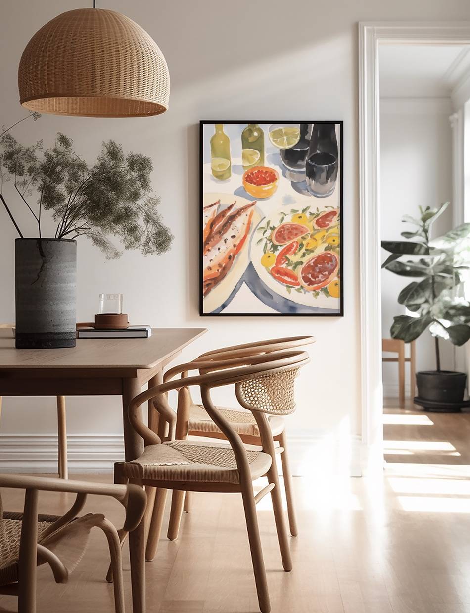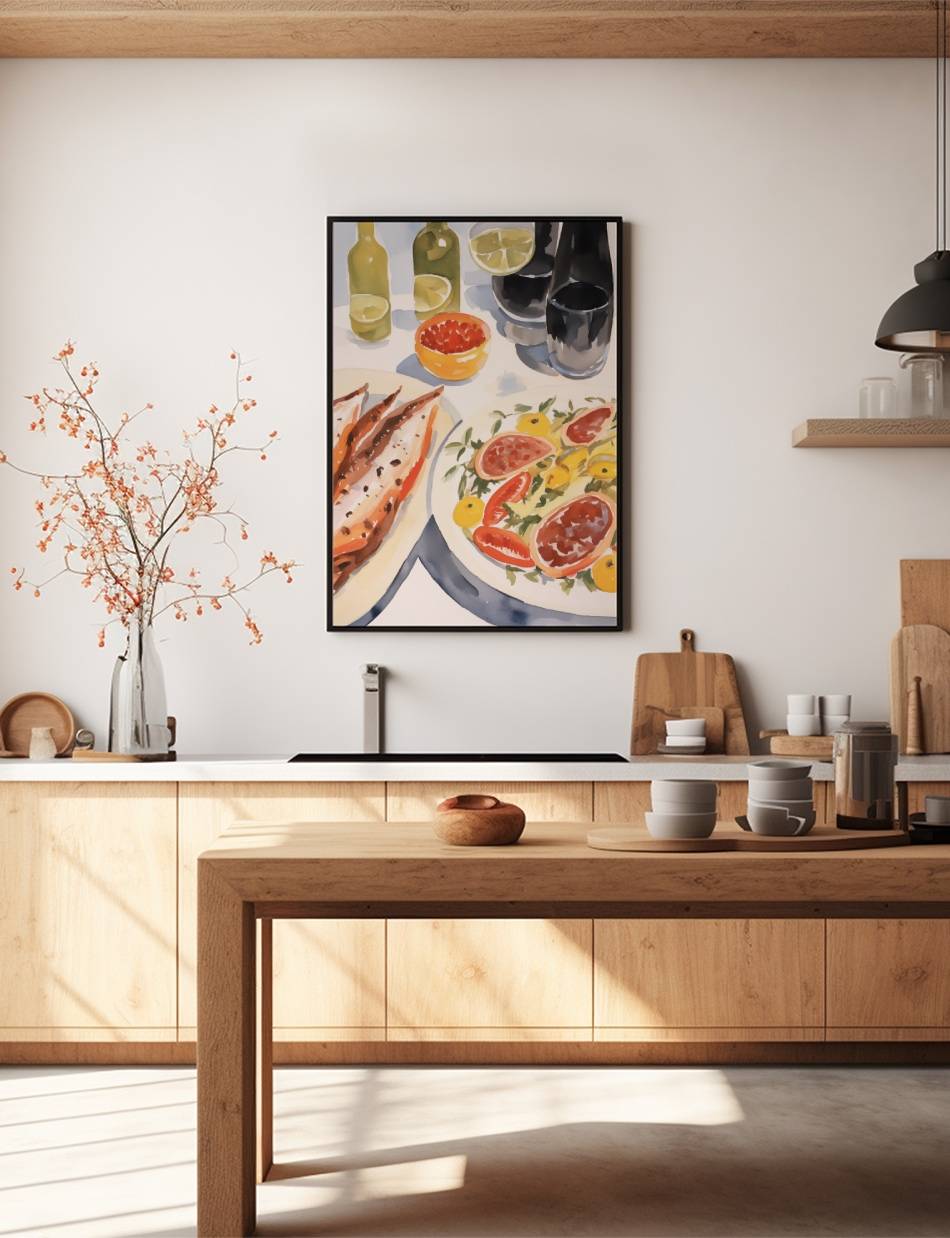 Garnished Gatherings fejrer øjeblikke af samvær med en charmerende sammensætning af kulinariske elementer. Denne plakat er perfekt for dem, der nyder godt selskab, og tilføjer et touch af stil og varme til din spisestue eller køkken. En hyldest til glæden ved fællesskab og god mad.