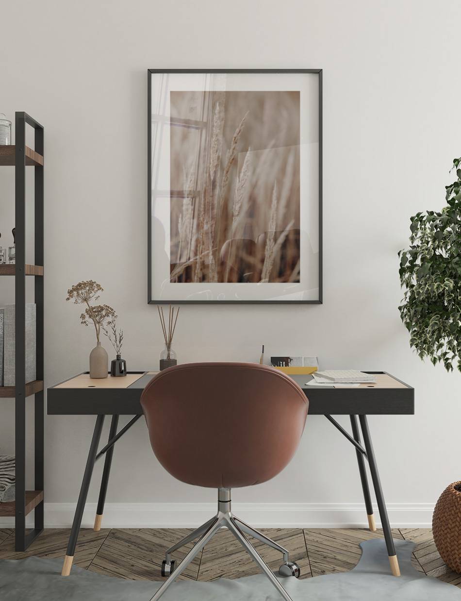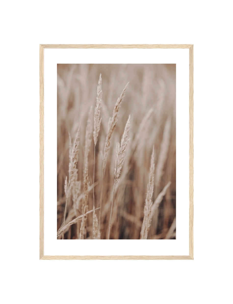 Lad denne plakat af delikate græstrå bringe en følelse af fred og ro ind i dit rum. En diskret påmindelse om naturens stille skønhed, perfekt til en beroligende atmosfære.