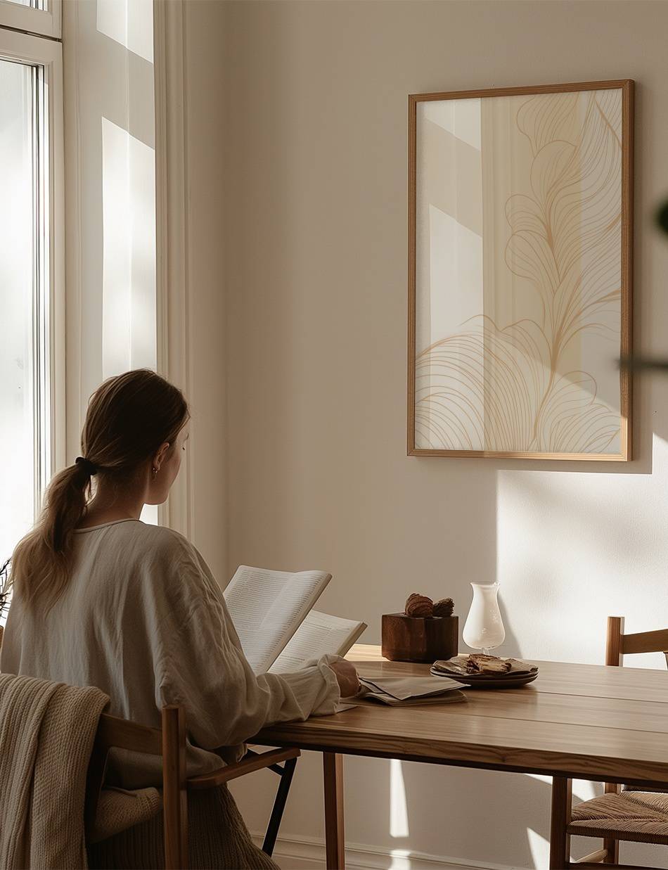 Harmonious Lines udforsker skønheden i balance og bevægelse gennem en serie af flydende linjer. Dette værk giver en følelse af ro og harmoni, som er et must-have for at skabe en afslappende oase i hjemmet. En smuk påmindelse om kunstens evne til at berolige og inspirere.