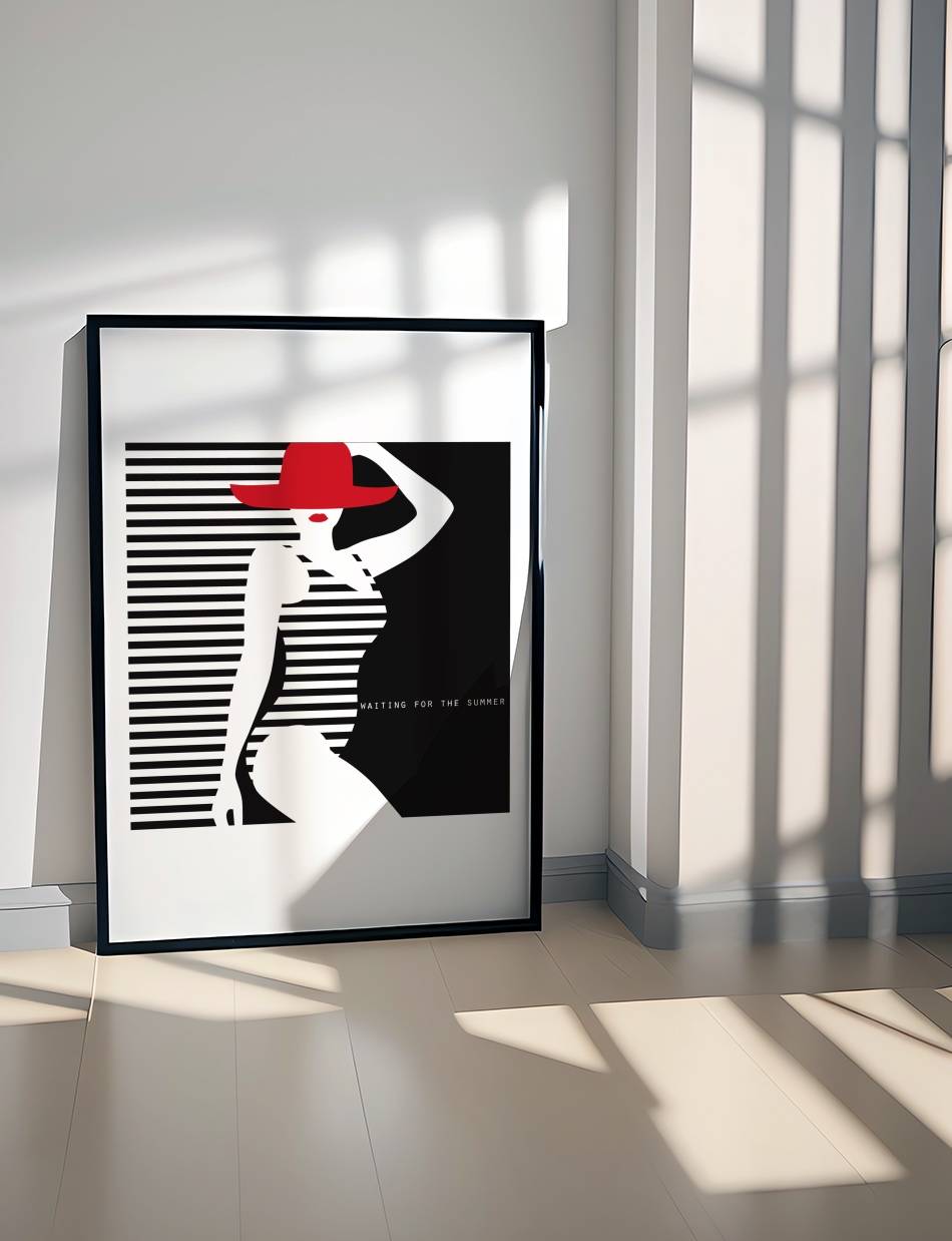 In Vogue for Vacation’ plakaten er en fejring af stilfulde rejser og uforglemmelige eventyr. Med sit levende design og iøjnefaldende detaljer inviterer det til at drømme sig væk til fjerne destinationer og skaber en følelse af wanderlust i dit hjem.