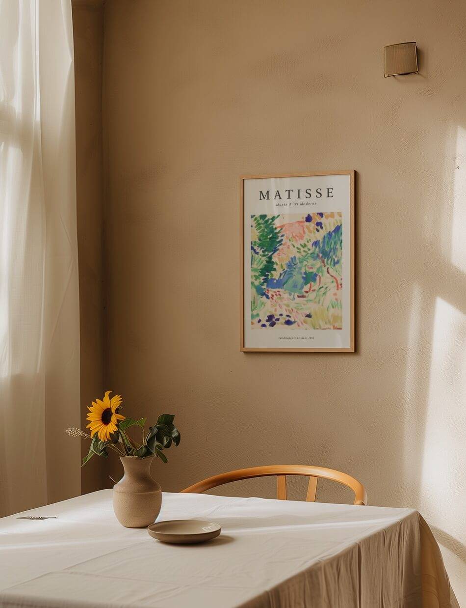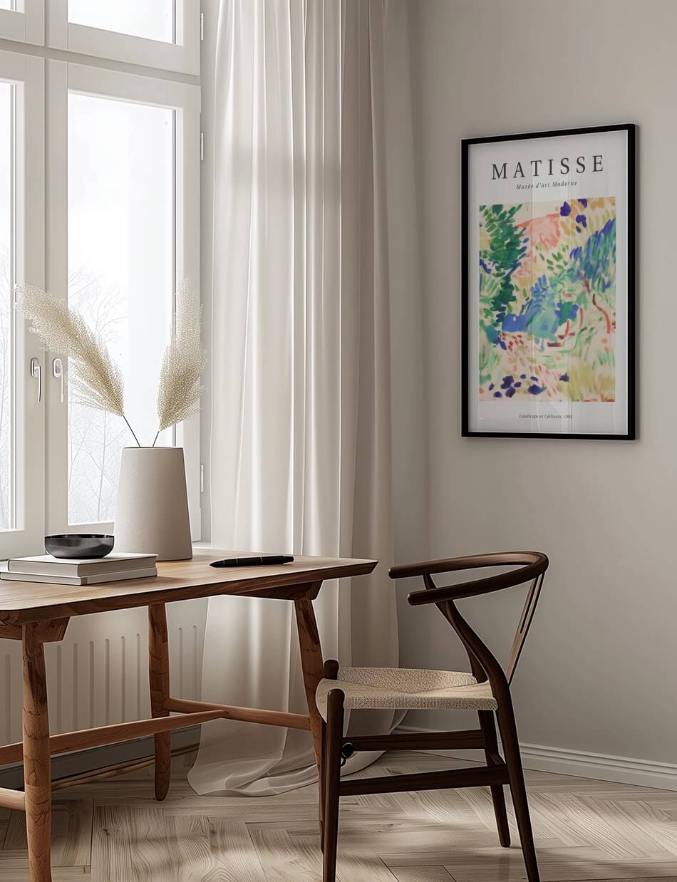 Vores Matisse Plakater er en fejring af livet, fyldt med lys, farve og en dyb forståelse for den æstetiske nydelse. Hans værker, som “Dans” og “Musik”, er ikoniske eksempler på hans evne til at fange bevægelse og følelse på en måde, der var radikalt ny i forhold til hans tid. Han var ikke bange for at bruge levende farver og abstrakte former for at udtrykke sin kunstneriske vision, hvilket gør hans kunst evigt relevant og inspirerende.