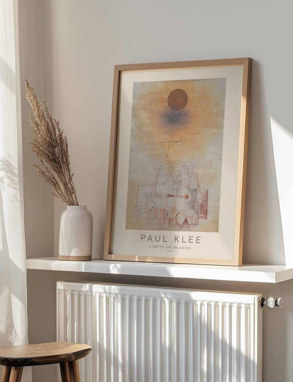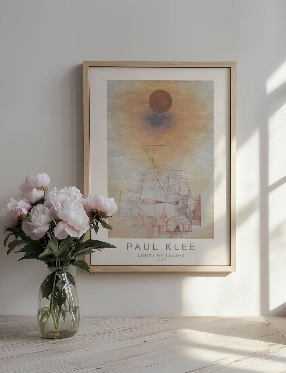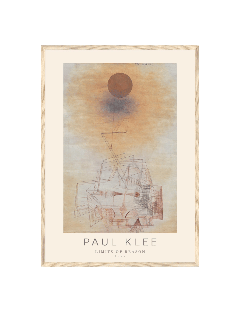 Limits of Reason plakaten af Paul Klee fra 1927 er et fascinerende abstrakt kunstværk, der kombinerer geometriske former med subtile farveovergange. Værket præsenterer en kompleks komposition af linjer og former, der udfordrer beskuerens opfattelse af fornuft og logik. Den varme farvepalet og de fine detaljer skaber en følelse af dybde og perspektiv, mens den store cirkel over værket giver en følelse af balance og harmoni. Klee’s arbejde inviterer til refleksion over, hvordan vi forstår og fortolker verden omkring os gennem fornuftens briller.