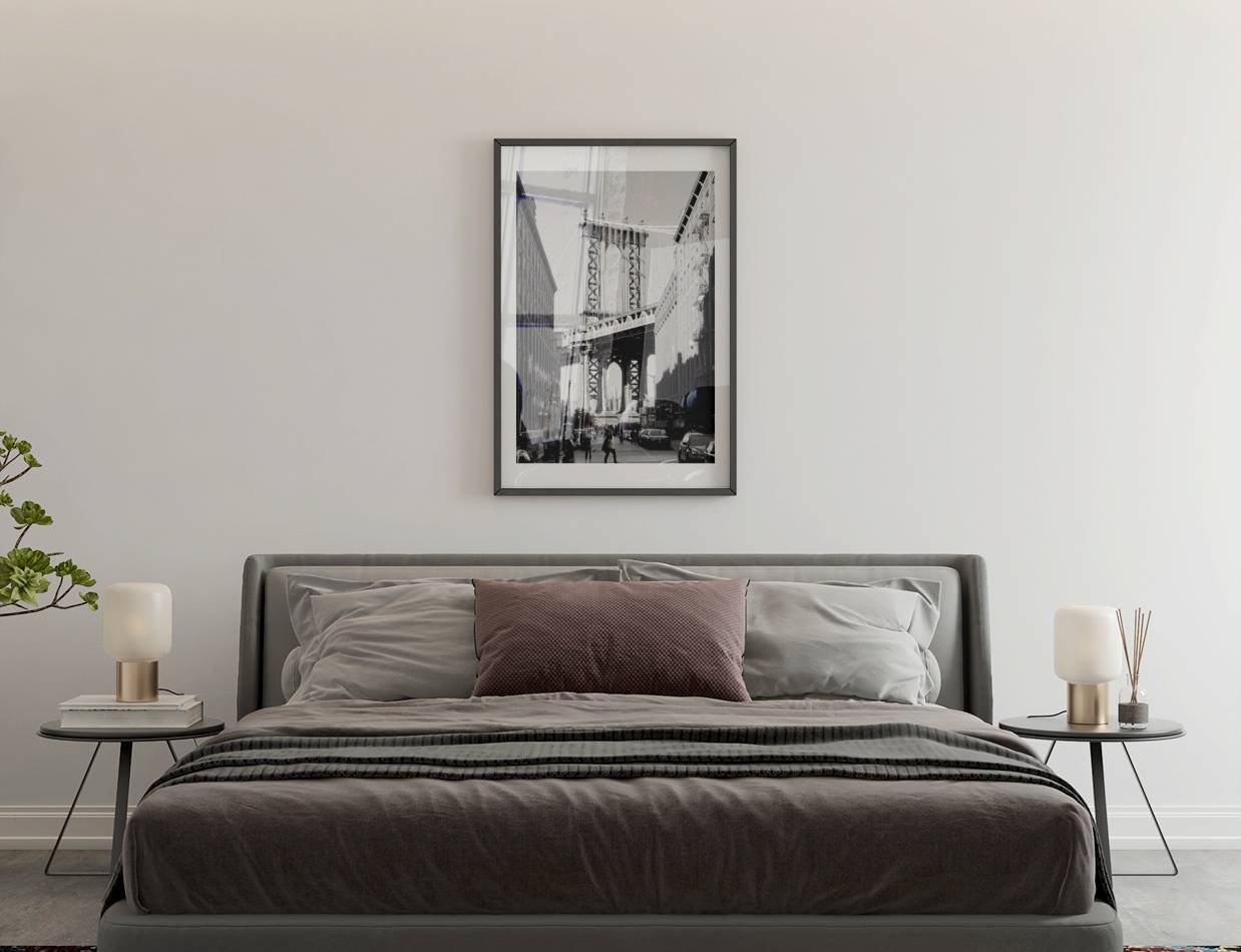 Vores Manhattan Bridge plakat bringer essensen af New Yorks energi og dynamik ind i dit hjem. Denne plakat viser den ikoniske bro med en baggrund af byens pulserende liv.