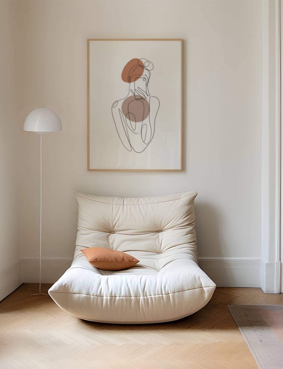 Minimalist Muse er essensen af minimalisme, hvor hver linje og hver farve har betydning. Denne plakat skaber en rolig og afklaret atmosfære, perfekt for det moderne hjem.