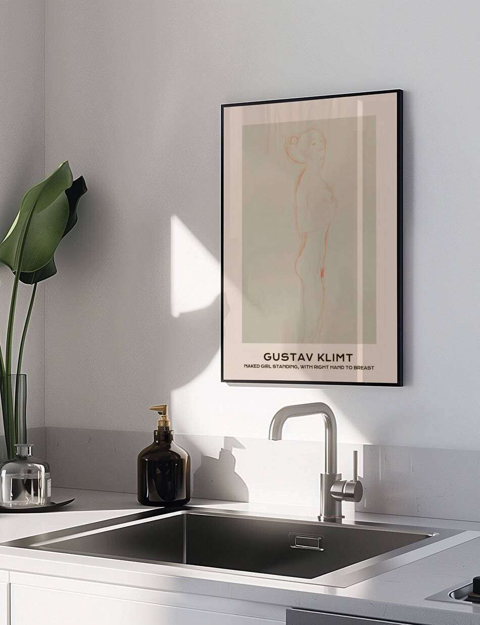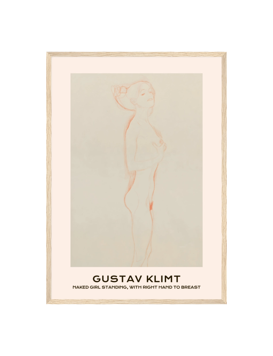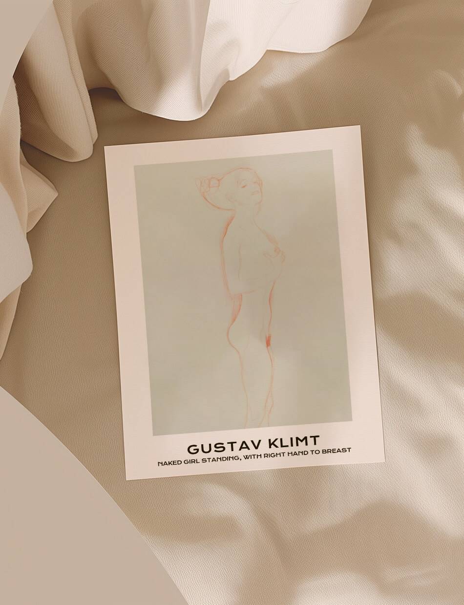 Naked Girl Standing, with Right Hand to Breast – Gustav Klimt