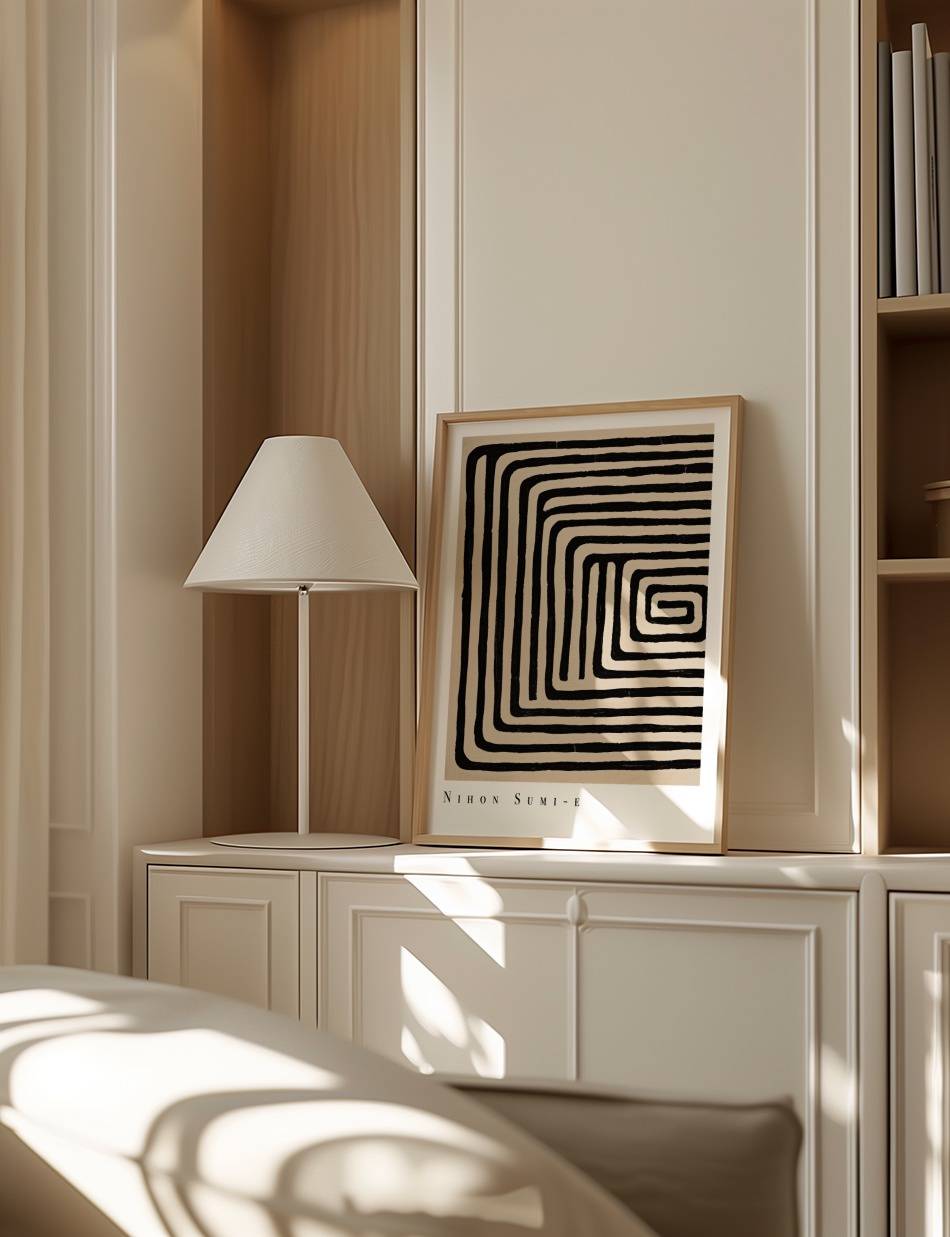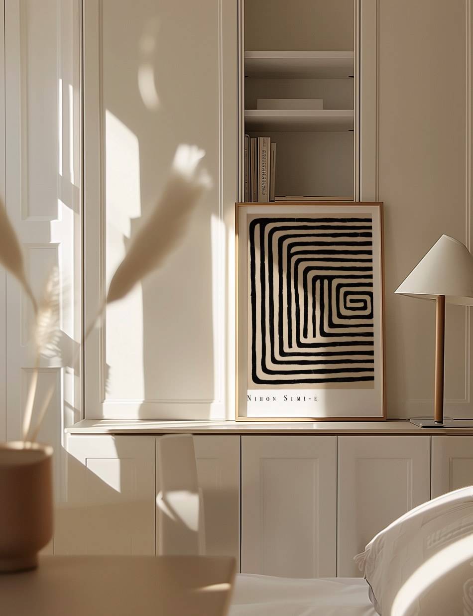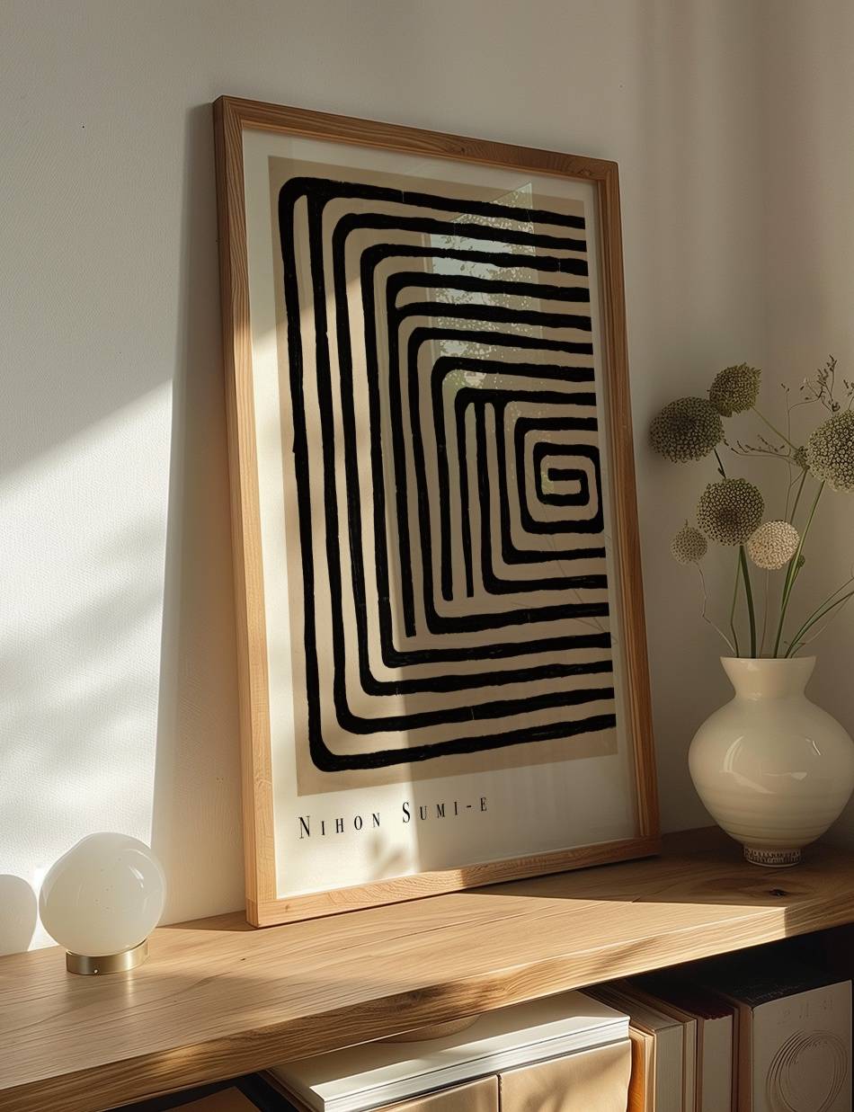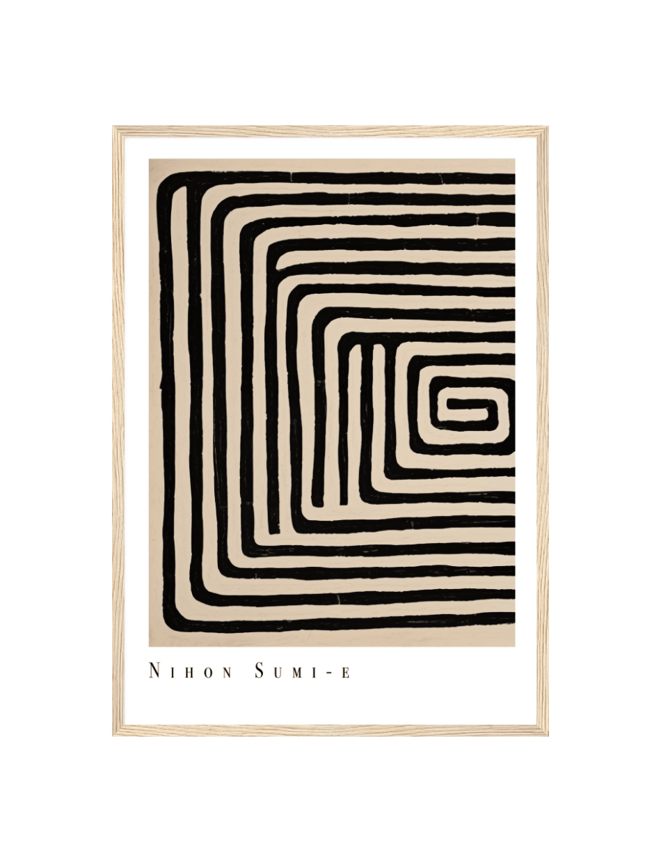 Vores Nihon Sumi-e plakat bringer den traditionelle japanske sumi-e malerkunsts elegance og enkelhed ind i dit hjem. Med minimalistiske penselstrøg og dyb symbolik, åbner denne plakat et vindue til en anden verden.