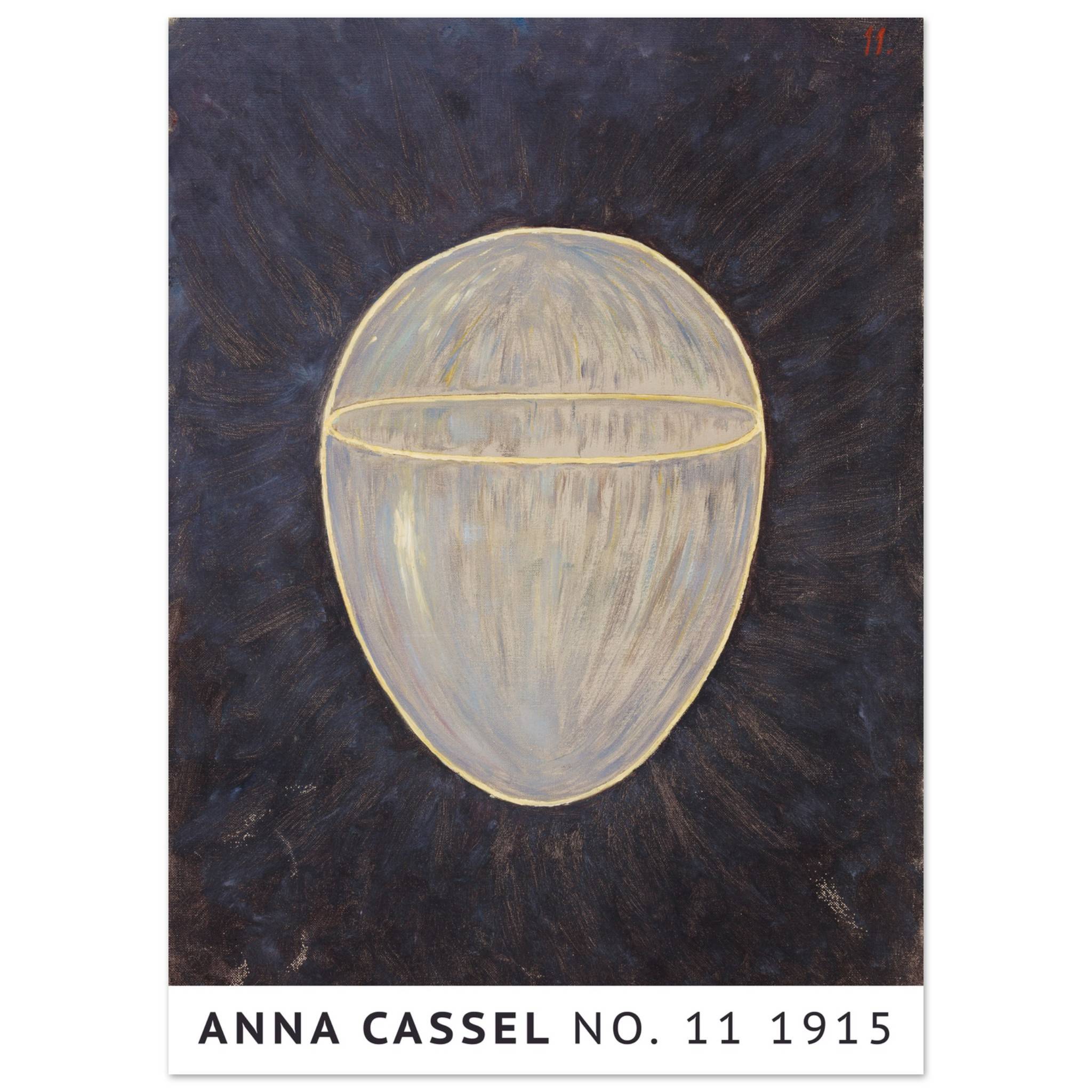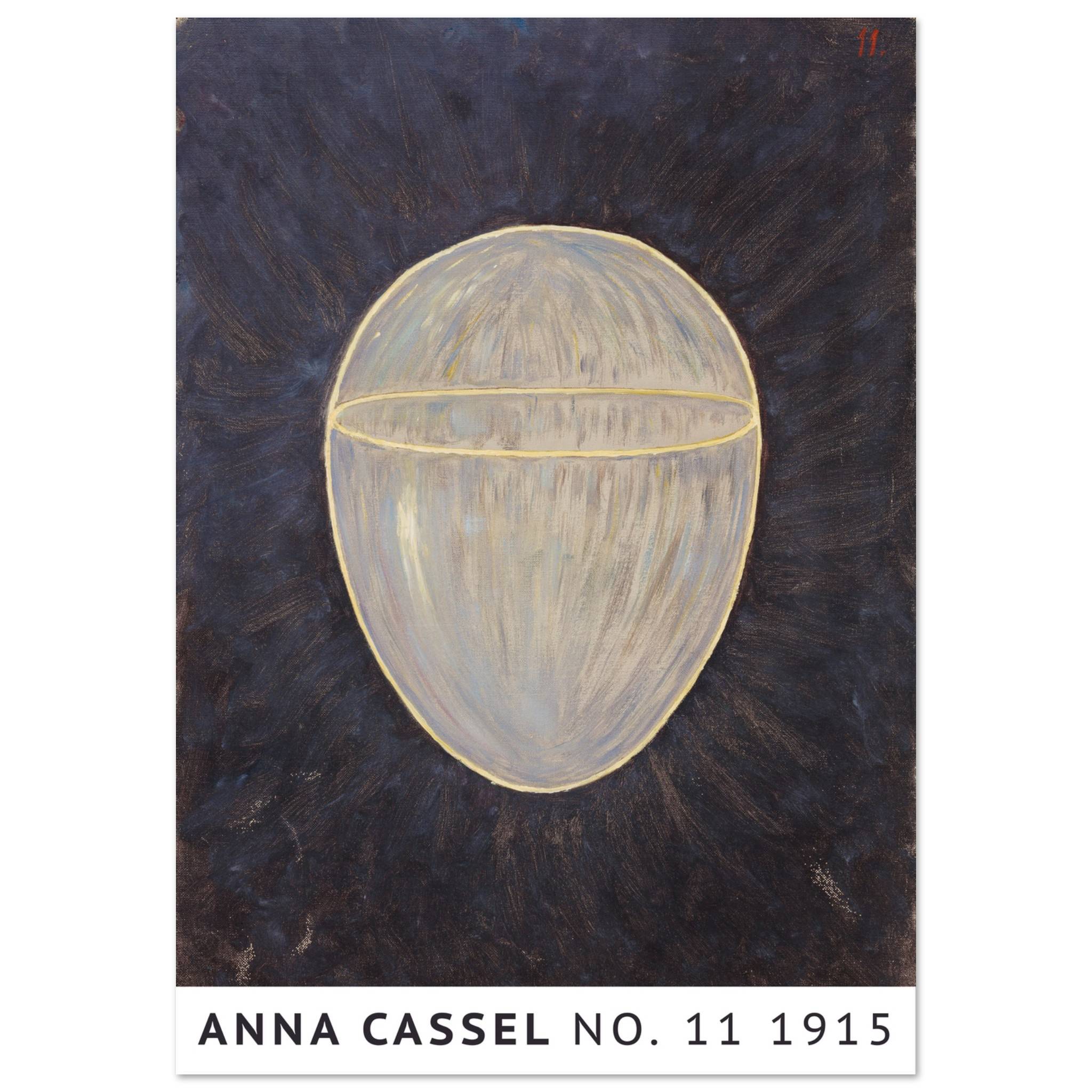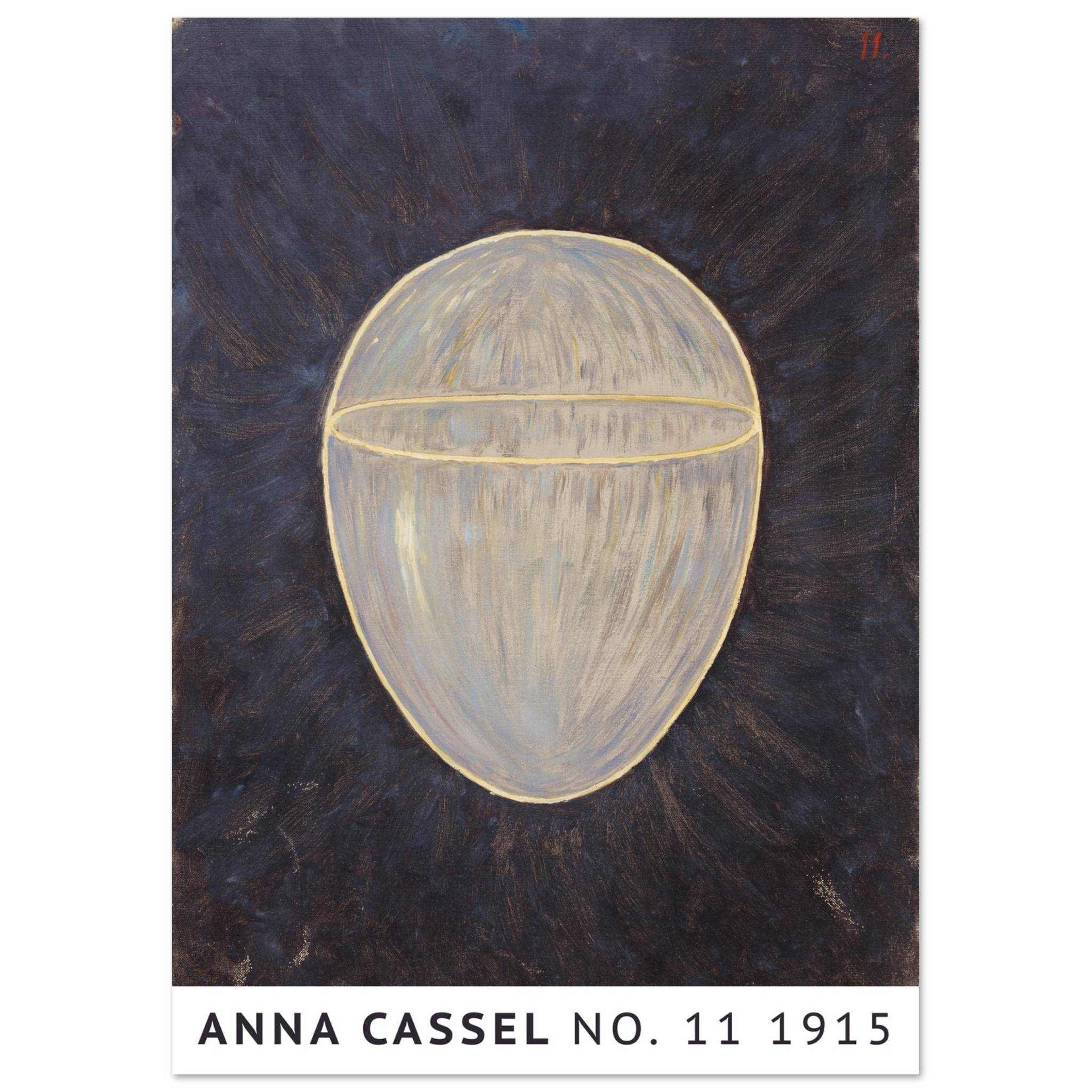 Anna Cassels værk fra 1915 fremstår som en meditative udforskning af form og lys. Centralt i kompositionen er en ovoid form, oplyst indefra og omkranset af en gylden kontur. Den mørke baggrund fremhæver det lysende objekt og skaber en følelse af mystik og dybde. Det indre lys i formen synes at stråle udad, hvilket giver værket en næsten kosmisk kvalitet. Dette kunstværk inviterer til at overveje de skjulte kræfter i universet og den indre lys, der findes i os alle.