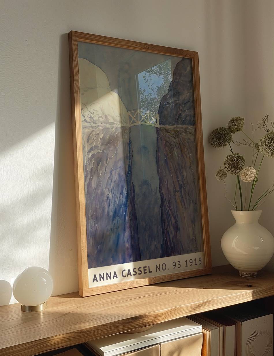 Gå på opdagelse i vores Anna Cassel plakater. Anna Cassel var en bemærkelsesværdig kunstner, kendt for sin forbindelse med Hilma af Klint og deres fælles spirituelle og kunstneriske samarbejde. Cassel udmærkede sig i landskabsmaleri, men også i okkulte malerier. Hendes værker, præget af både alvor og humor, udforsker åndelige temaer og naturens skønhed, hvilket gør hende til en fascinerende skikkelse i svensk kunst.