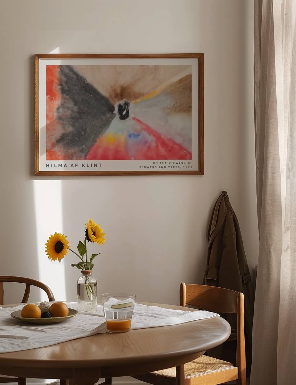 Hilma af Klints ‘On the Viewing of Flowers and Trees’ inviterer dig til at fordybe dig i en abstrakt verden af blomster og træer, hvor farverne danser og lyset stråler.