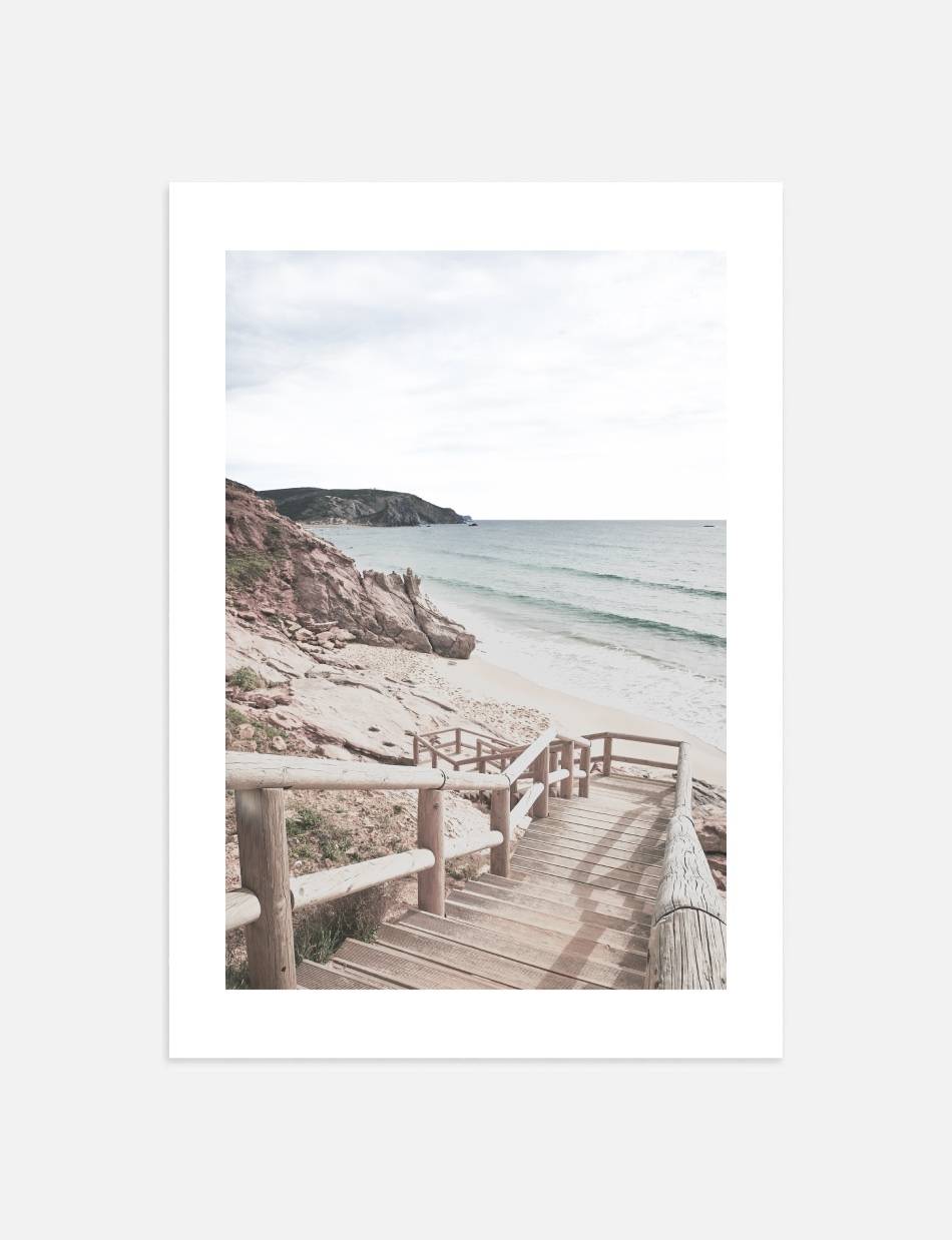Vores Praia da Bordeira plakat fanger den vilde og utæmmede skønhed af Portugals kyster. Med sit dramatiske landskab og kraftfulde bølger er denne plakat en hyldest til havets magi, perfekt for enhver, der længes efter eventyr og naturskønhed.