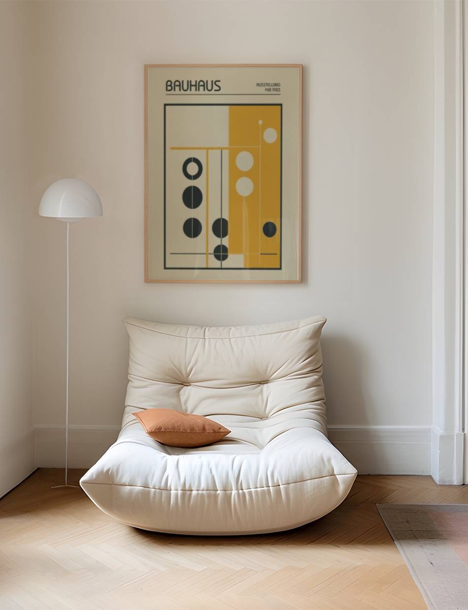 Retrograde Canvas genopfinder fortiden med et moderne twist. Denne Bauhaus plakat blander gammeldags charme med nutidens designæstetik og danner en tidløs tilføjelse til din indretning.