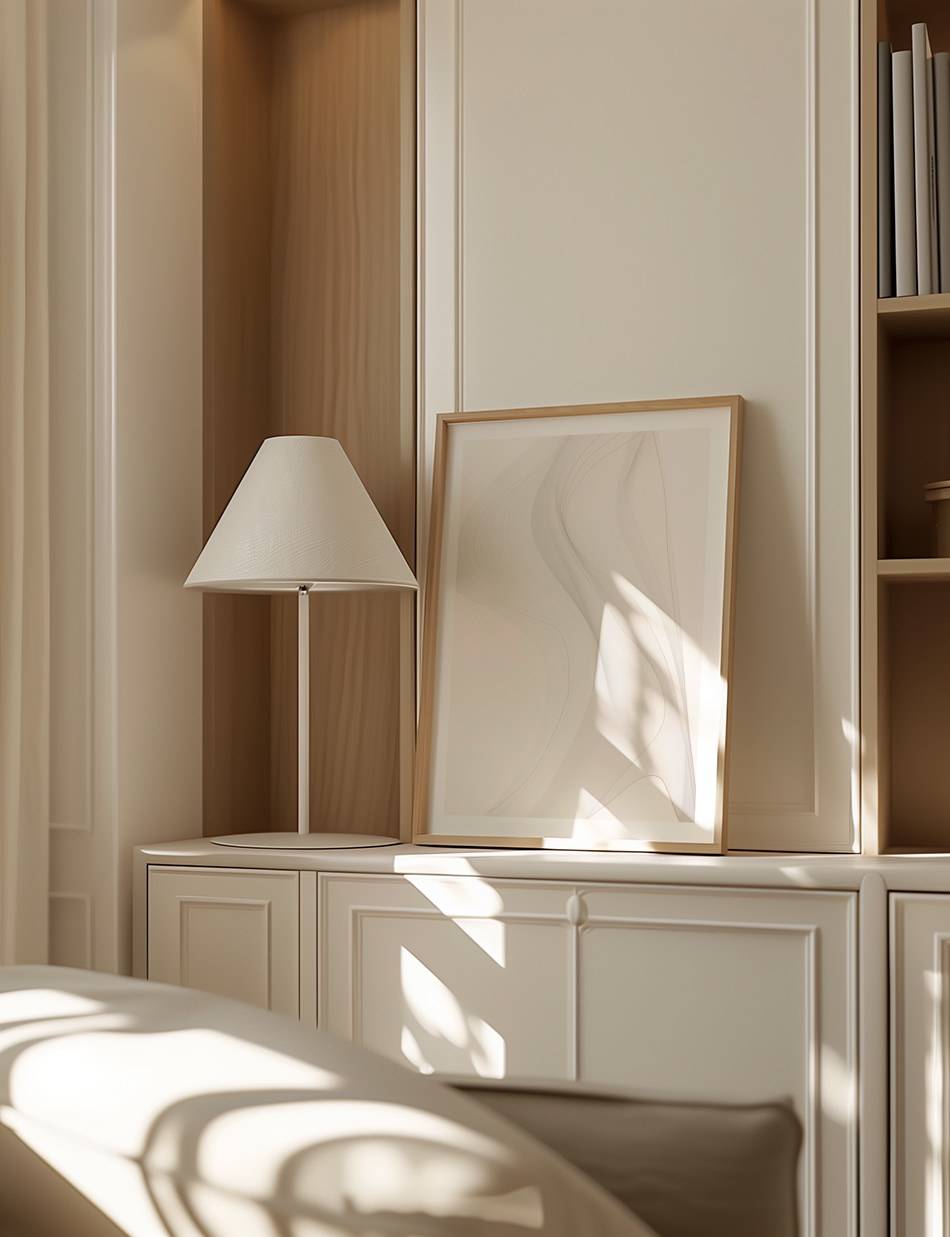 Vores Serene Abstraction plakat tilbyder en oase af ro gennem sin bløde farvepalette og flydende former. Denne poster er en invitation til at pause og reflektere, perfekt for et meditativt rum eller som et åndehul i hverdagen.