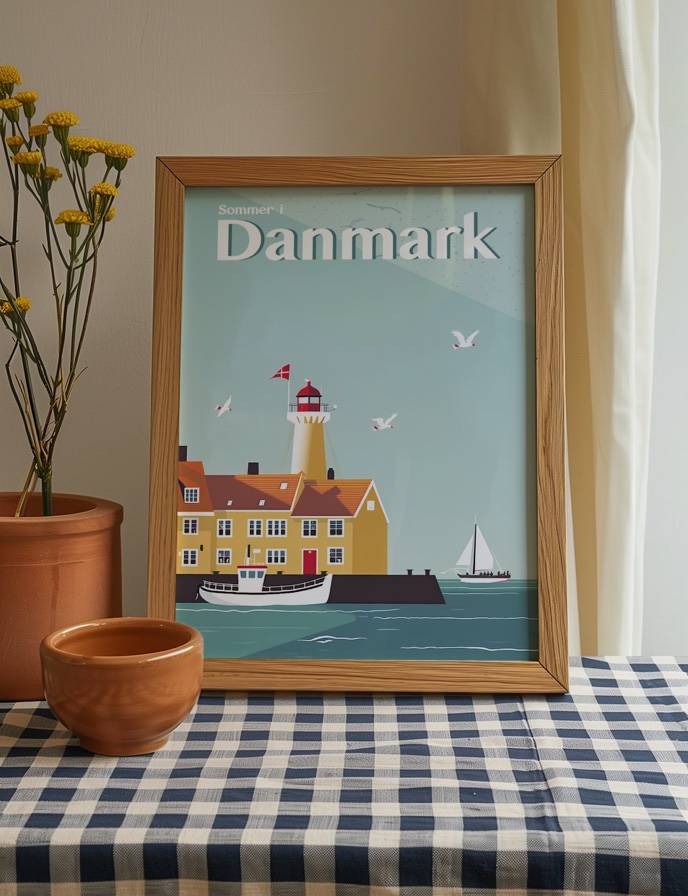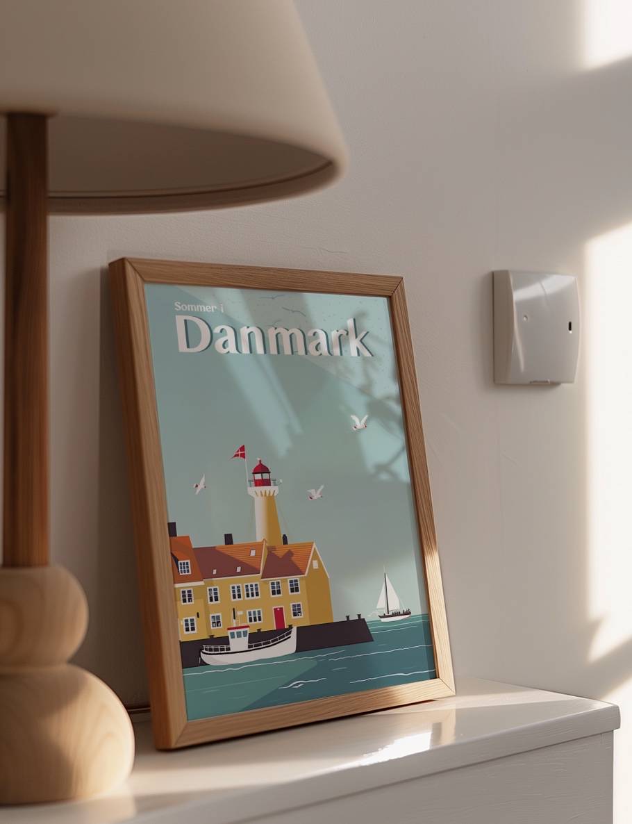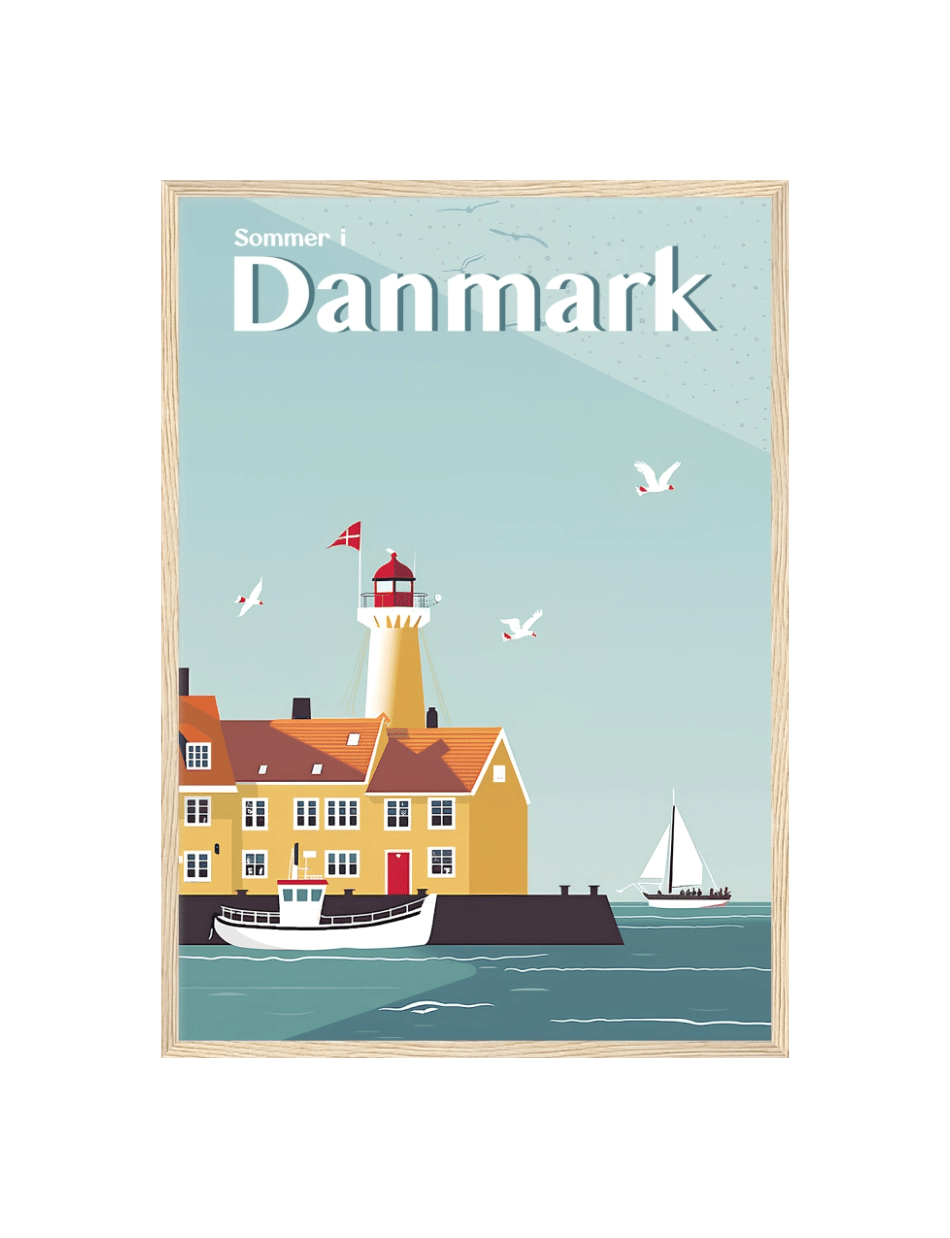 Mærk den danske sommer med vores plakatkollektion Sommer i Danmark. Vores smukt illustrerede plakater fanger essensen af danske sommerdage, fra majestætiske fyrtårne ved kysten til idylliske huse og maleriske fiskerlandsbyer.