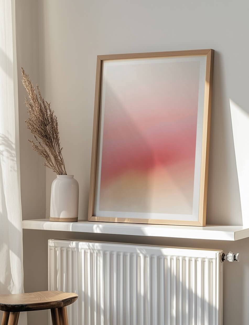 Soft Glow indfanger essensen af ro og varme. Lad dig omslutte af den blide overgang af pastelfarver, der skaber en atmosfære af fred og harmoni. Dette kunstværk er en invitation til at finde indre ro og lade tankerne vandre frit. Den diskrete kombination af farver bringer en drømmeagtig stemning, der vil tilføje ro til ethvert rum.