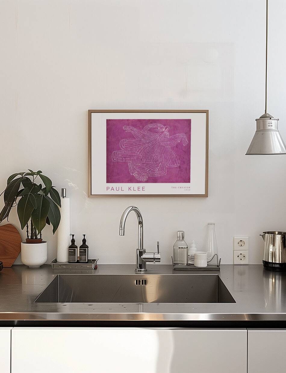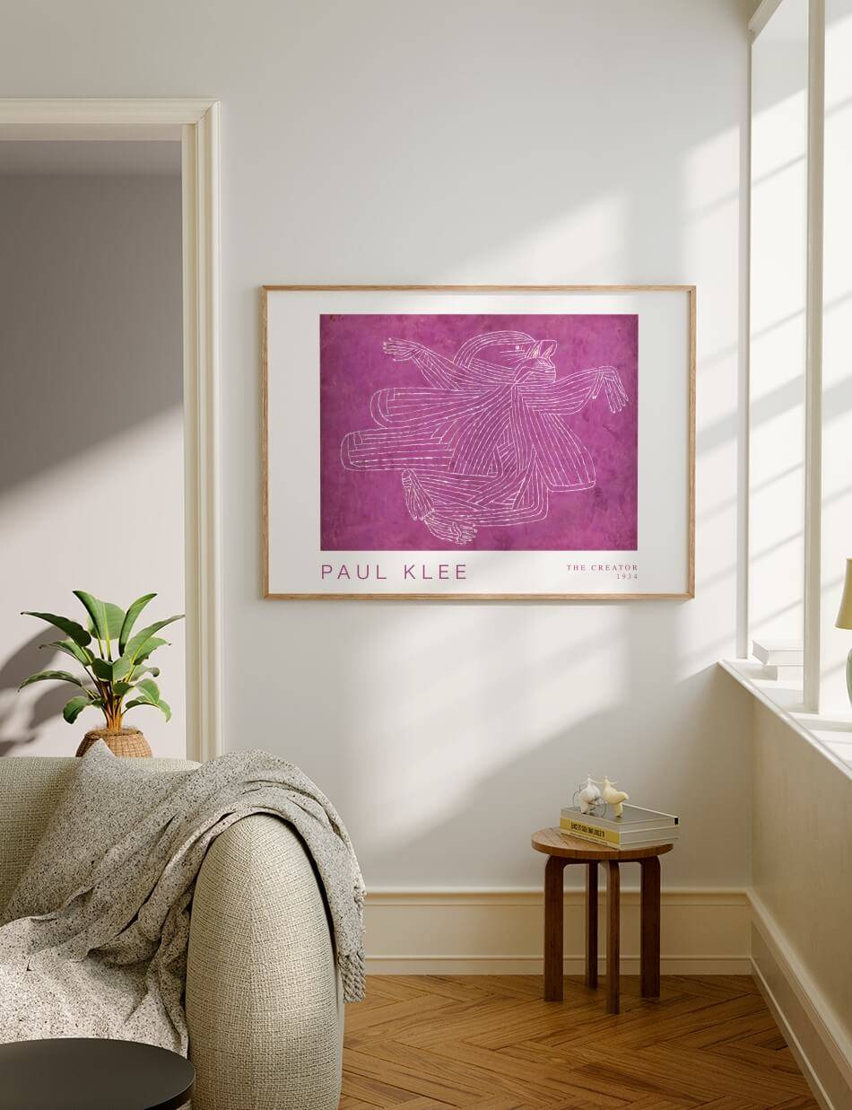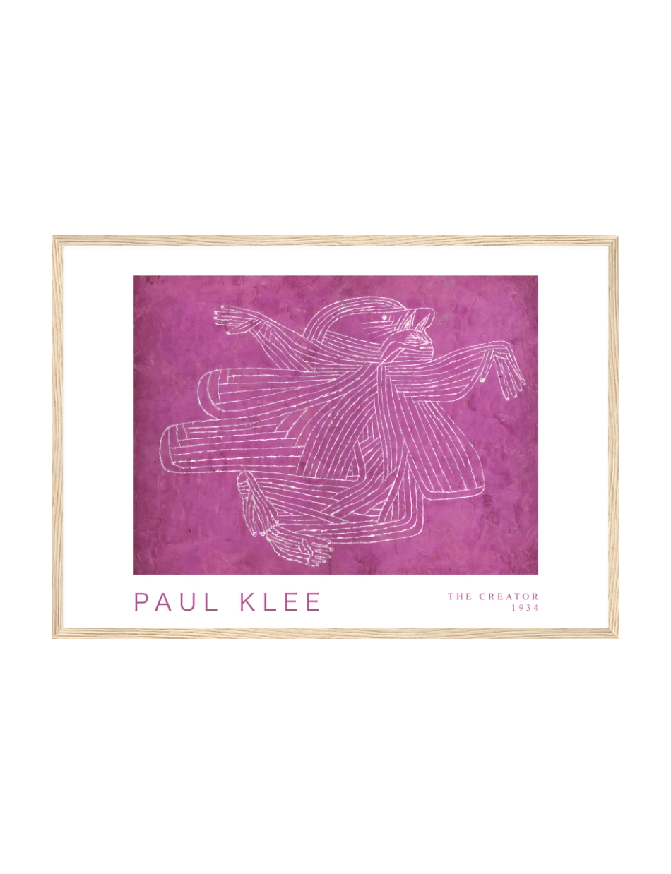Fordyb dig i Paul Klees fascinerende værk ‘The Creator’ fra 1934. Dette ikoniske tryk fanger essensen af kunstnerisk skabelse gennem et net af hvide, snoede linjer på en dyb lilla baggrund. Klees karakteristiske stil blander abstraktion med en følelse af bevægelse og energi, der symboliserer den kreative proces. De indviklede mønstre og dynamiske former inviterer til at udforske de uendelige muligheder i kunstnerisk udtryk. Et must for elskere af moderne kunst, der ønsker at tilføje et stykke af Klees geni til deres samling.