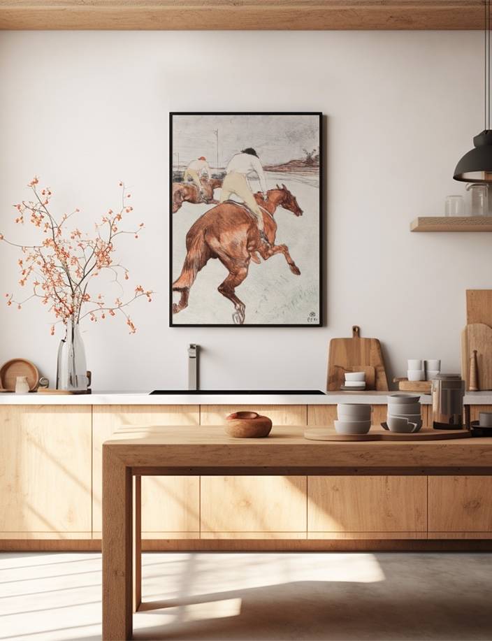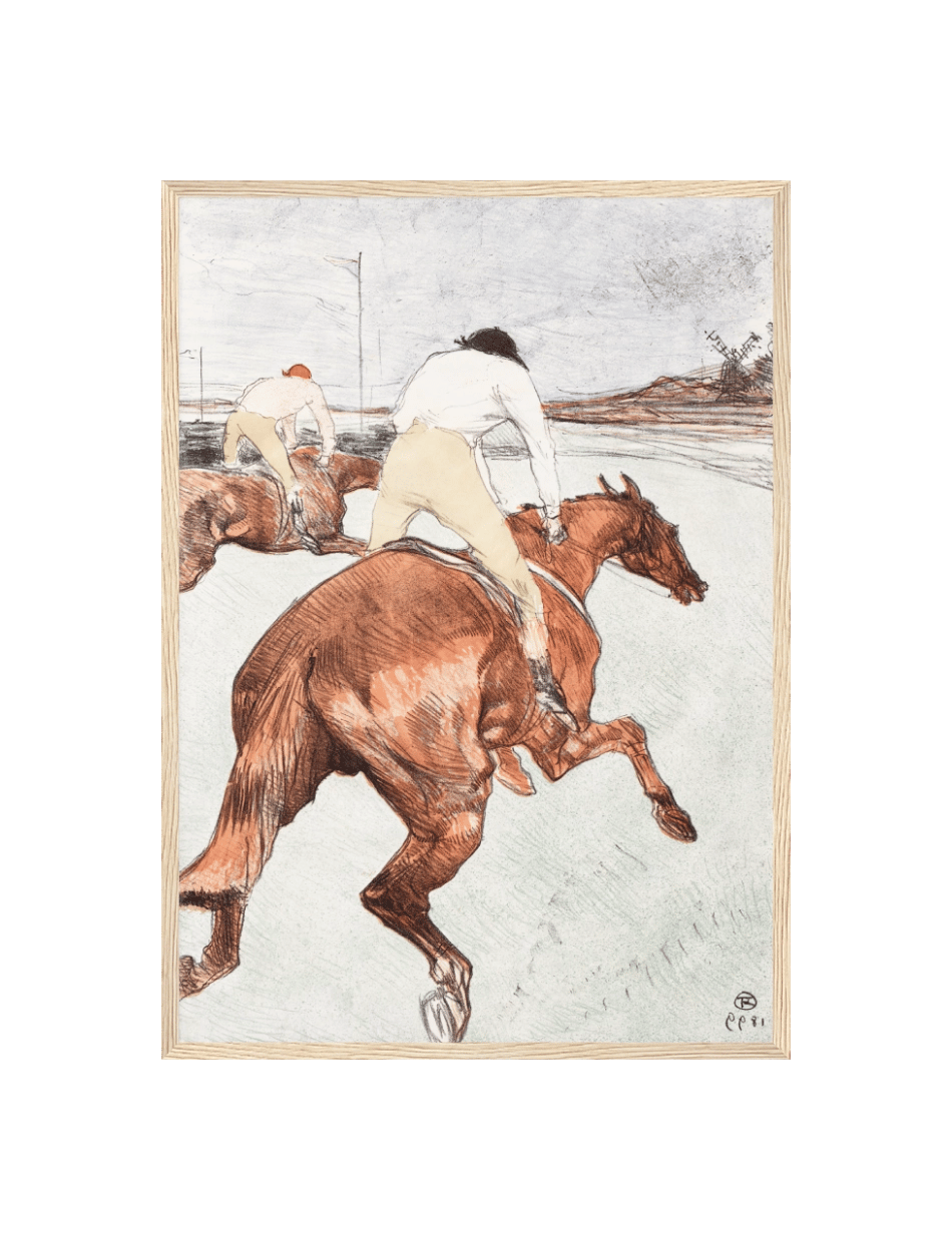 Oplev den ikoniske kunstner Henri de Toulouse-Lautrecs værk The Jockey. Dette livlige billede fanger stemningen af hestevæddeløb med en følelse af fart og spænding. Med sin karakteristiske stil formidler Lautrec den intense atmosfære af kapløbet, hvor jockeyerne i deres farverige dragter kæmper om sejren. Dette værk er et must-have for enhver kunstsamler og elsker af Lautrecs arbejde.