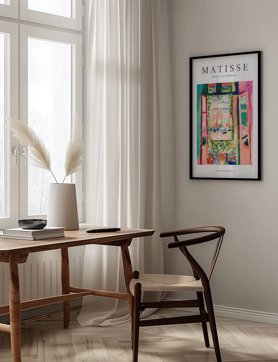 Vores Matisse Plakater er en fejring af livet, fyldt med lys, farve og en dyb forståelse for den æstetiske nydelse. Hans værker, som “Dans” og “Musik”, er ikoniske eksempler på hans evne til at fange bevægelse og følelse på en måde, der var radikalt ny i forhold til hans tid. Han var ikke bange for at bruge levende farver og abstrakte former for at udtrykke sin kunstneriske vision, hvilket gør hans kunst evigt relevant og inspirerende.