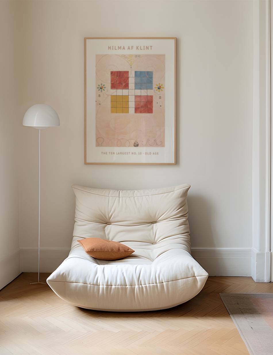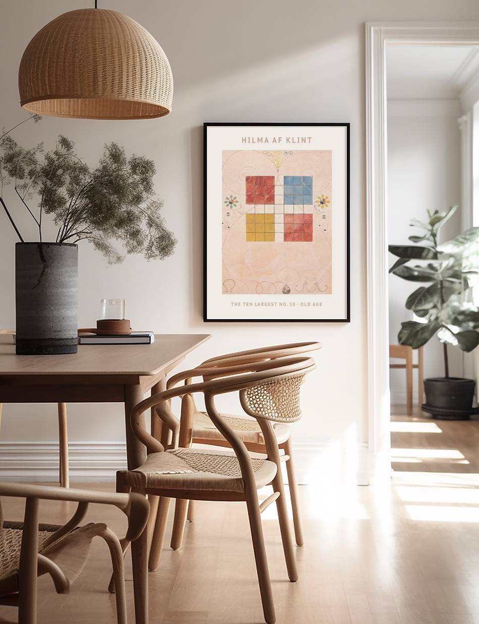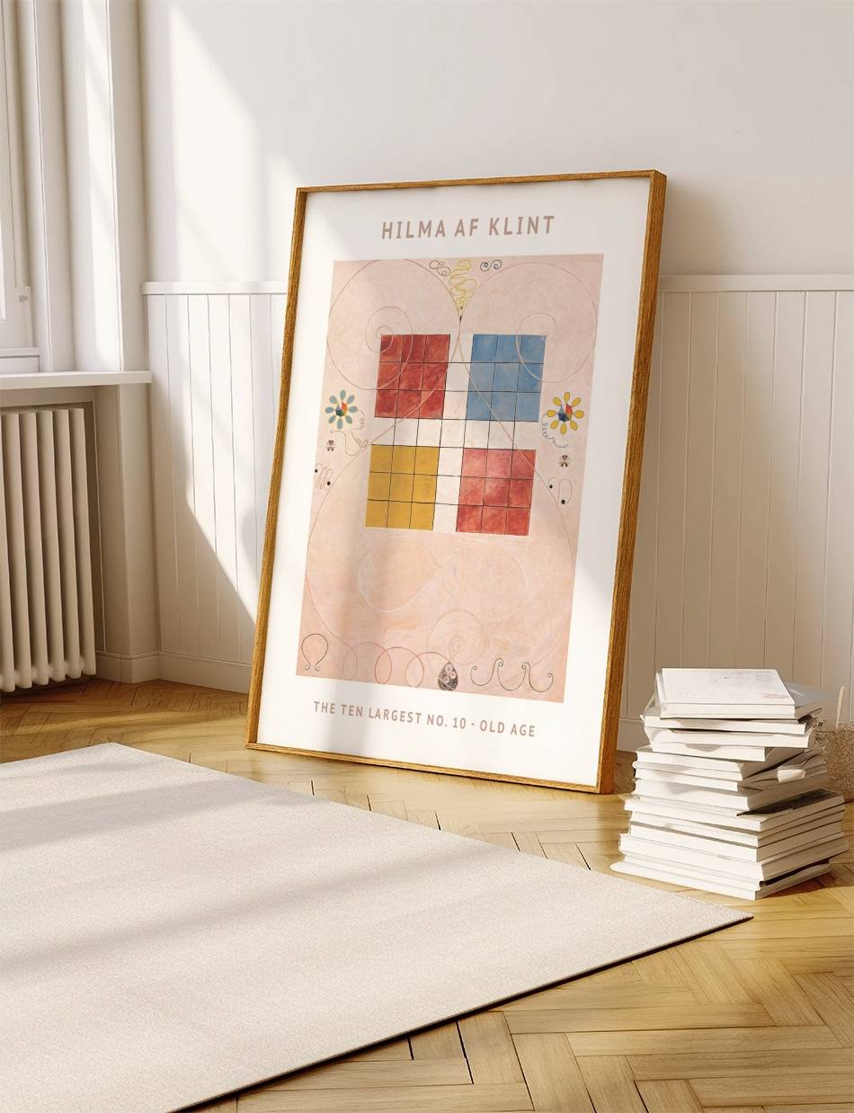 Old Age af Hilma af Klints er en kraftfuld visualisering af alderdommens visdom og skønhed. Kunstplakaten fremstår som en kalejdoskopisk sammenfletning af farver og former, der afspejler livets sammensatte og rigefulde natur.