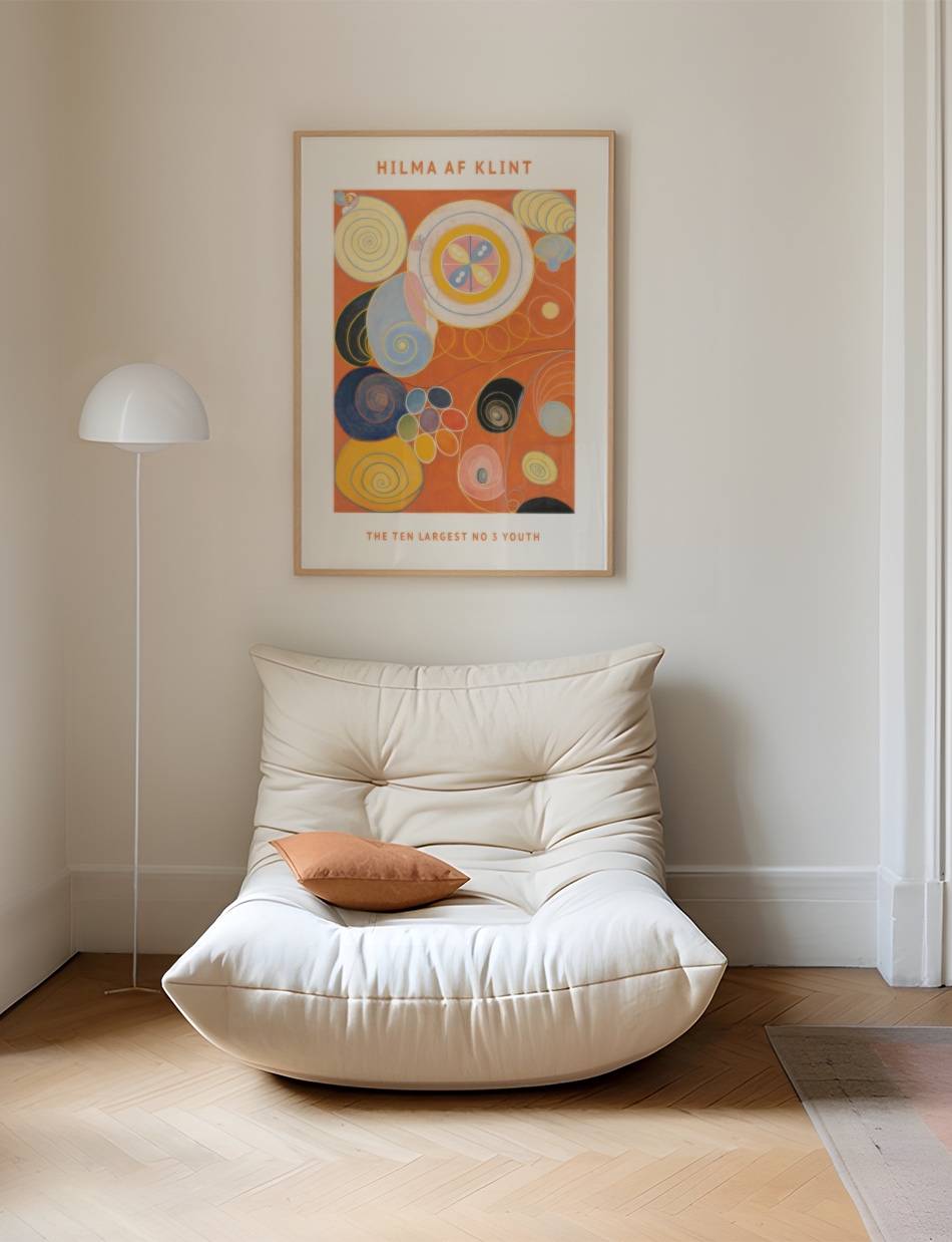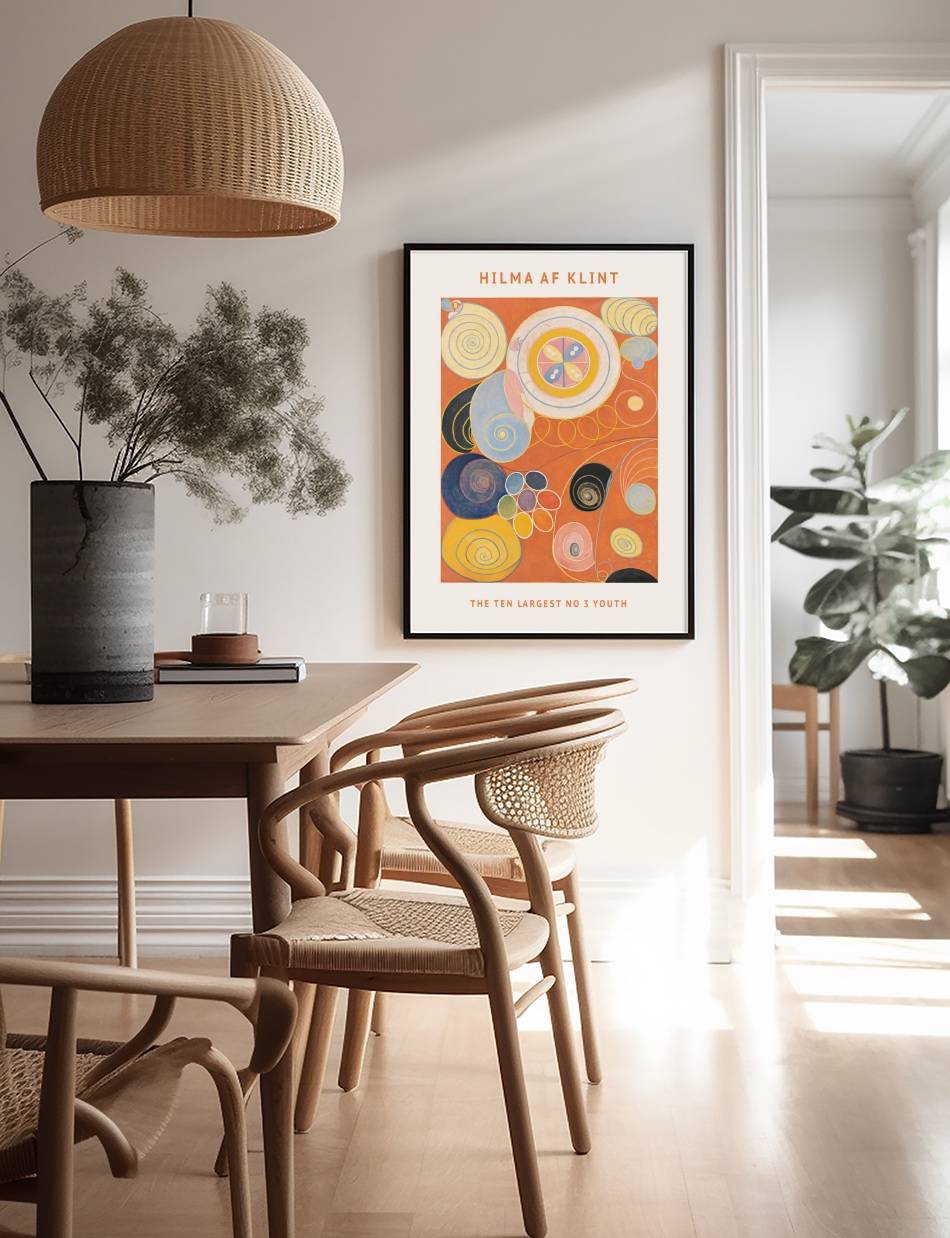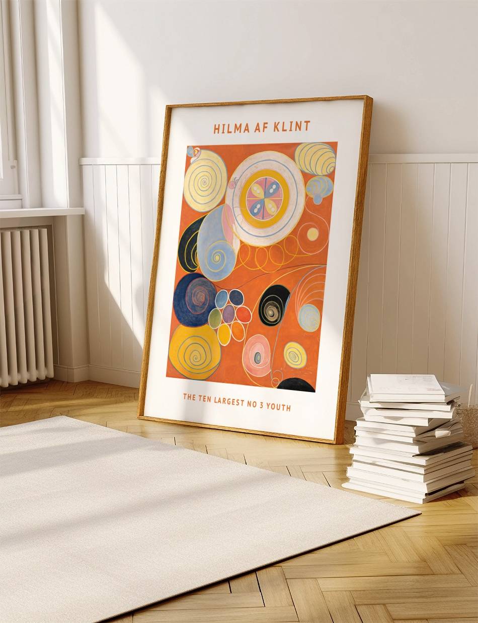 The Ten Largest, No. 3, Youth er en fejring af ungdommens energi og transformation. Hilma af Klints værk fanger denne flygtige tid med dynamiske former og strålende farver, der vækker rummet til live og inspirerer til fornyet kraft.