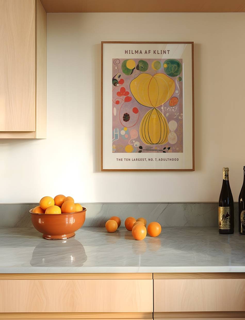The Ten Largest, No. 7, Adulthood skildrer voksenlivets rejse gennem farverige og komplekse abstraktioner. Hilma af Klints værk er en invitation til at udforske de dybere lag af vores eksistens og de skønhed, der findes i livets forskellige faser.