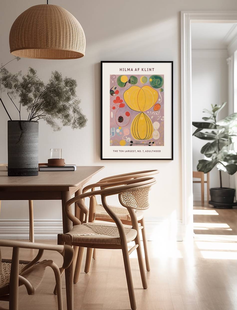 The Ten Largest, No. 7, Adulthood skildrer voksenlivets rejse gennem farverige og komplekse abstraktioner. Hilma af Klints værk er en invitation til at udforske de dybere lag af vores eksistens og de skønhed, der findes i livets forskellige faser.