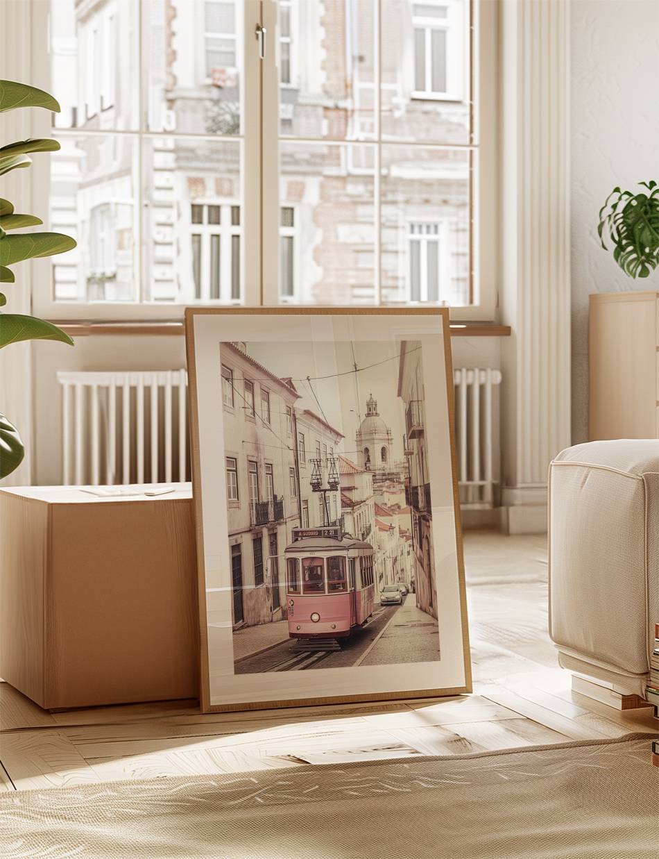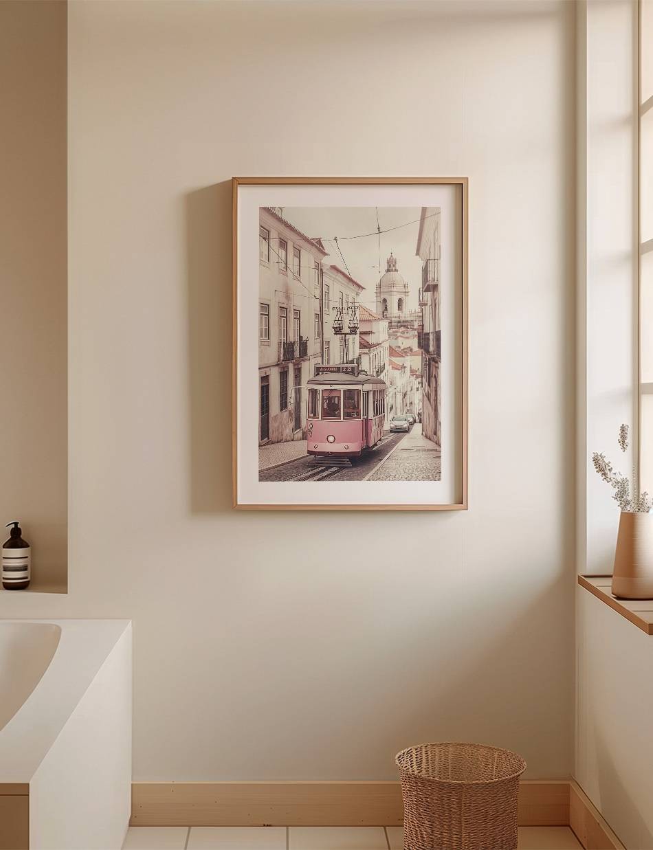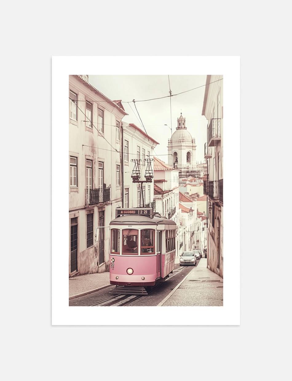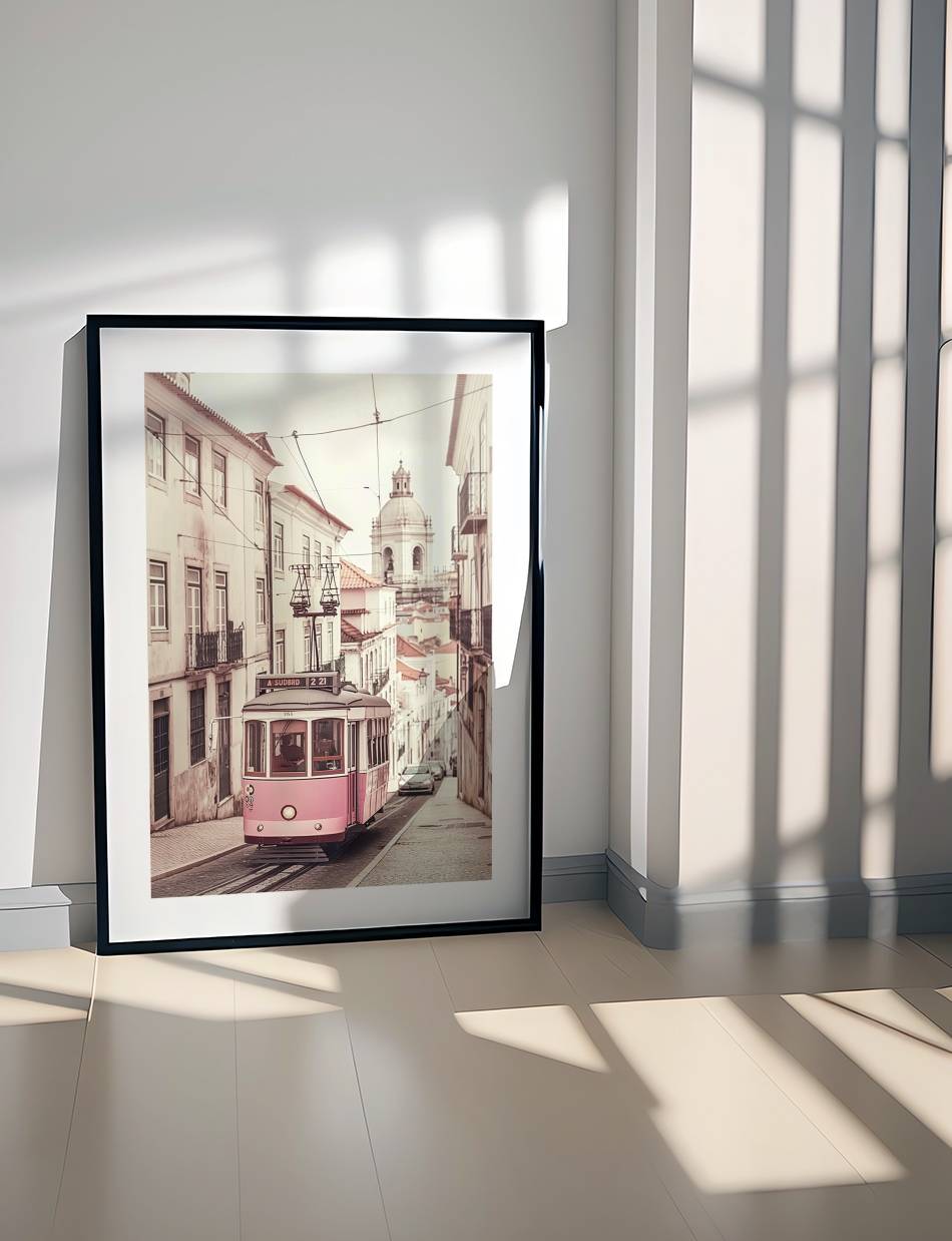 Denne fotoplakat indfanger en ikonisk lyserød og hvid sporvogn, der glider gennem de brostensbelagte gader, flankeret af charmerende gamle bygninger. Med en baggrund, der antyder en rig fortid og en himmel, der strækker sig mod fremtiden, er dette værk en hyldest til tradition og rejse. En ideel dekoration for enhver, der værdsætter historiens skønhed og transportens romantik.