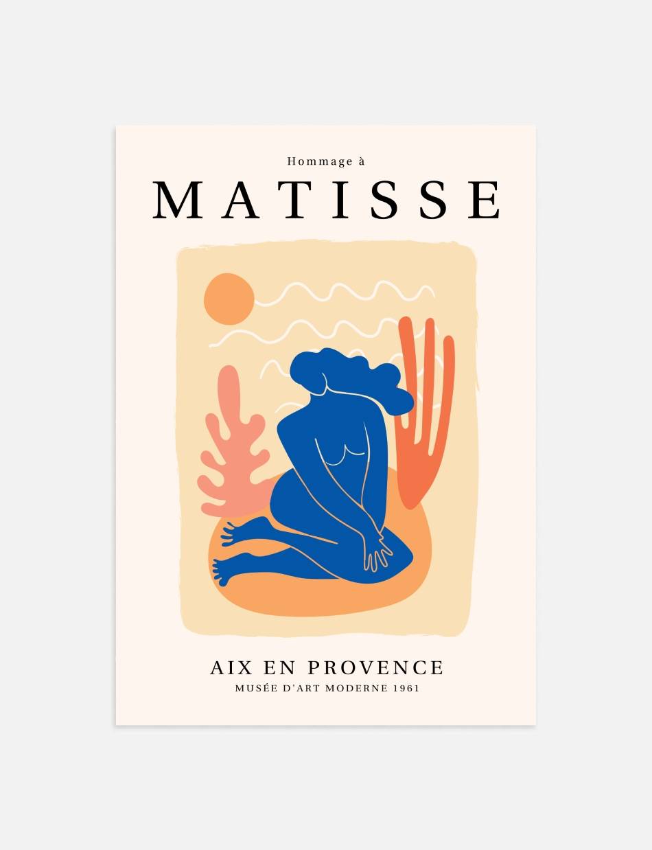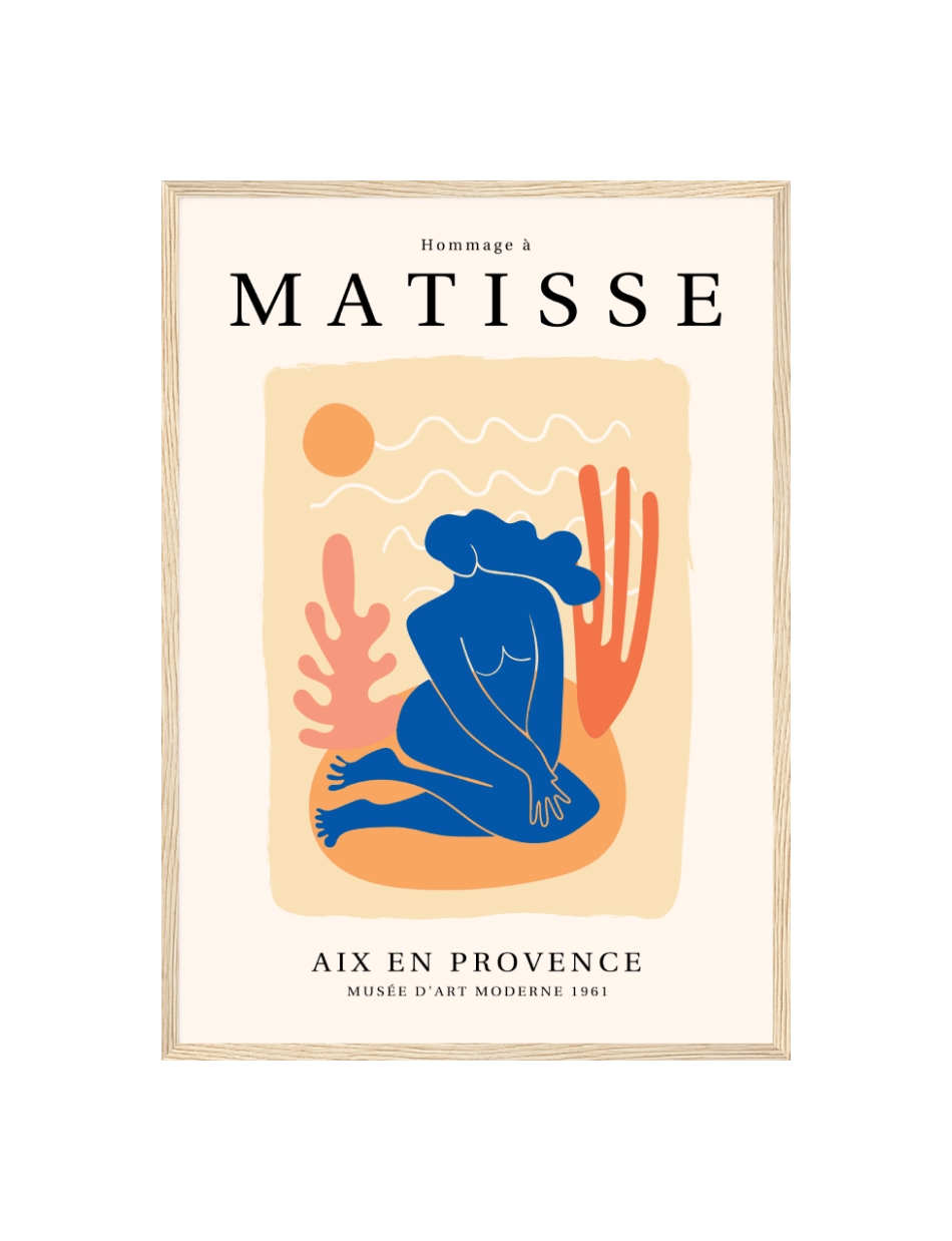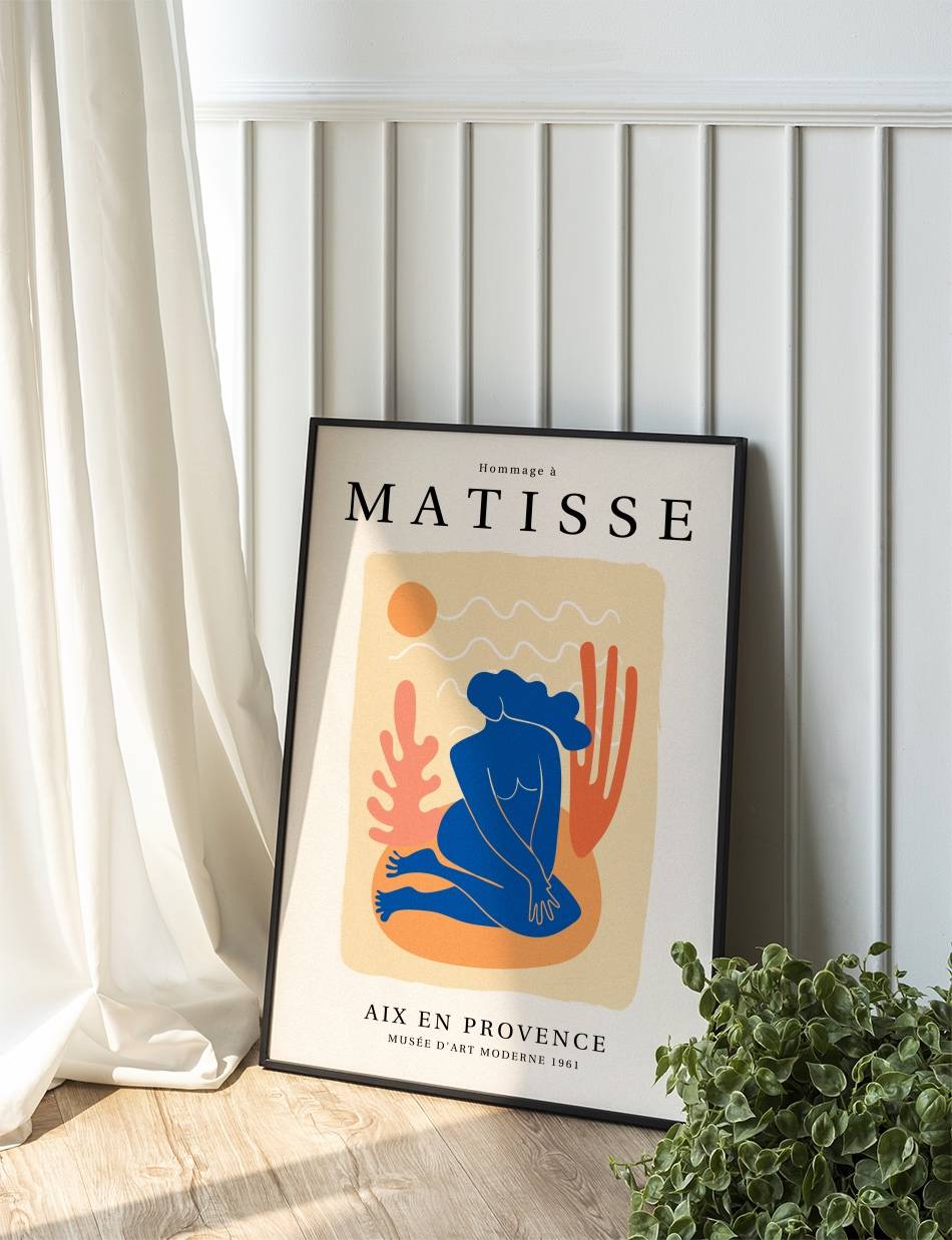 ‘Hommage à Matisse’ er en eksklusiv samling af plakater, skabt til at ære og fejre arven fra Henri Matisse, en af de mest banebrydende kunstnere i det 20. århundrede. Denne samling, som er udarbejdet af Prints Charmings eget design team, formidler Matisse’s enestående brug af farve og form, der revolutionerede den moderne kunst. Hver plakat i samlingen er inspireret af Matisse’s mest ikoniske værker.