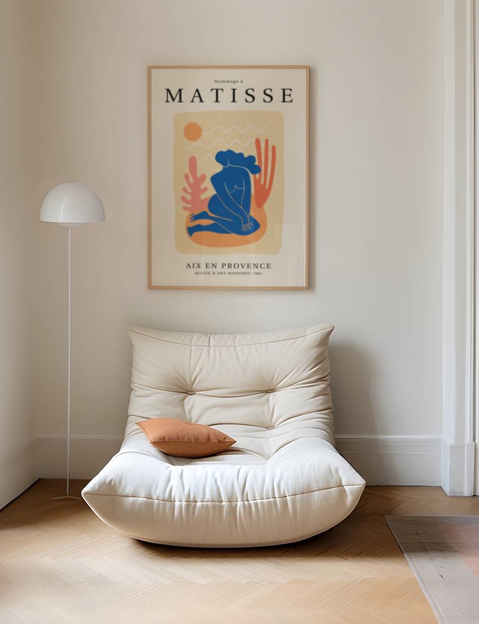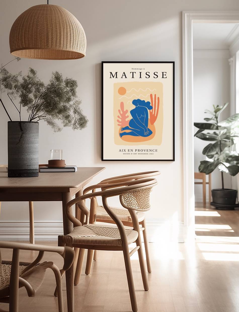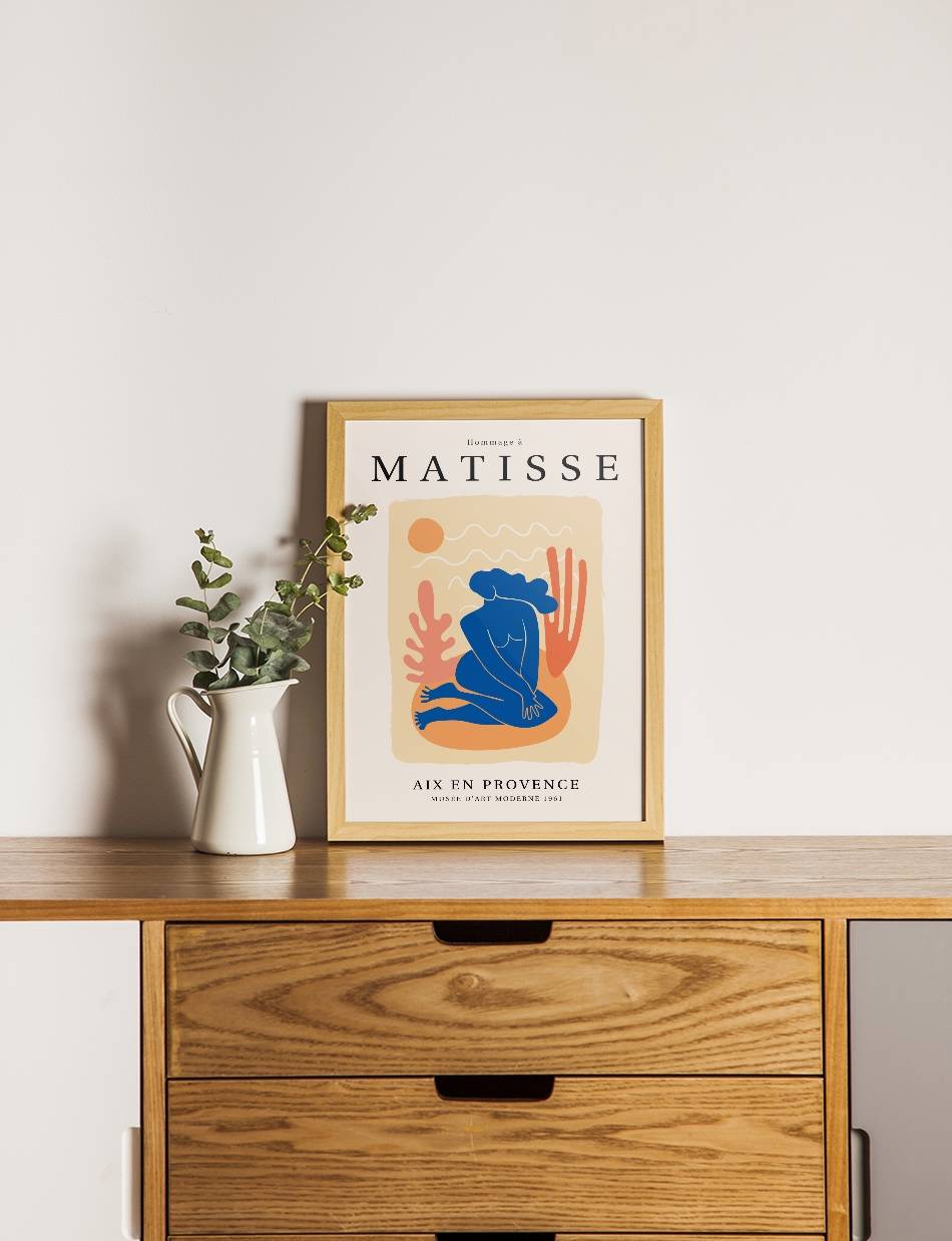 ‘Hommage à Matisse’ er en eksklusiv samling af plakater, skabt til at ære og fejre arven fra Henri Matisse, en af de mest banebrydende kunstnere i det 20. århundrede. Denne samling, som er udarbejdet af Prints Charmings eget design team, formidler Matisse’s enestående brug af farve og form, der revolutionerede den moderne kunst. Hver plakat i samlingen er inspireret af Matisse’s mest ikoniske værker.