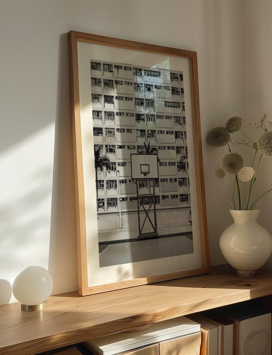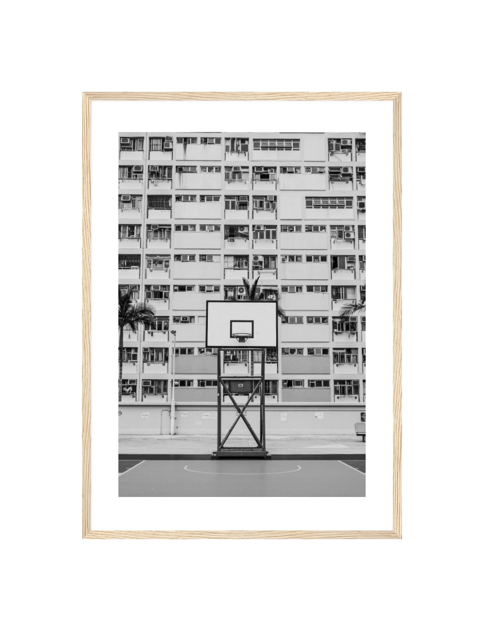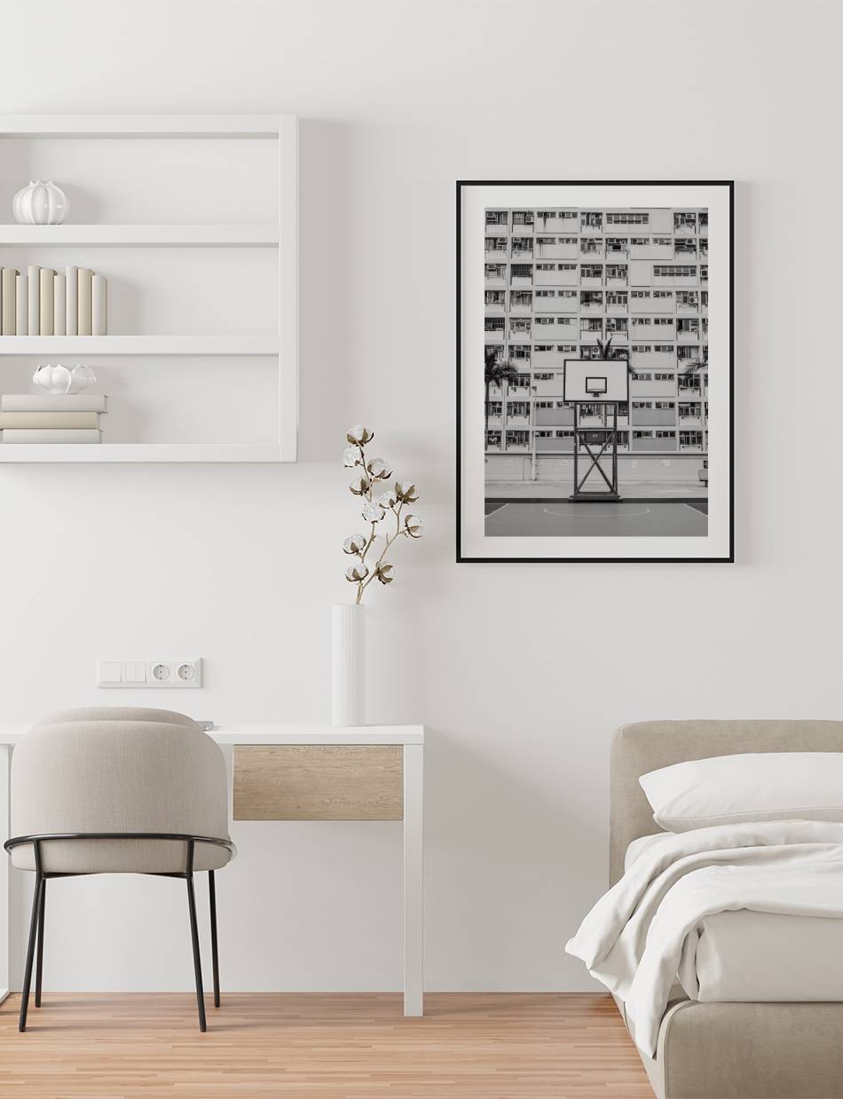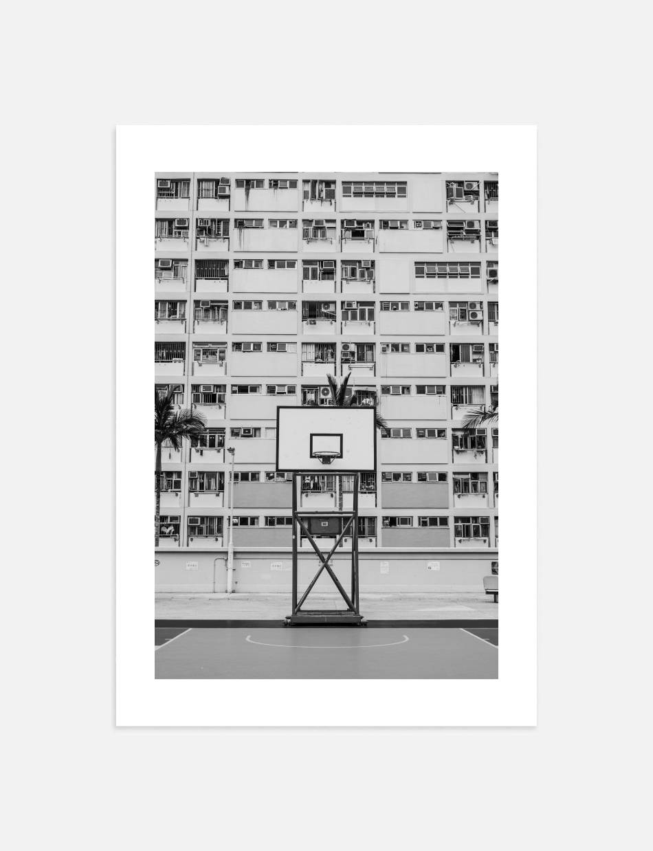 Mærk byens puls med denne dynamiske plakat af en basketballbane midt i det urbane landskab. Plakaten fanger sportens energi og byens levende atmosfære, perfekt for enhver sportsentusiast eller byelsker.
