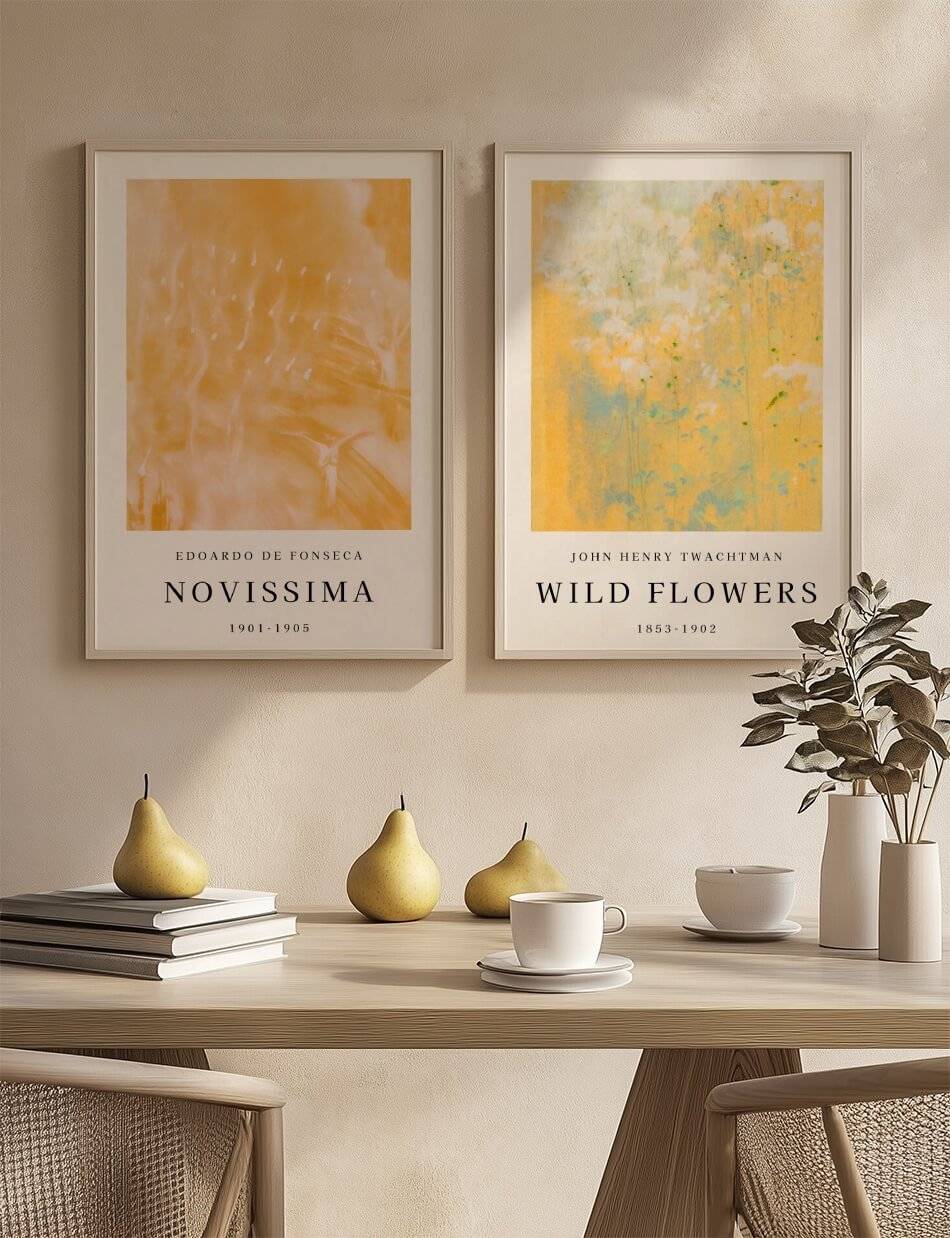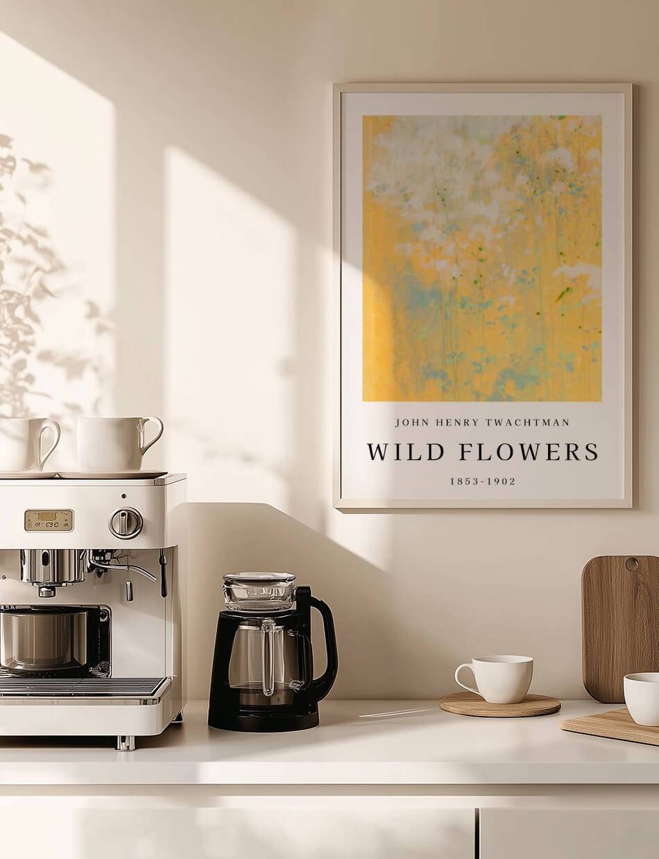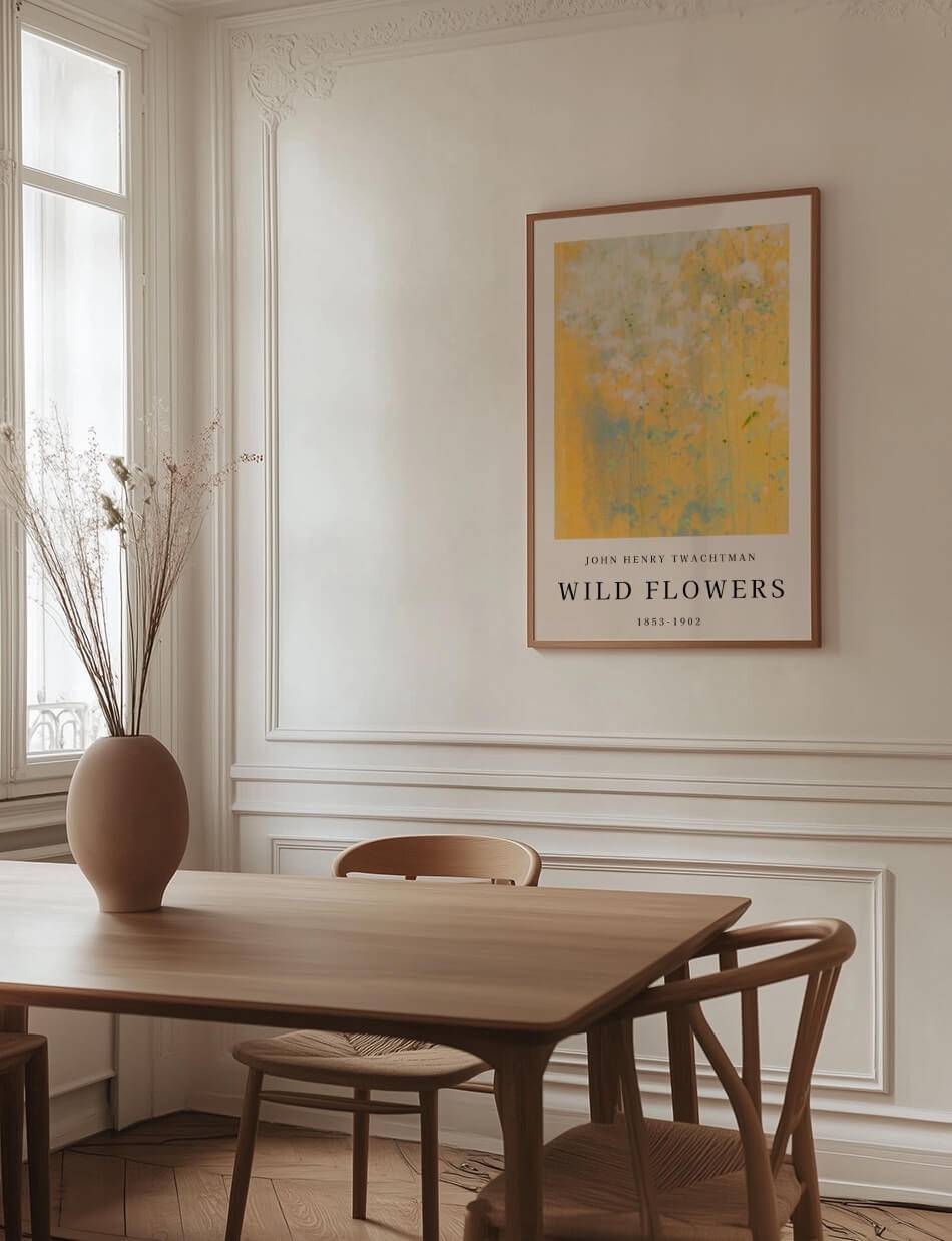 Wild Flowers af John Henry Twachtman er et mesterværk, der indfanger naturens skrøbelige skønhed med en næsten impressionistisk følsomhed. Det gule og grønne farvespil skaber en blid, drømmende atmosfære, hvor vilde blomster graciøst danser i vinden. De sarte penselstrøg og subtile detaljer bringer værket til live, og dets naturlige harmoni inviterer til fordybelse og ro.
