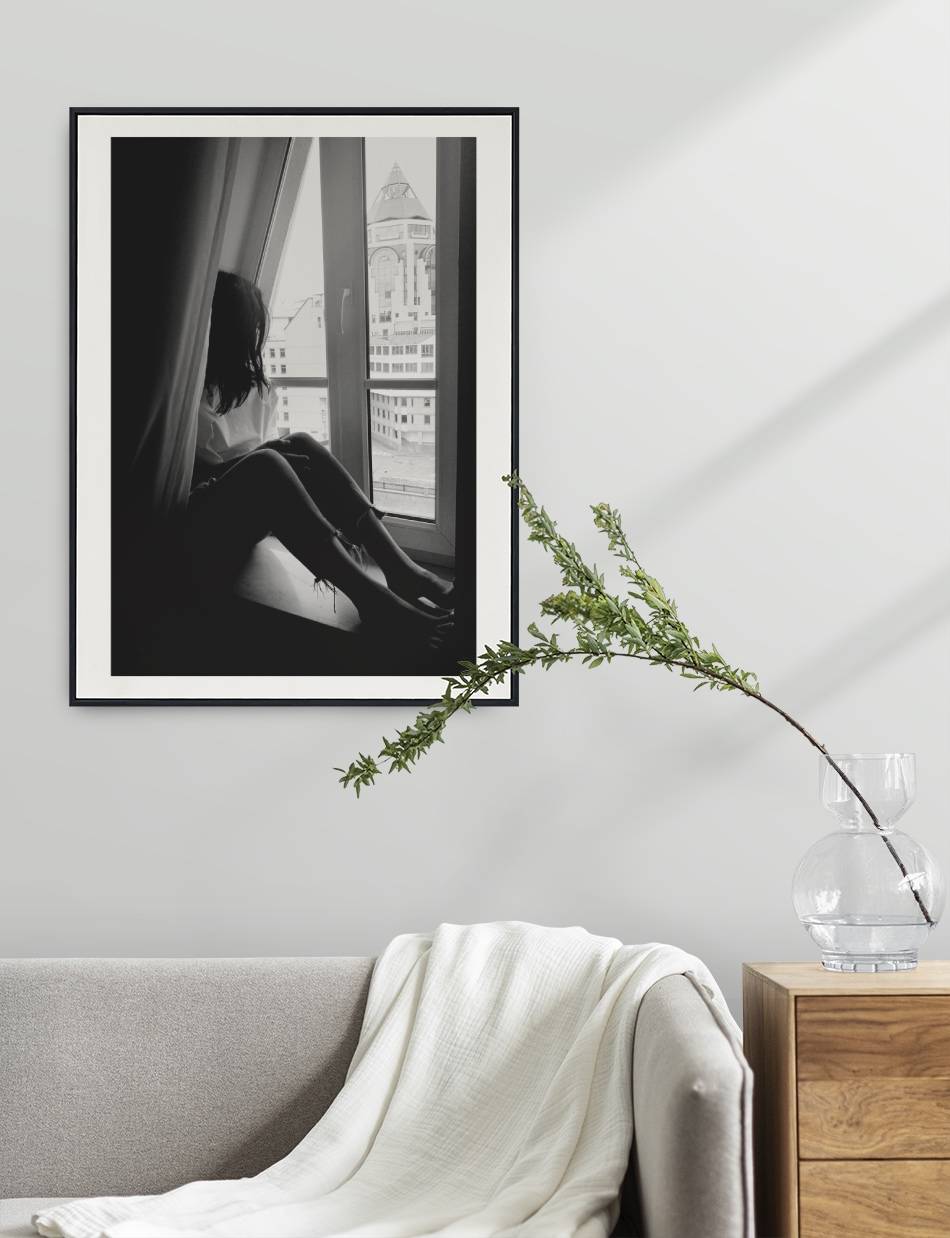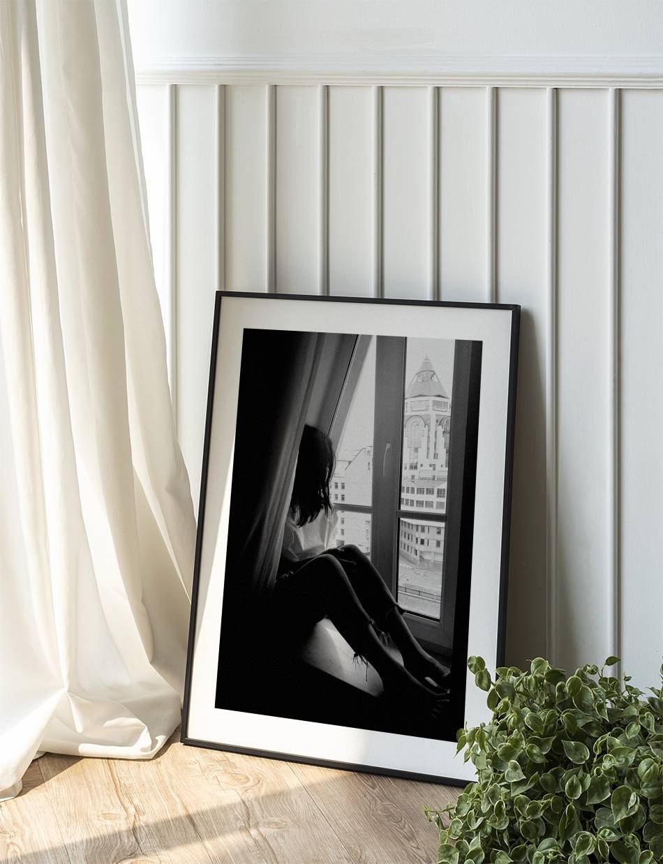 Oplev en verden af ro og skønhed med vores Woman in Window plakat. Denne fotoplakat fanger et øjeblik i stilhed, hvor lyset og skyggerne leger på en kvinde, der betragter verden udenfor. Perfekt til at skabe en fredfyldt atmosfære i ethvert rum.
